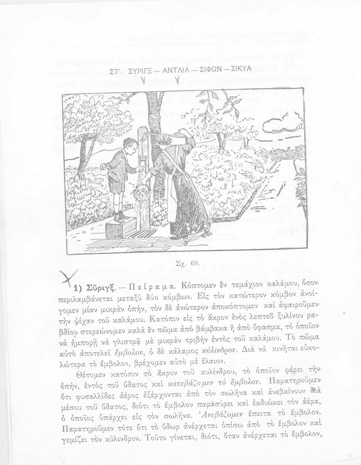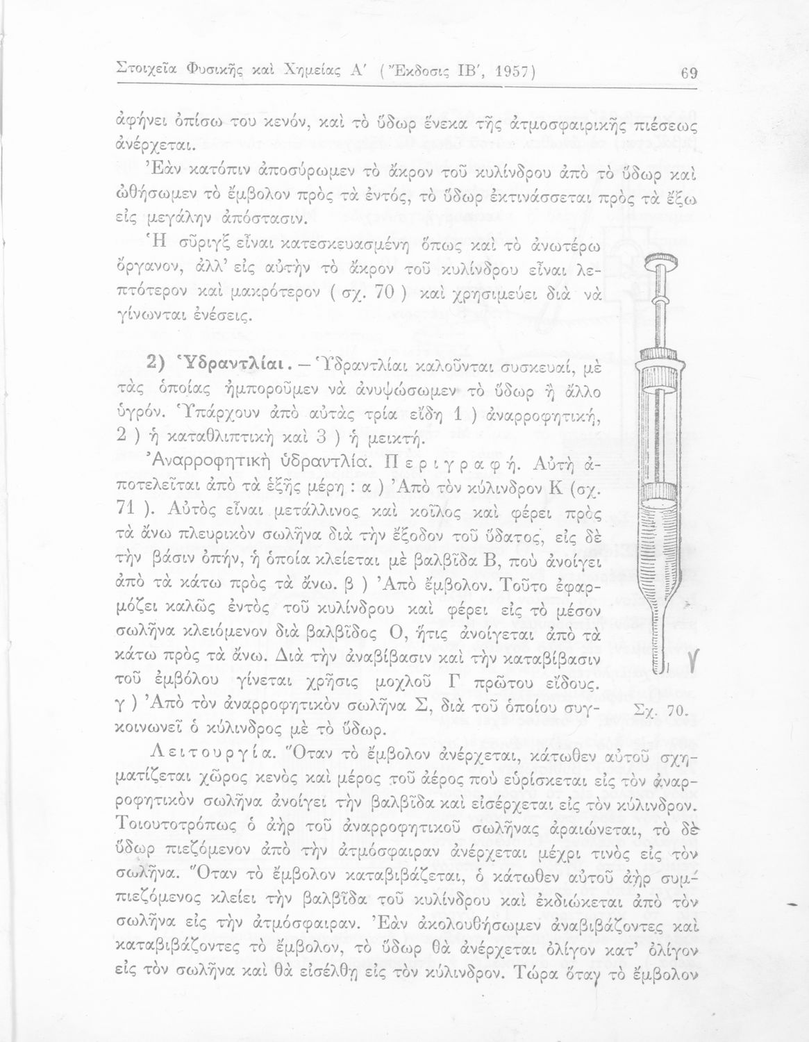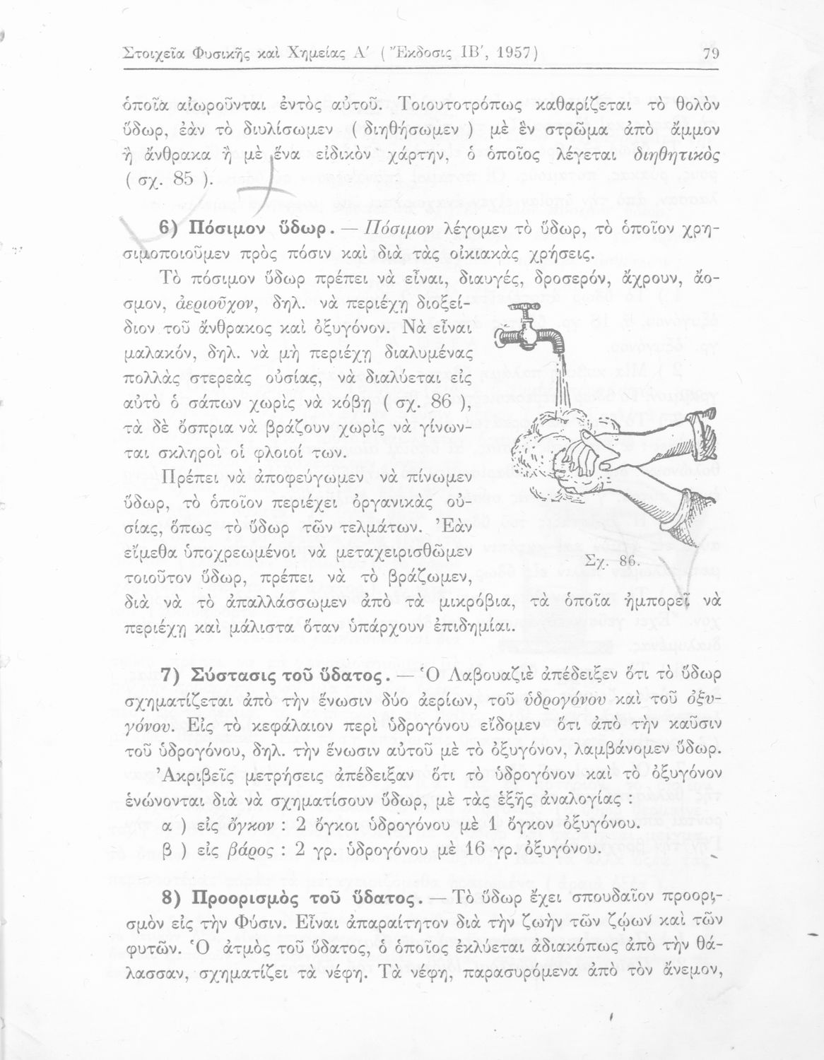 Σχολικό εγχειρίδιο για το μάθημα της Φυσικής στο Γυμνάσιο . Παρέχει βασικές γνώσεις της φυσικής επιστήμης. Αναλύει τα φαινόμενα της αδράνειας, της βαρύτητας, της υδροστατικής πίεσης κ.α. Όσον αφορά τη χημεία αναφέρεται στις ιδιότητες των μετάλλων, τα οξέα, τις βάσεις και τα άλατα. Αναφέρεται στην πρακτική εφαρμογή της φυσικής και της χημείας στην καθημερινότητά. Επίσης, περιλαμβάνει πολλά από τα όργανα, που χρησιμοποιούνται στη φυσική. Περιέχει εικόνες και σχεδιαγράμματα τα οποία βοηθούν τη διδασκαλία.