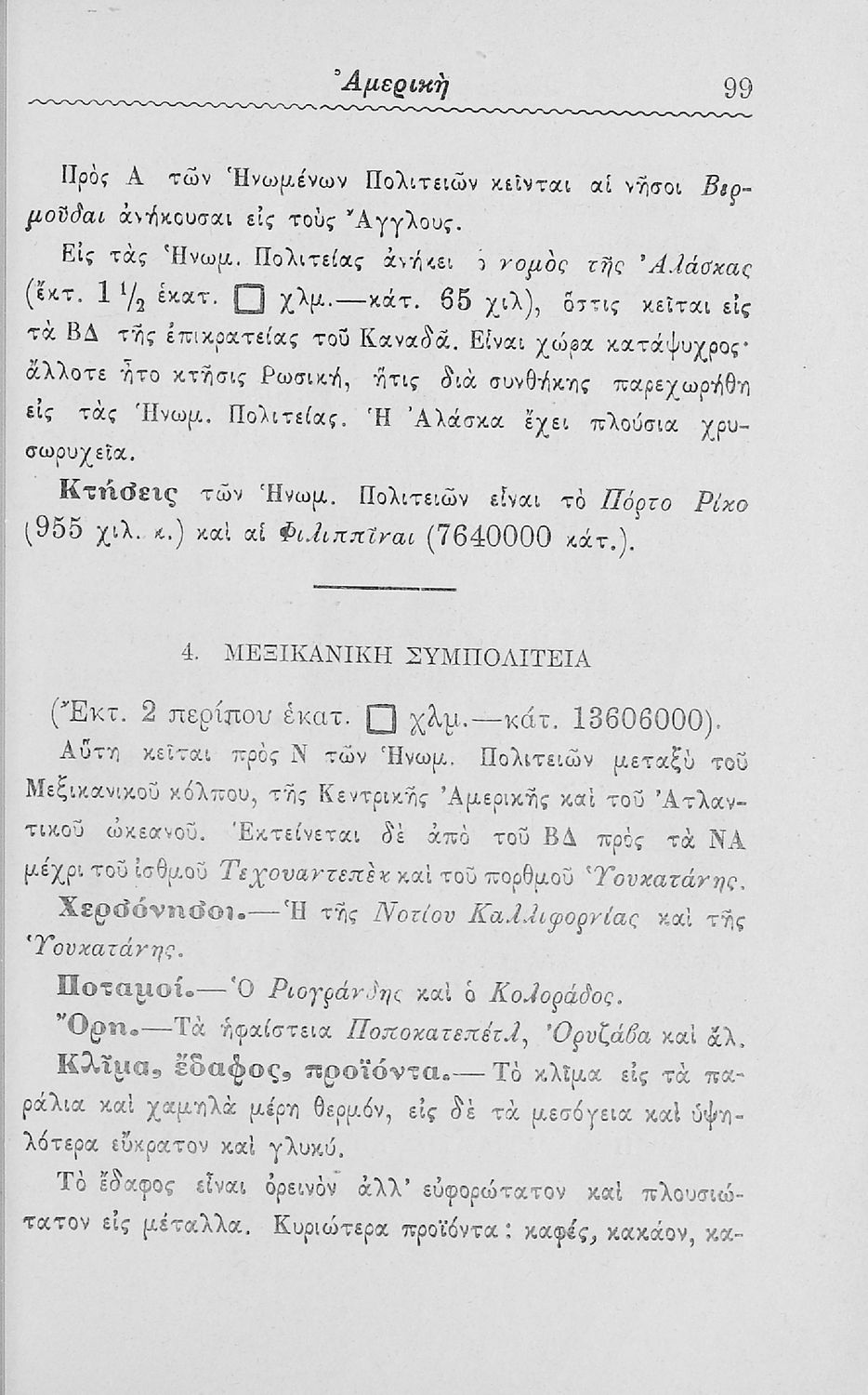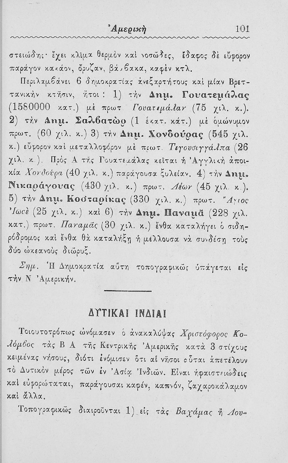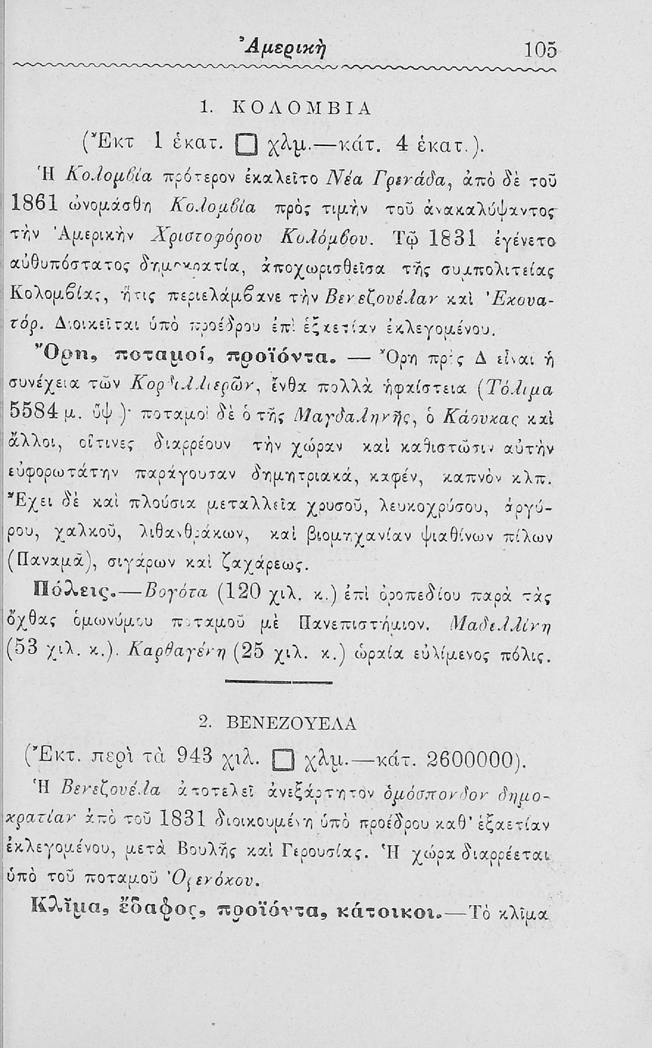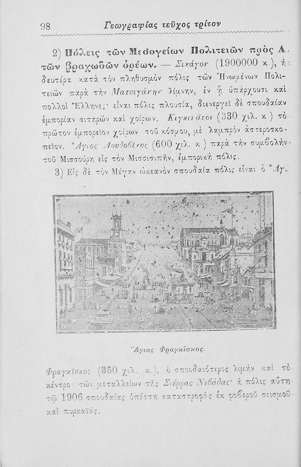 Μαθητικό βοήθημα Γεωγραφίας για τις Ανώτερες τάξεις των Αστικών Σχολείων που περιλαμβάνει στοιχεία φυσικής και μαθηματικής γεωγραφίας και εξετάζει κράτη από τις πέντε ηπείρους από γεωφυσική, πολιτική και οικονομική άποψη.