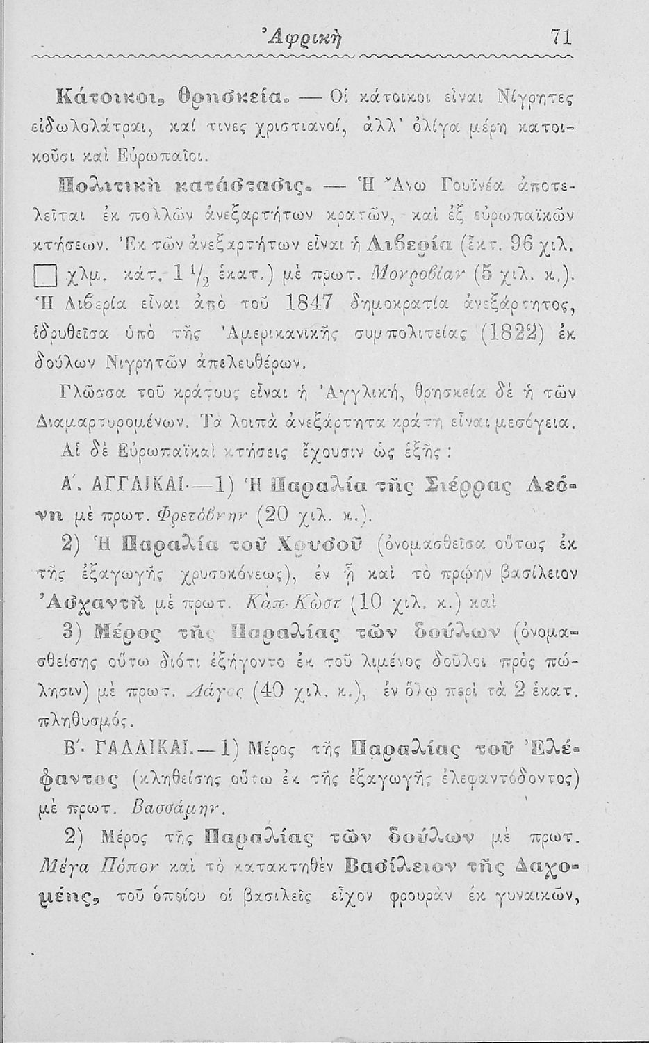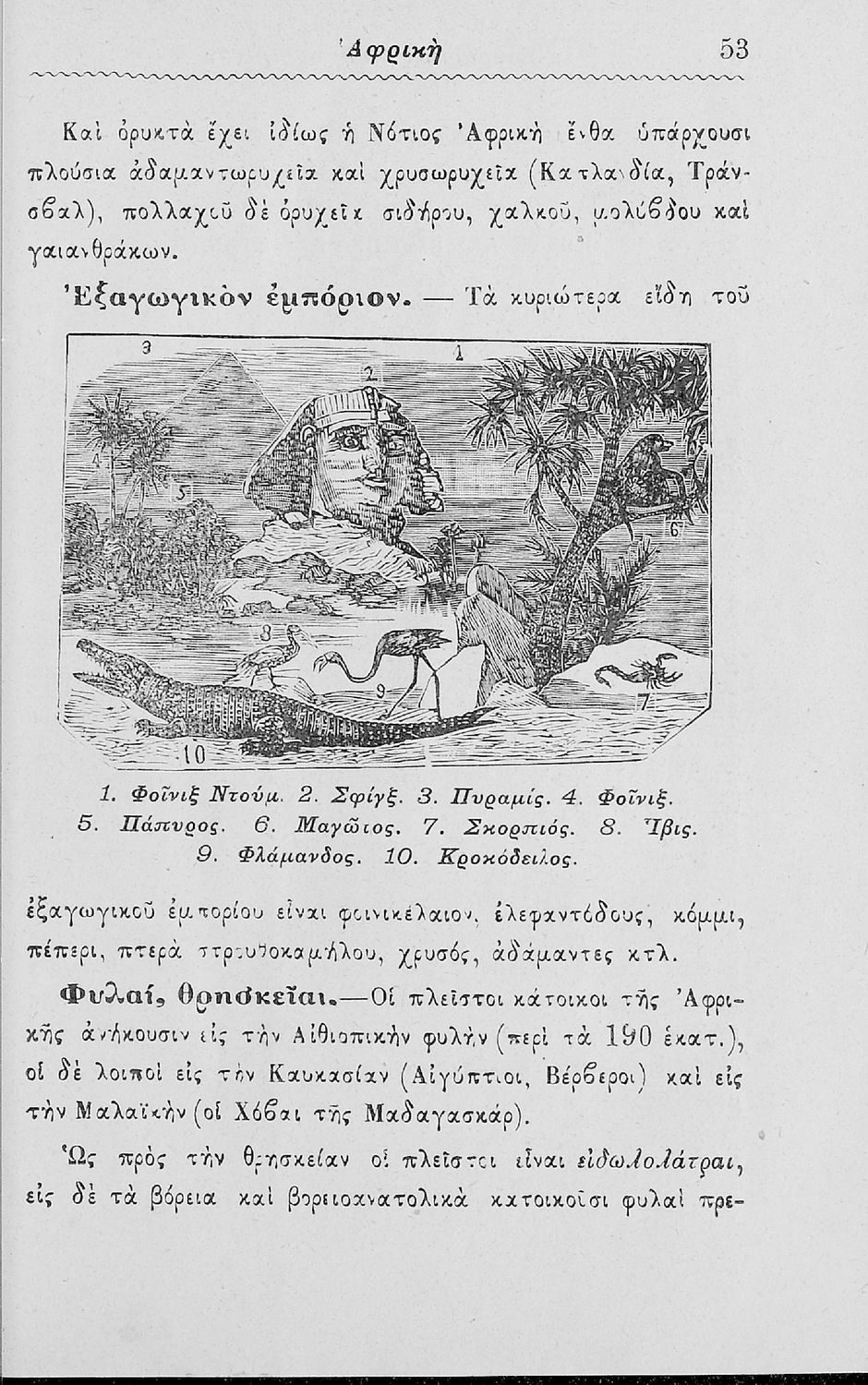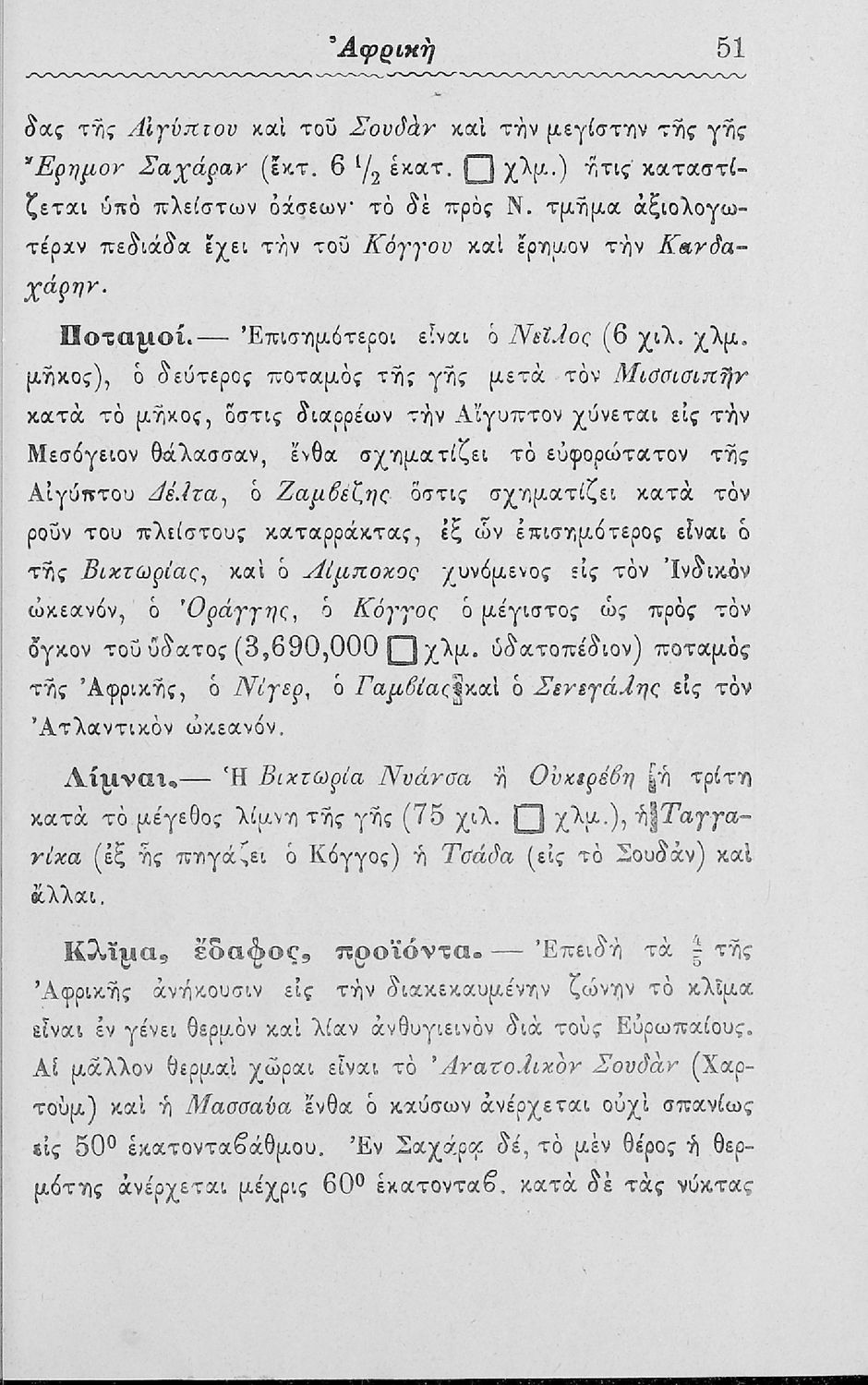 Μαθητικό βοήθημα Γεωγραφίας για τις Ανώτερες τάξεις των Αστικών Σχολείων που περιλαμβάνει στοιχεία φυσικής και μαθηματικής γεωγραφίας και εξετάζει κράτη από τις πέντε ηπείρους από γεωφυσική, πολιτική και οικονομική άποψη.