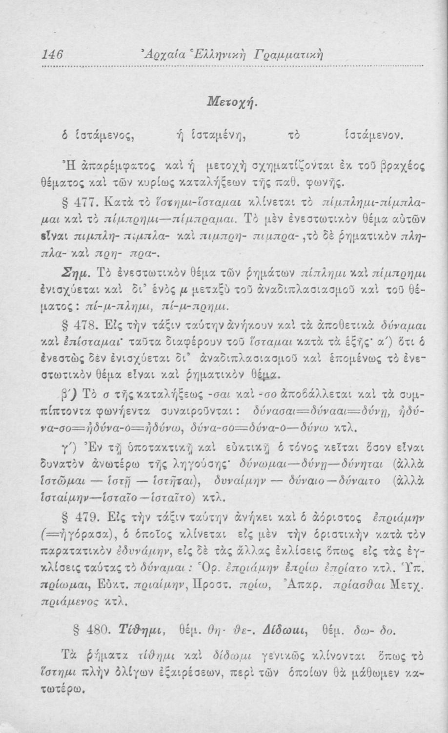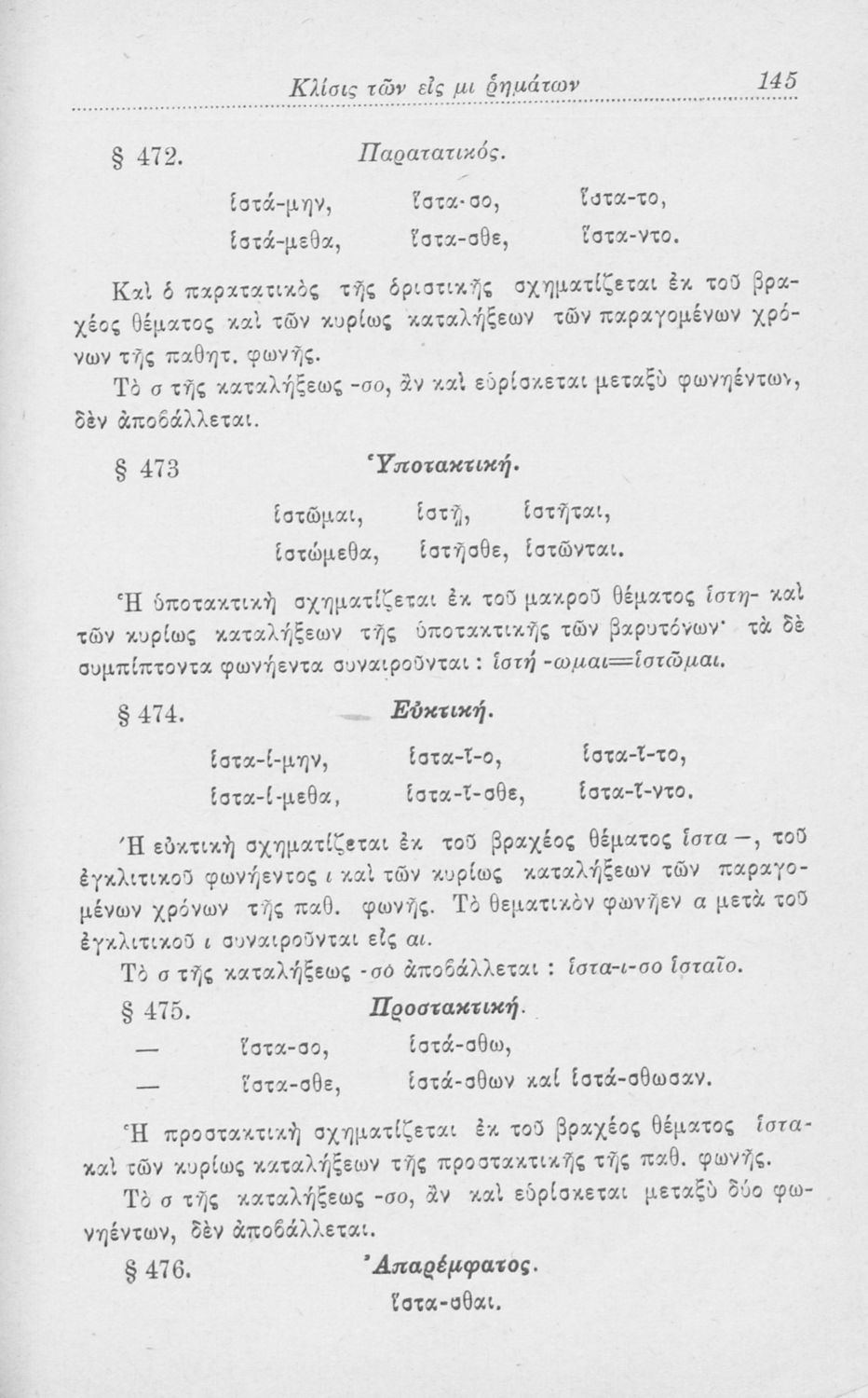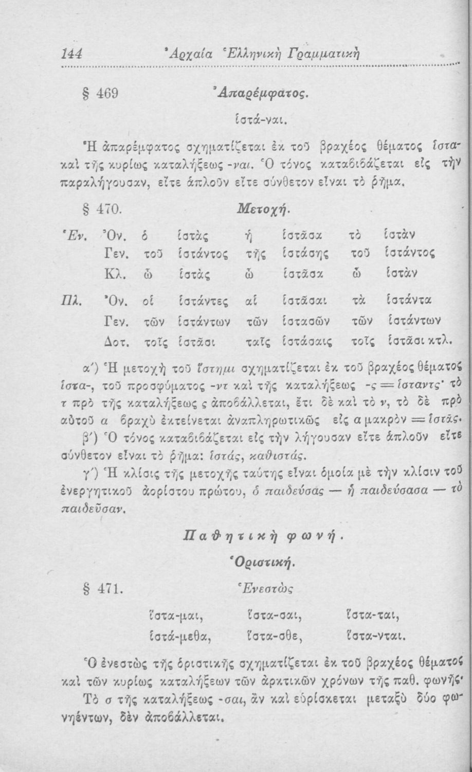 Σχολικό εγχειρίδιο Αρχαίων Ελληνικών για τα Ελληνικά Σχολεία και Παρθεναγωγεία που περιλαμβάνει κανόνες της γραμματικής της αρχαίας ελληνικής και είναι χωρισμένη στο φθογγολογικό και στο τυπολογικό μέρος.
