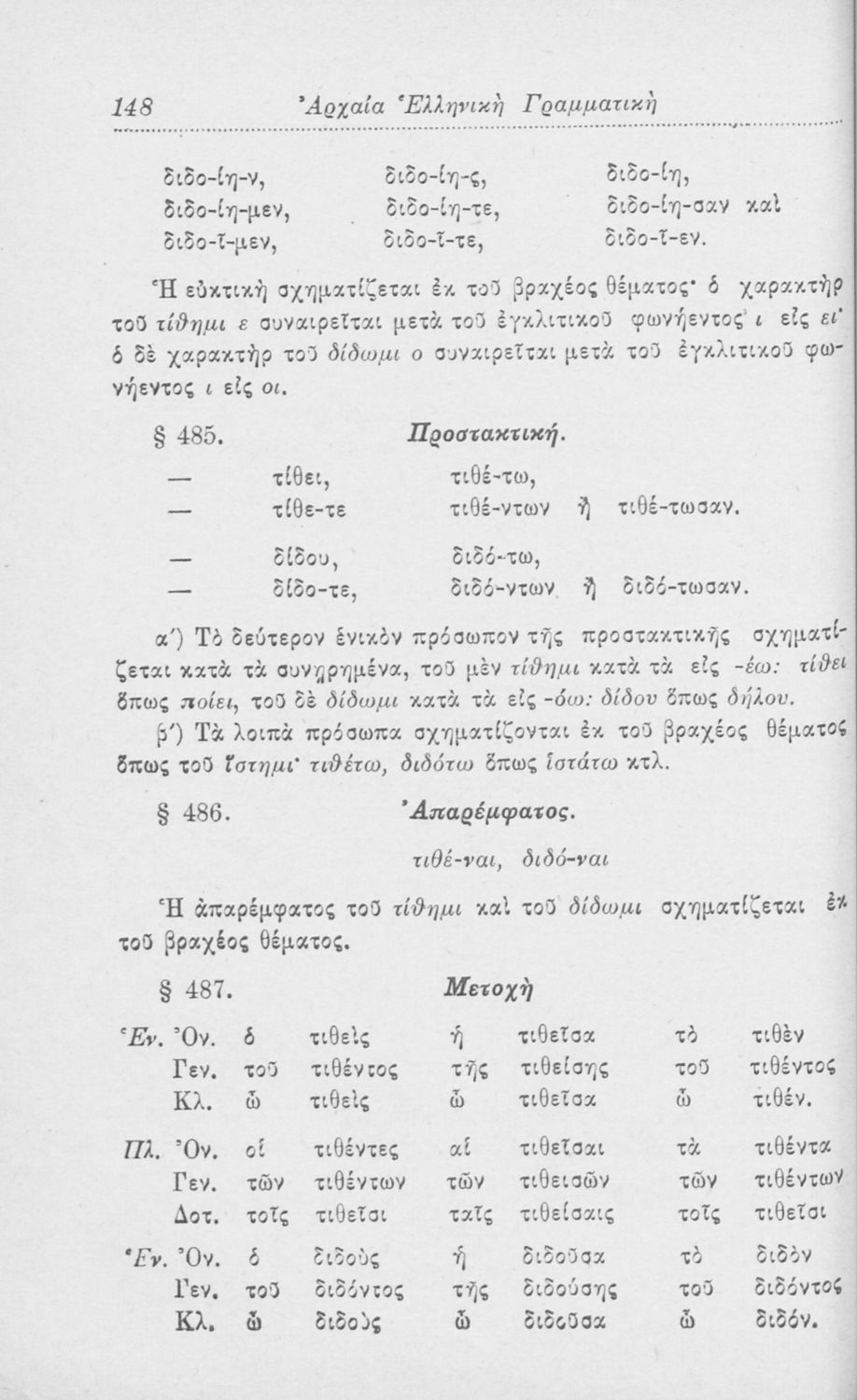 Σχολικό εγχειρίδιο Αρχαίων Ελληνικών για τα Ελληνικά Σχολεία που αποτελεί γραμματική της αρχαίας ελληνικής και είναι χωρισμένο στο φθογγολογικό και το τυπολογικό μέρος. Περιέχει και σύντομα κείμενα που χρησιμοποιούνται για τη διδασκαλία των γραμματικών φαινομένων και ασκήσεις.