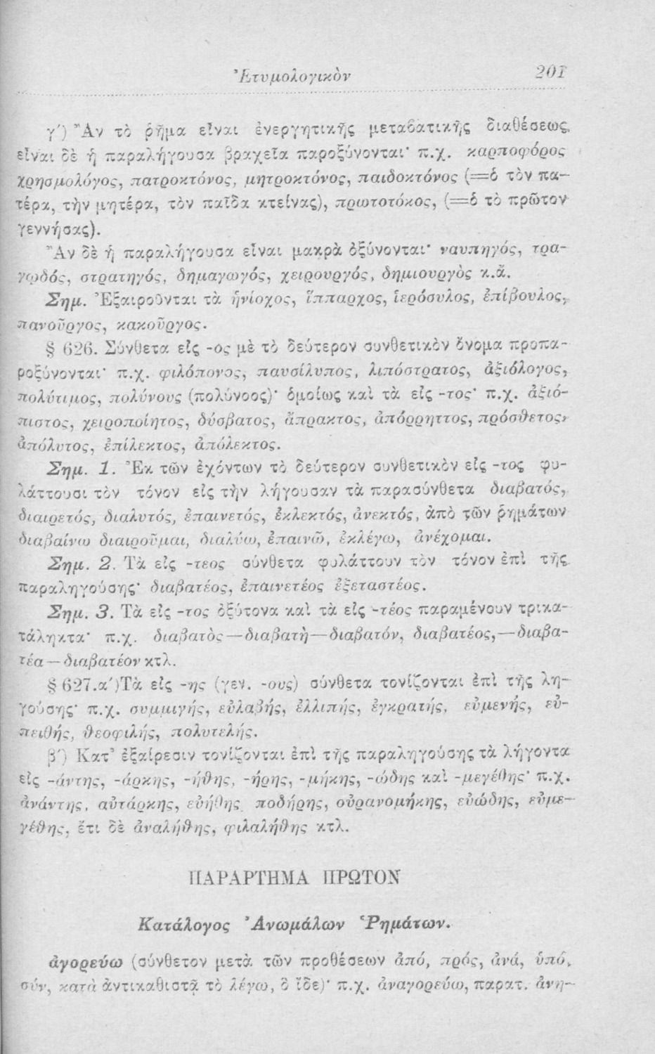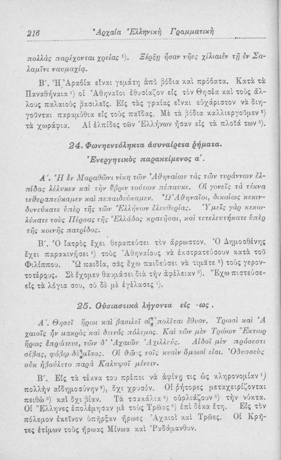 Σχολικό εγχειρίδιο Αρχαίων Ελληνικών για τα Ελληνικά Σχολεία και Παρθεναγωγεία που περιλαμβάνει κανόνες της γραμματικής της αρχαίας ελληνικής και είναι χωρισμένη στο φθογγολογικό και στο τυπολογικό μέρος.