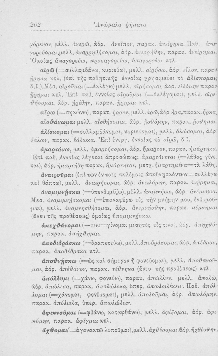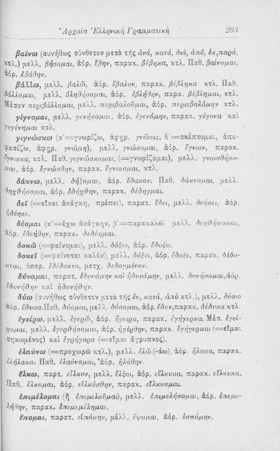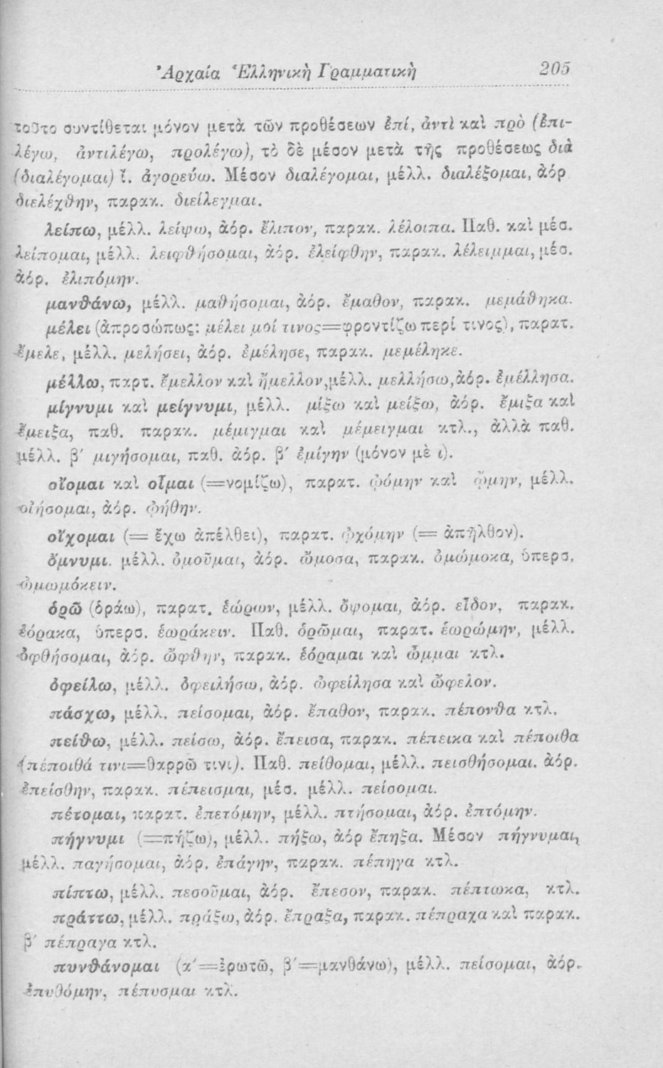 Μαθητικό βοήθημα Αρχαίων Ελληνικών για τα Ελληνικά Σχολεία, Παρθεναγωγεία και Γυμνάσια που περιλαμβάνει γραμματική της αρχαίας ελληνικής και κατάλογο ανωμάλων ρημάτων.