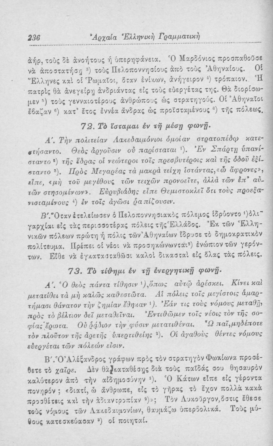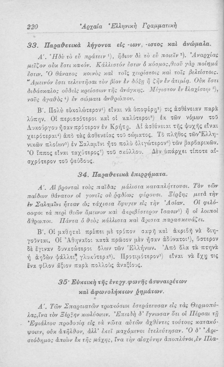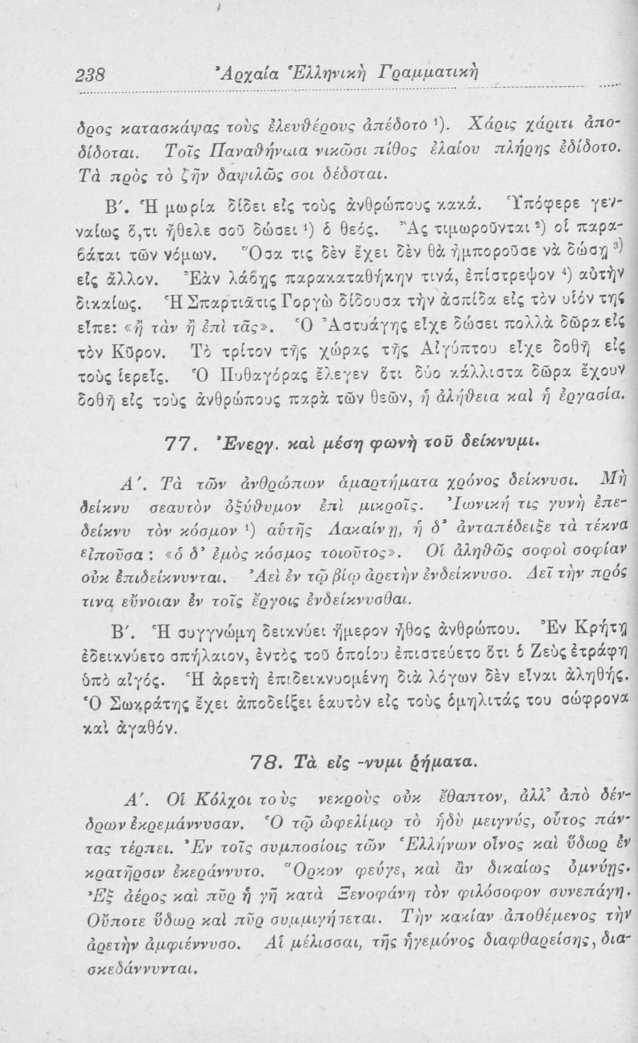 Σχολικό εγχειρίδιο Αρχαίων Ελληνικών για τα Ελληνικά Σχολεία και Παρθεναγωγεία που περιλαμβάνει κανόνες της γραμματικής της αρχαίας ελληνικής και είναι χωρισμένη στο φθογγολογικό και στο τυπολογικό μέρος.