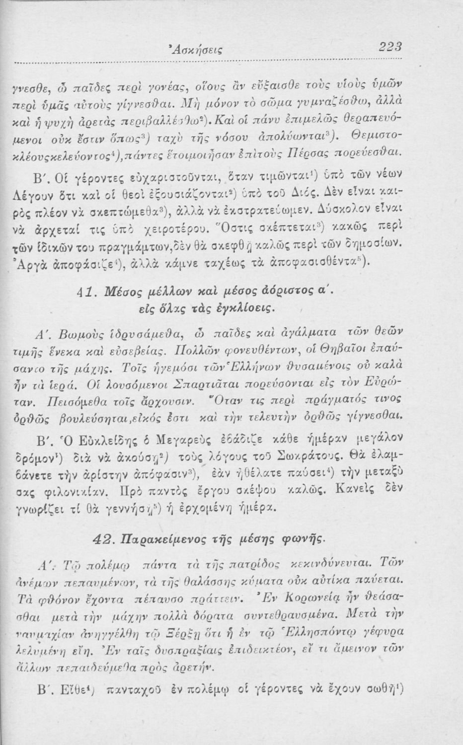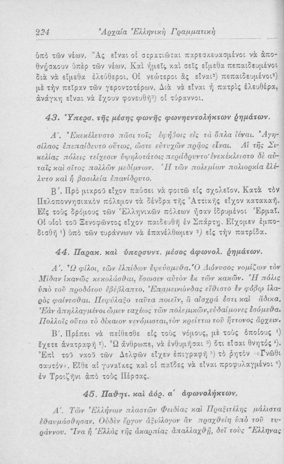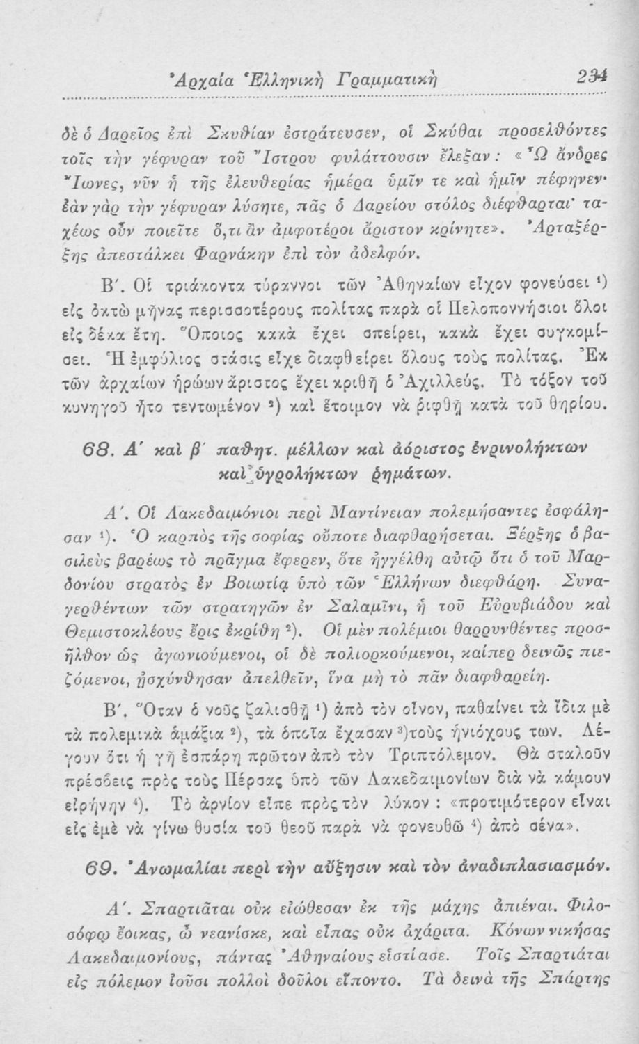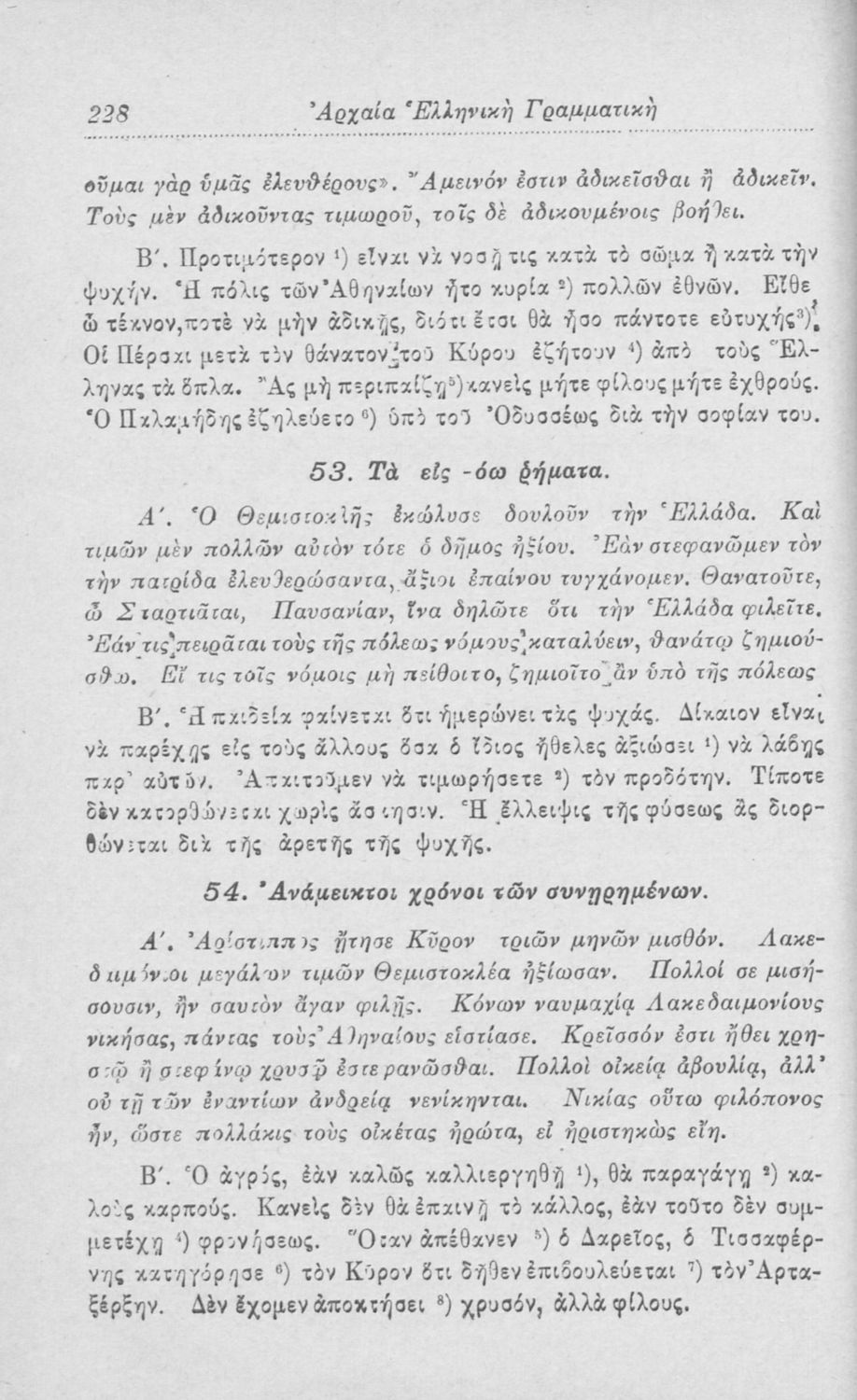 Σχολικό εγχειρίδιο Αρχαίων Ελληνικών για τα Ελληνικά Σχολεία που αποτελεί γραμματική της αρχαίας ελληνικής και είναι χωρισμένο στο φθογγολογικό και το τυπολογικό μέρος. Περιέχει και σύντομα κείμενα που χρησιμοποιούνται για τη διδασκαλία των γραμματικών φαινομένων και ασκήσεις.