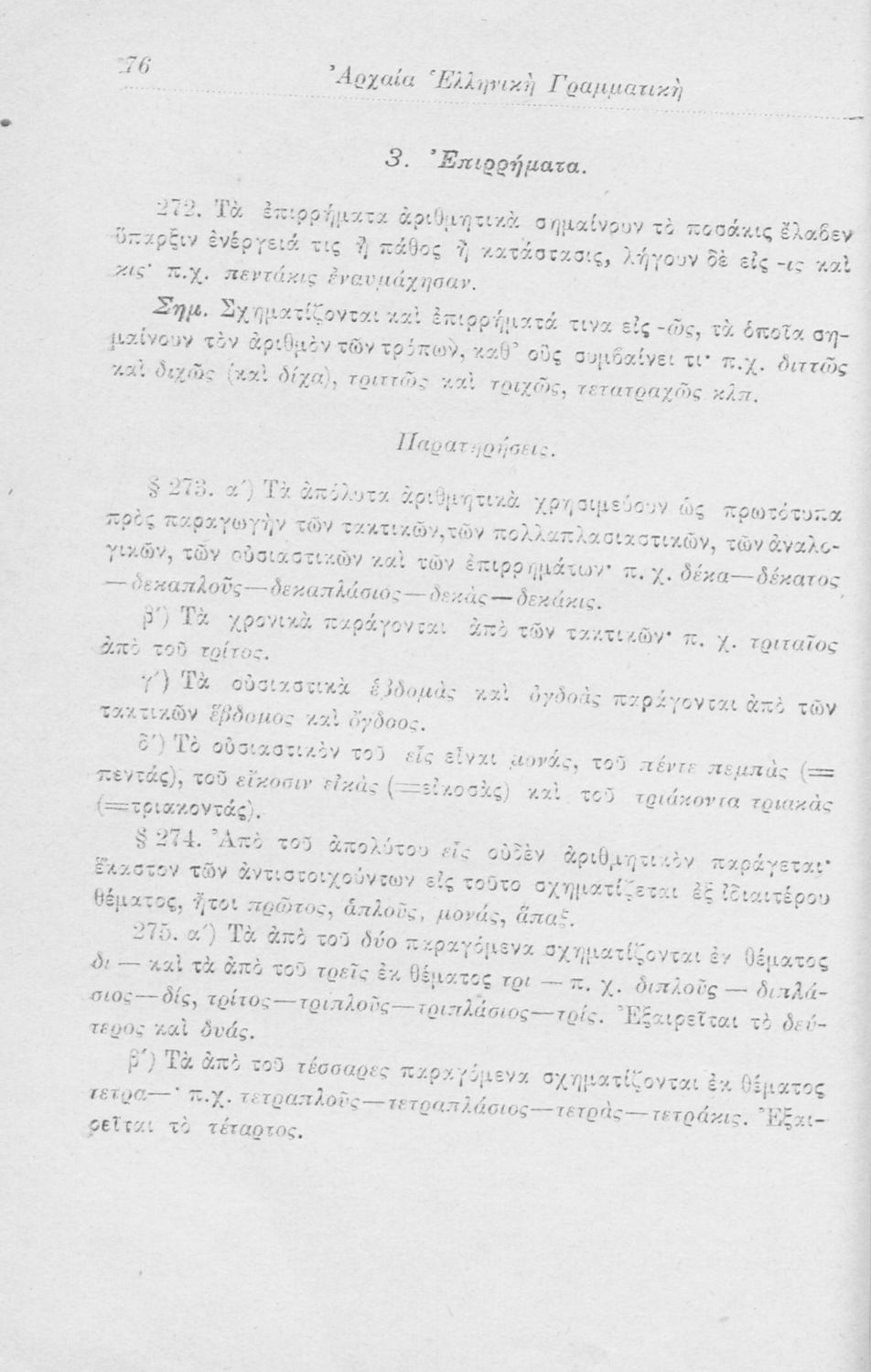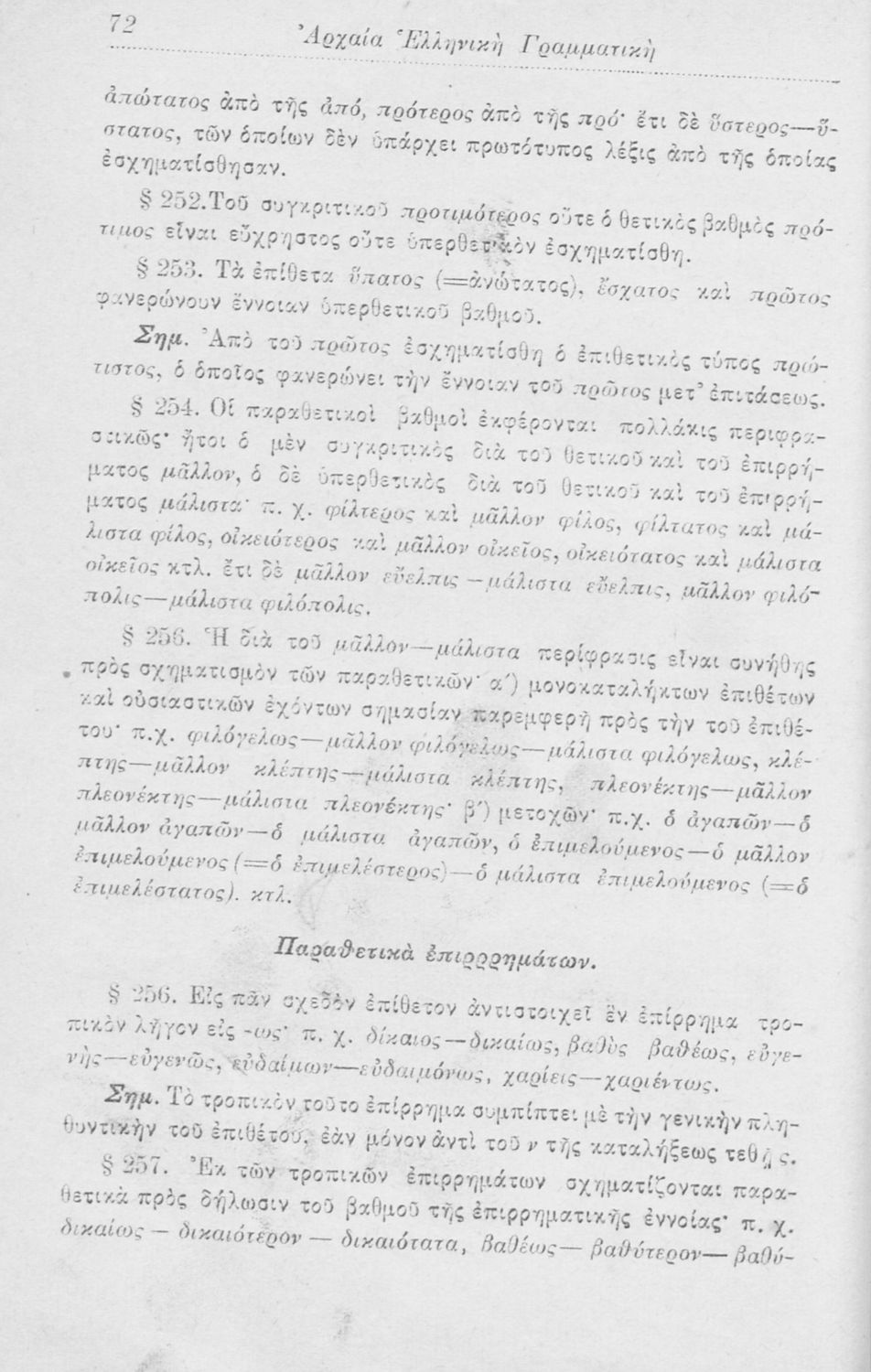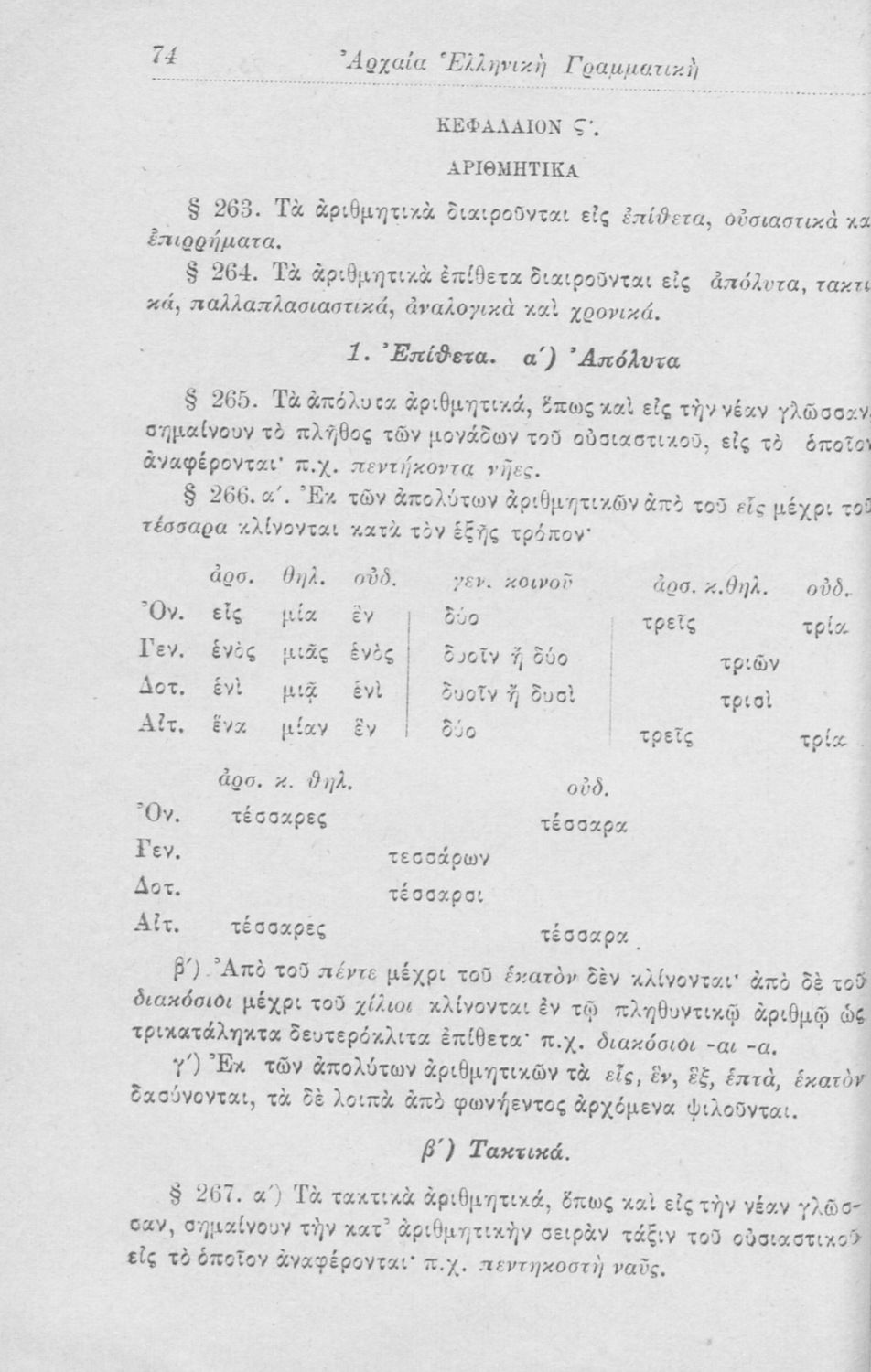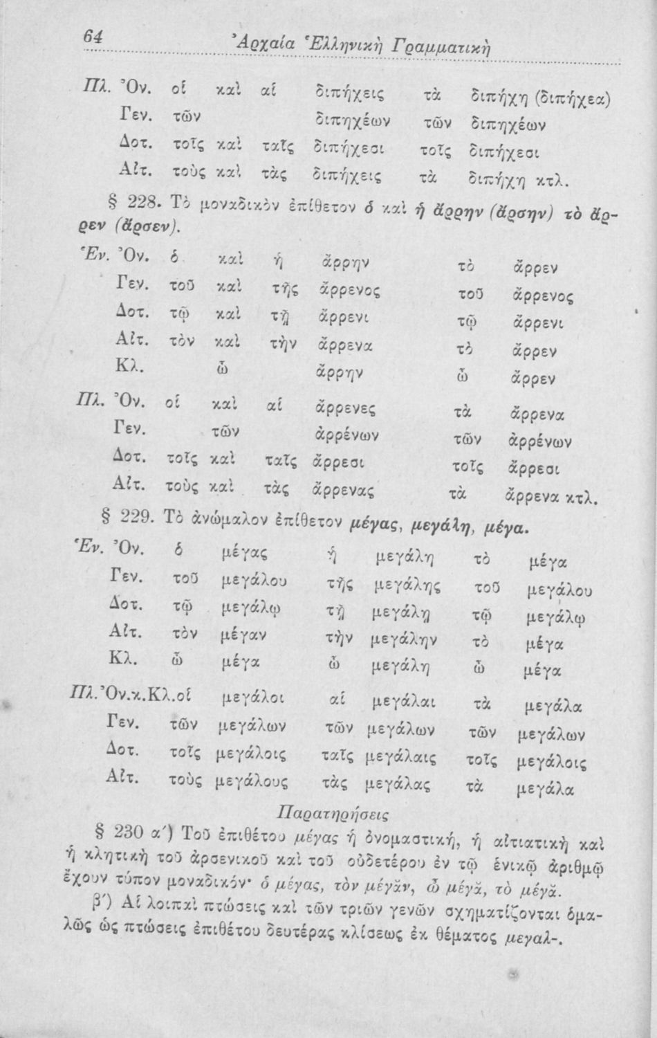 Σχολικό εγχειρίδιο Αρχαίων Ελληνικών για τα Ελληνικά Σχολεία, Παρθεναγωγεία και Γυμνάσια που περιέχει τους κανόνες γραμματικής και είναι χωρισμένο σε φθογγολογικό, τυπολογικό και ετυμολογικό μέρος.
