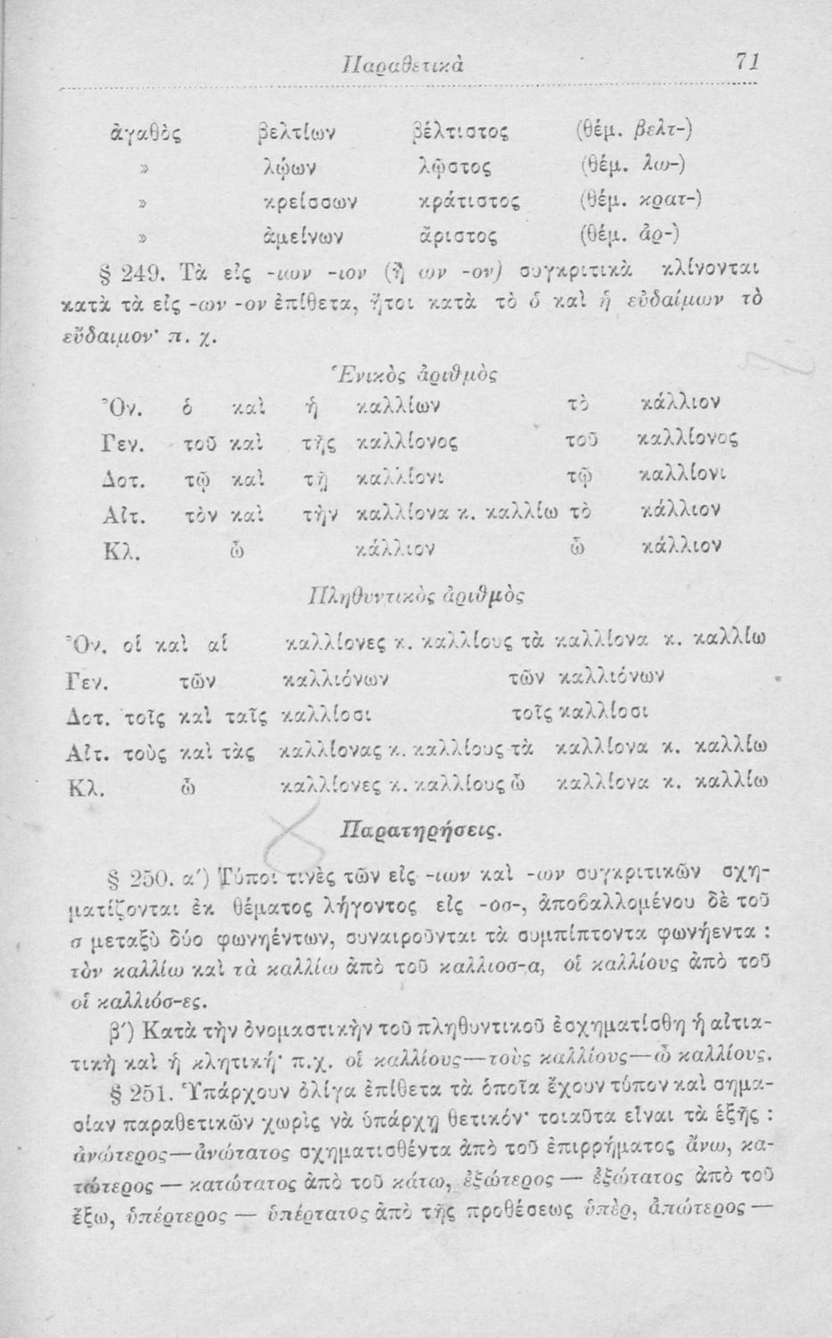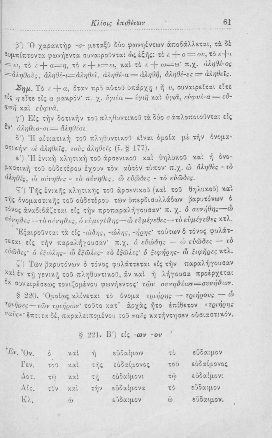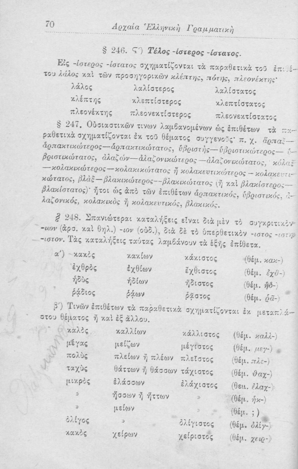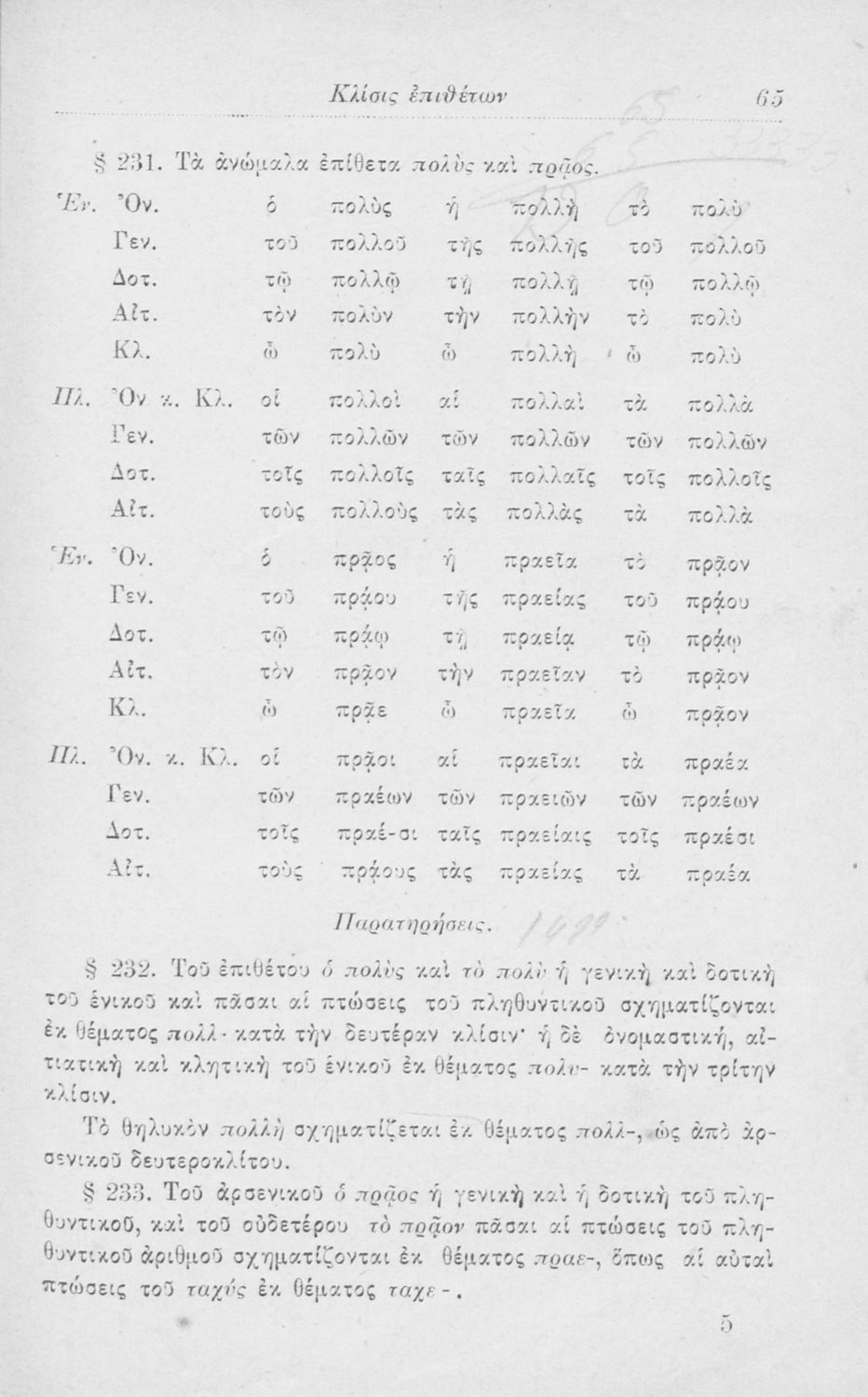 Σχολικό εγχειρίδιο Αρχαίων Ελληνικών για τα Ελληνικά Σχολεία, Παρθεναγωγεία και Γυμνάσια που περιέχει τους κανόνες γραμματικής και είναι χωρισμένο σε φθογγολογικό, τυπολογικό και ετυμολογικό μέρος.