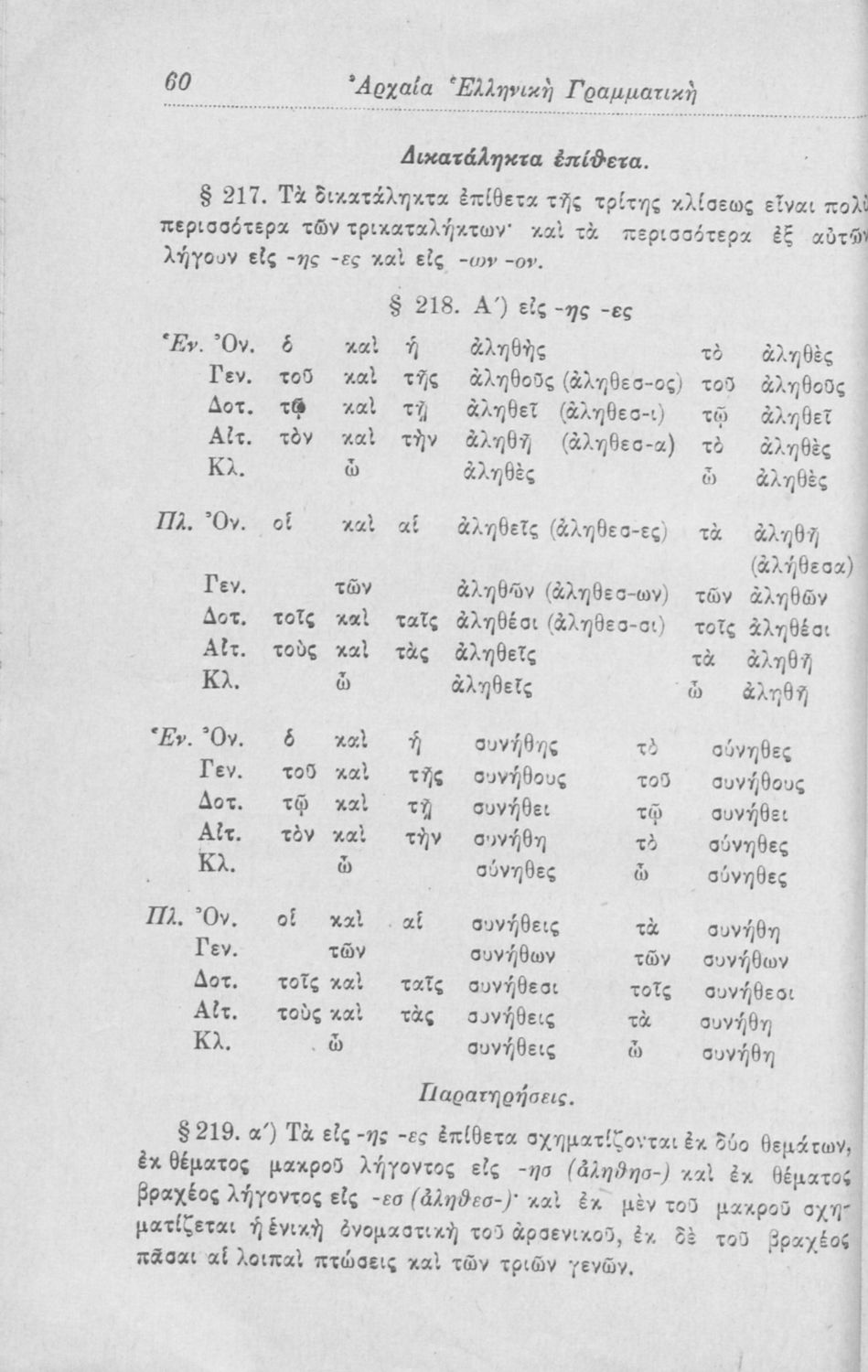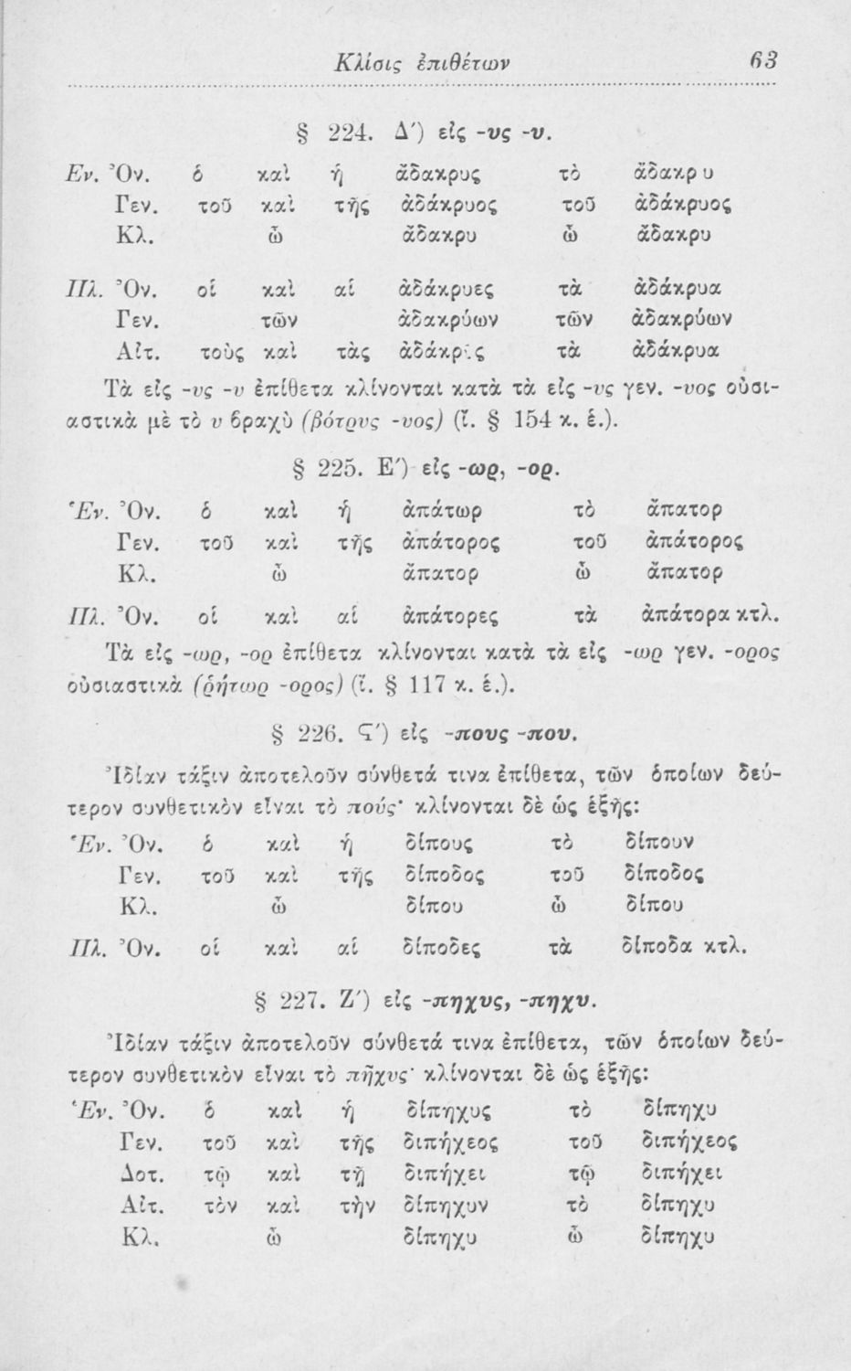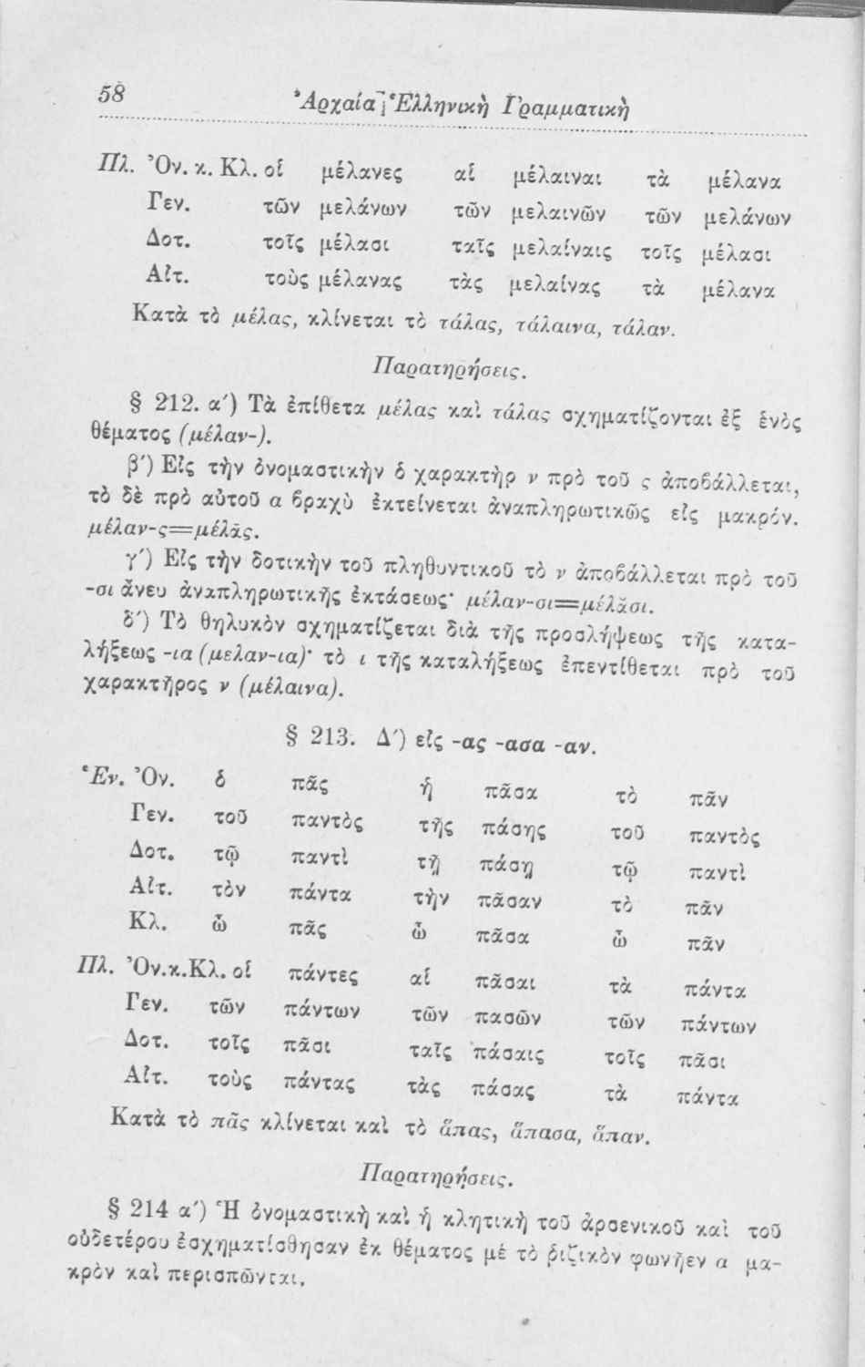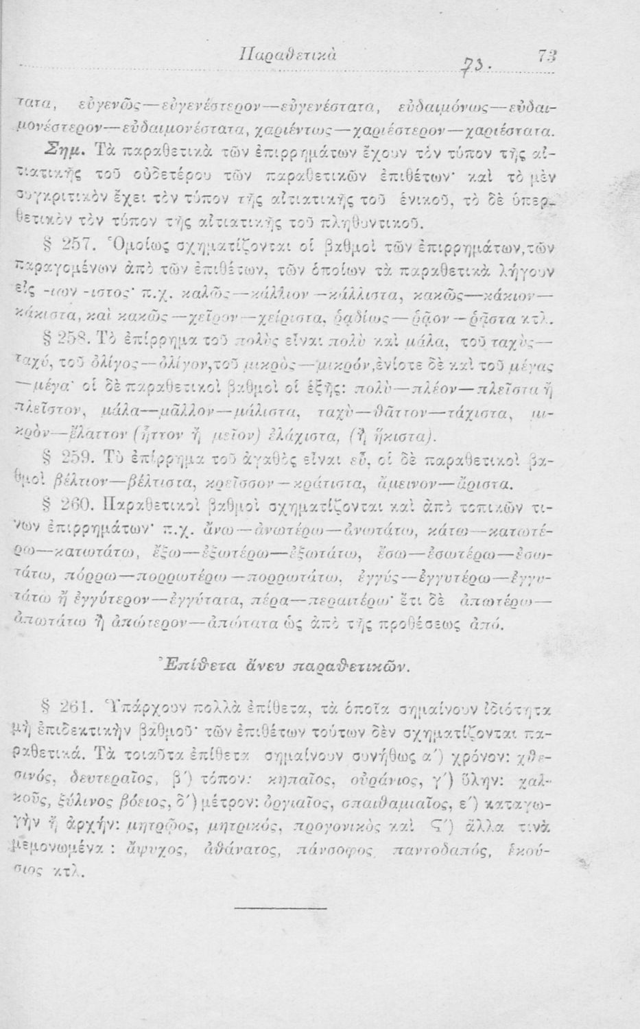Σχολικό εγχειρίδιο Αρχαίων Ελληνικών για τα Ελληνικά Σχολεία, Παρθεναγωγεία και Γυμνάσια που περιέχει τους κανόνες γραμματικής και είναι χωρισμένο σε φθογγολογικό, τυπολογικό και ετυμολογικό μέρος.