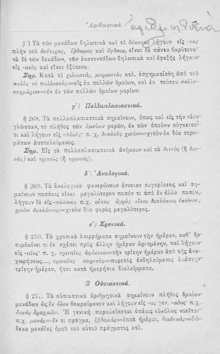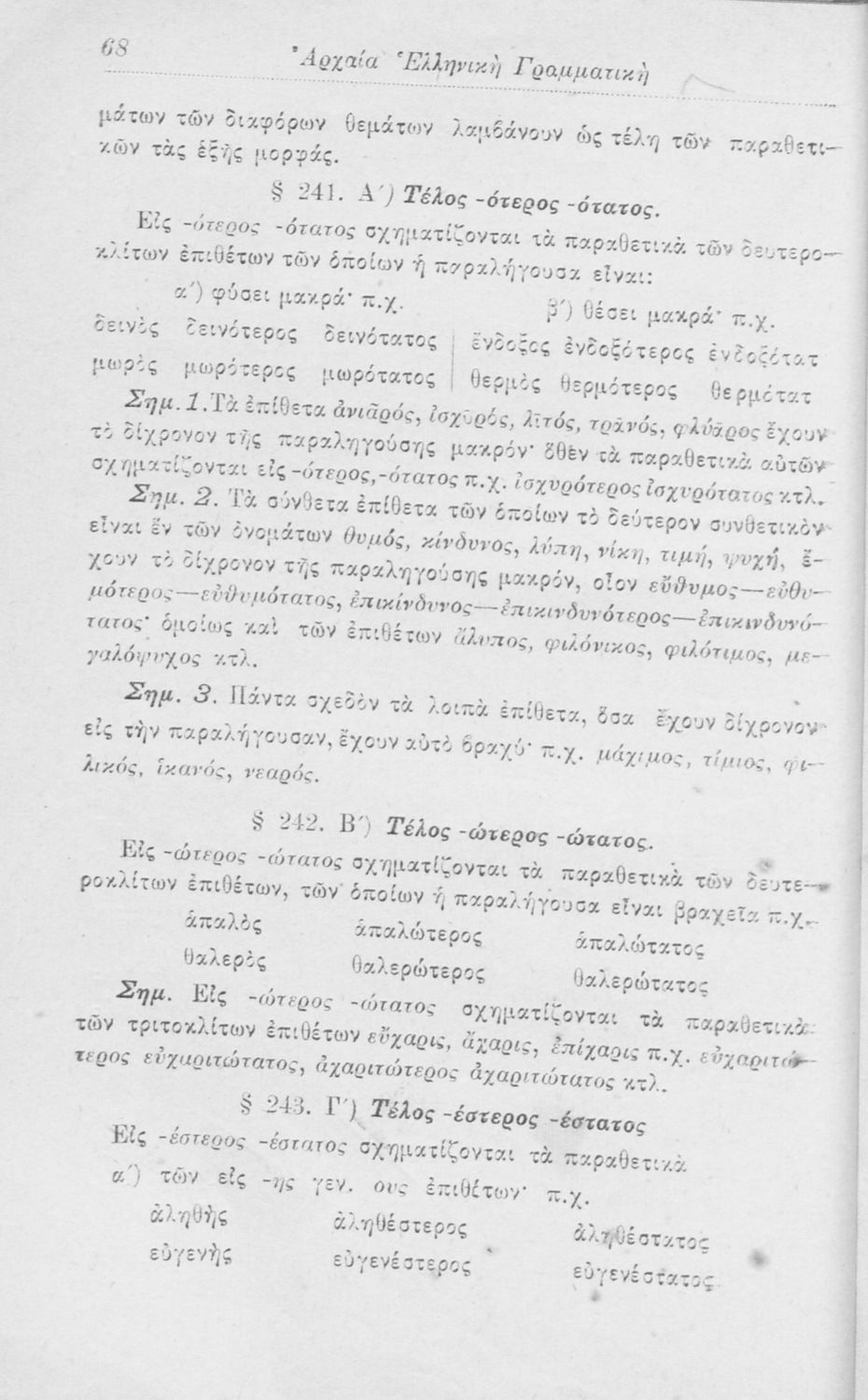 Σχολικό εγχειρίδιο Αρχαίων Ελληνικών για τα Ελληνικά Σχολεία και Παρθεναγωγεία που περιλαμβάνει κανόνες της γραμματικής της αρχαίας ελληνικής και είναι χωρισμένη στο φθογγολογικό και στο τυπολογικό μέρος.