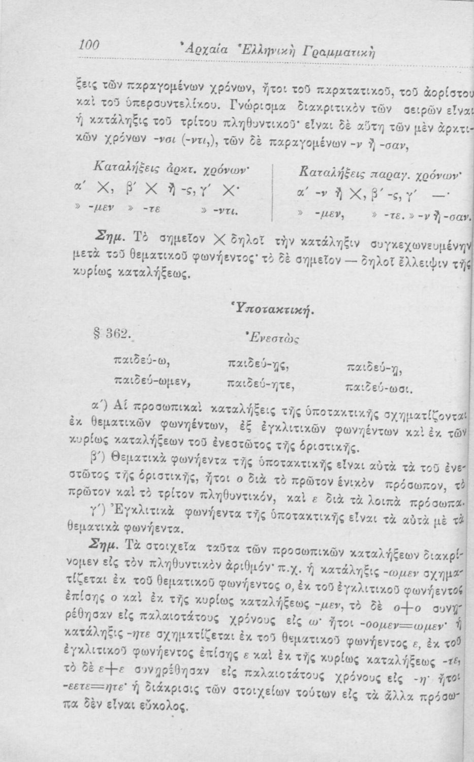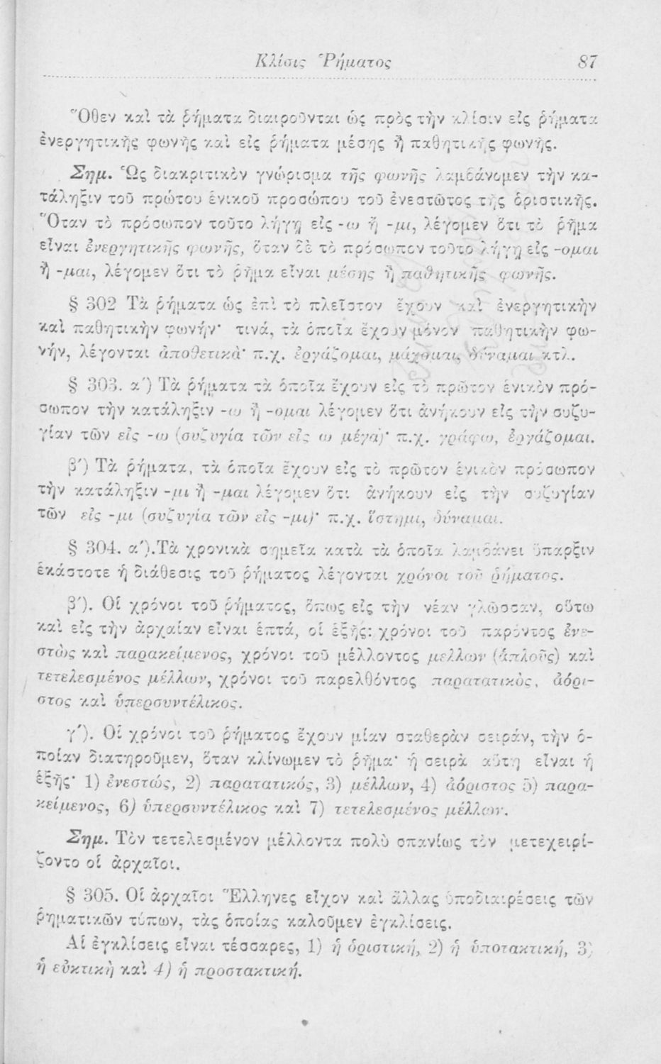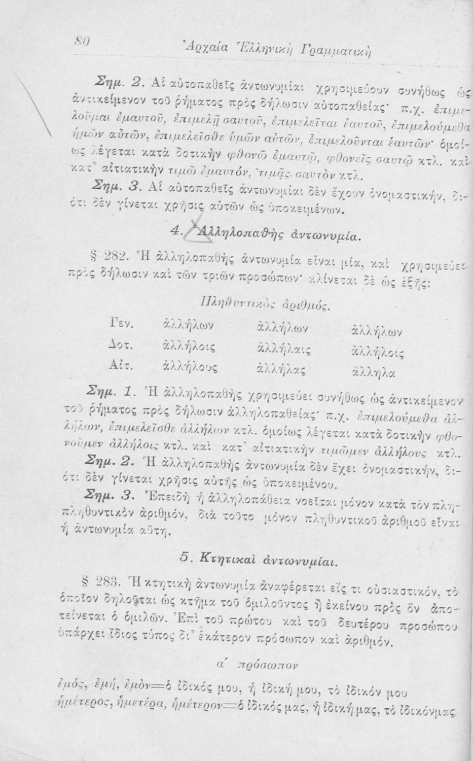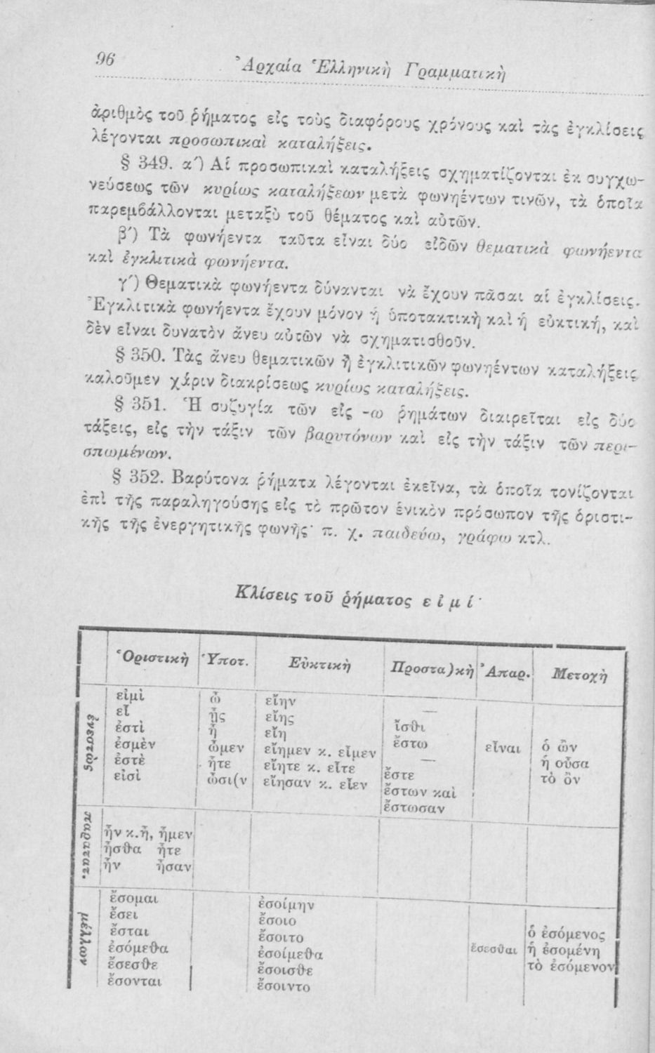 Σχολικό εγχειρίδιο Αρχαίων Ελληνικών για τα Ελληνικά Σχολεία, Παρθεναγωγεία και Γυμνάσια που περιέχει τους κανόνες γραμματικής και είναι χωρισμένο σε φθογγολογικό, τυπολογικό και ετυμολογικό μέρος.