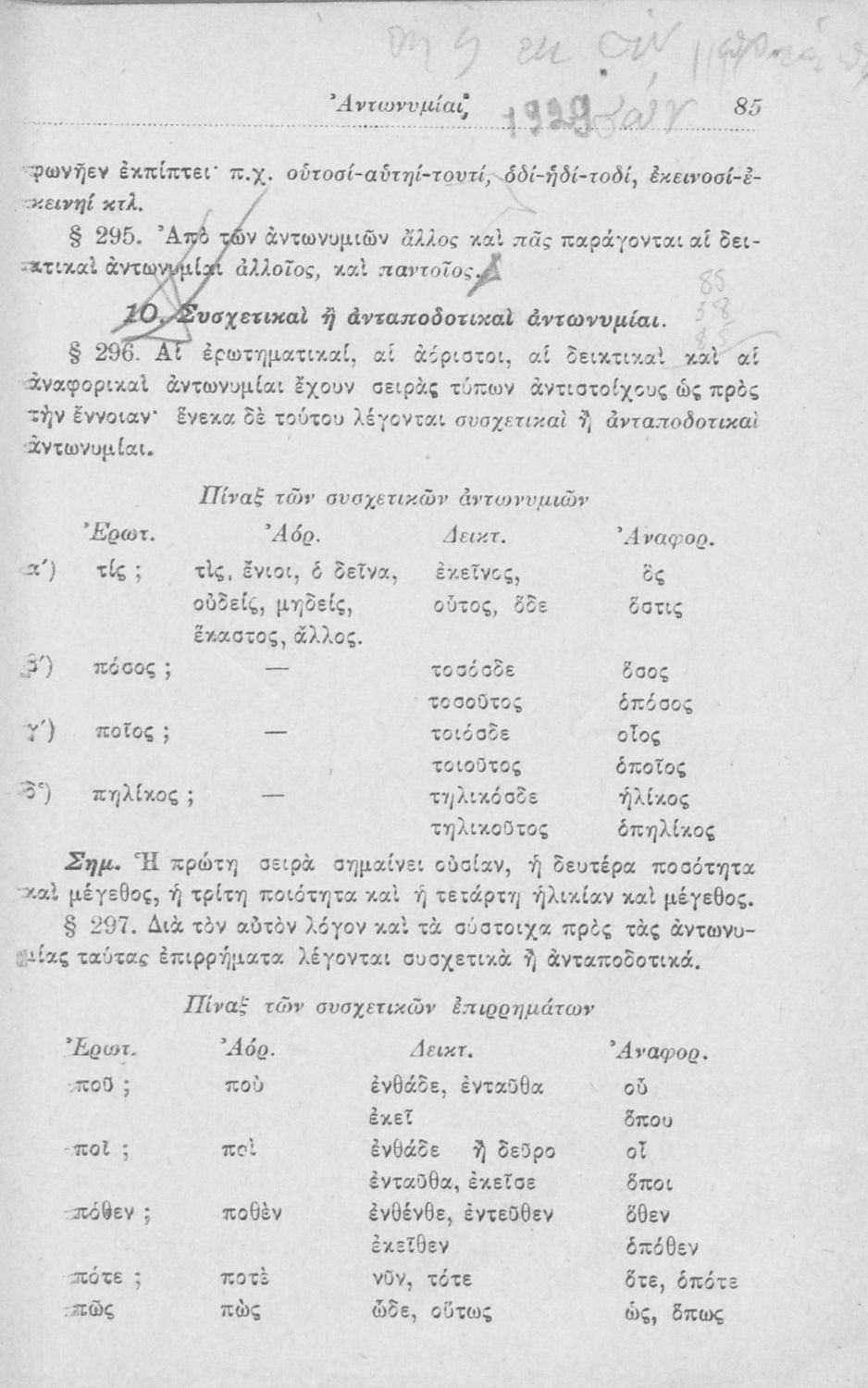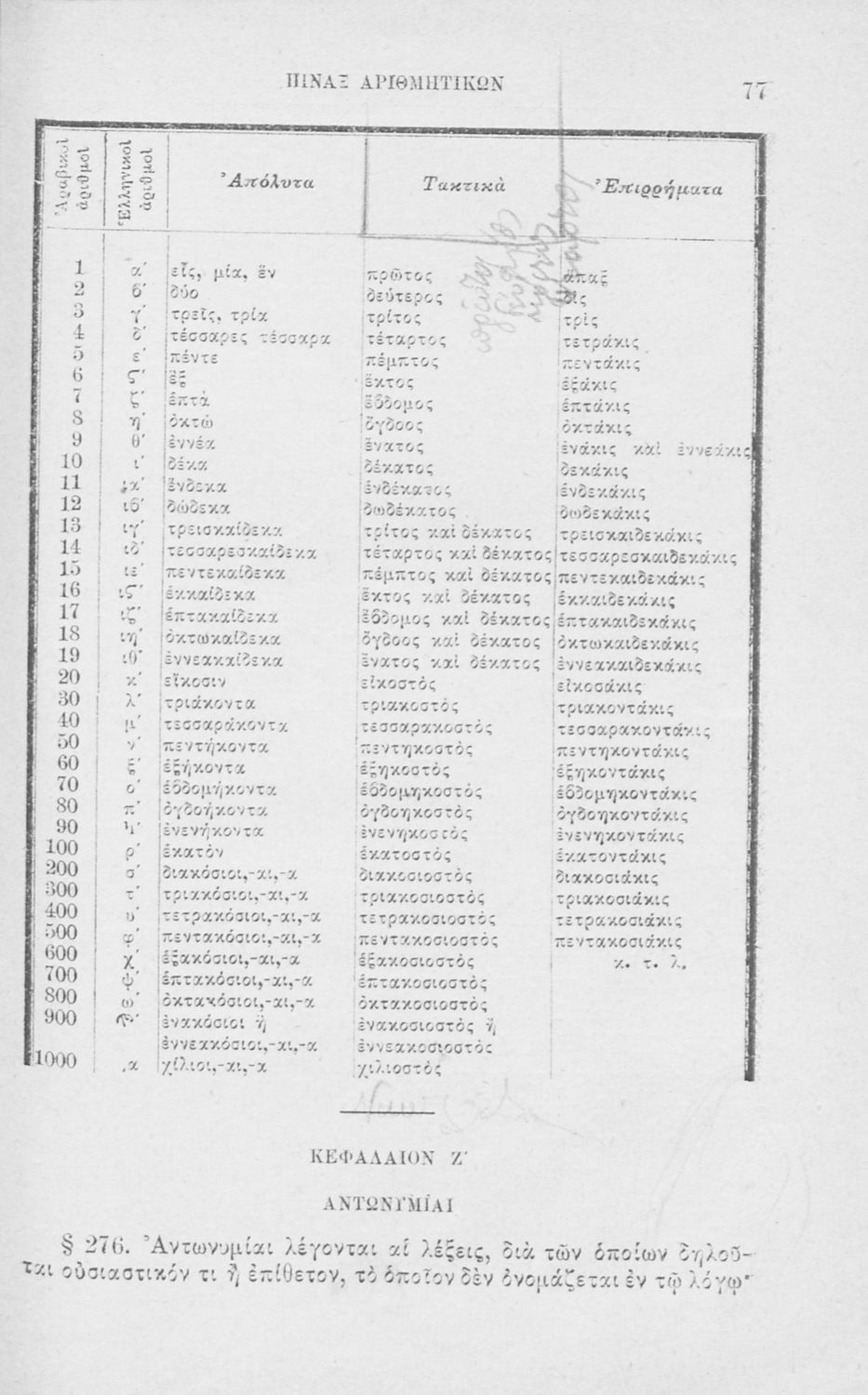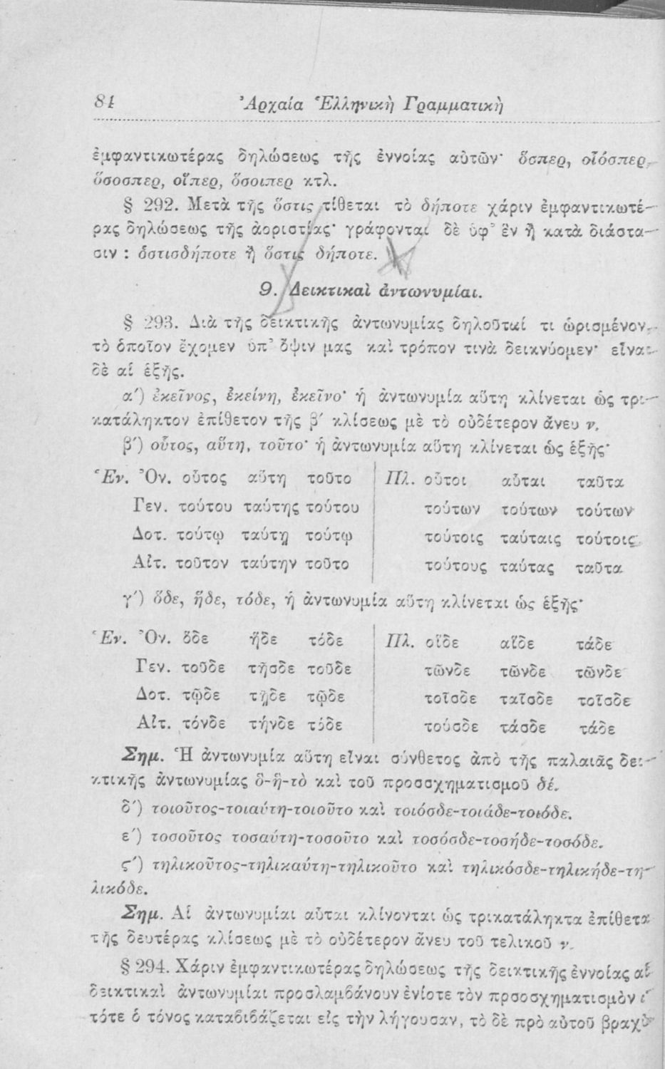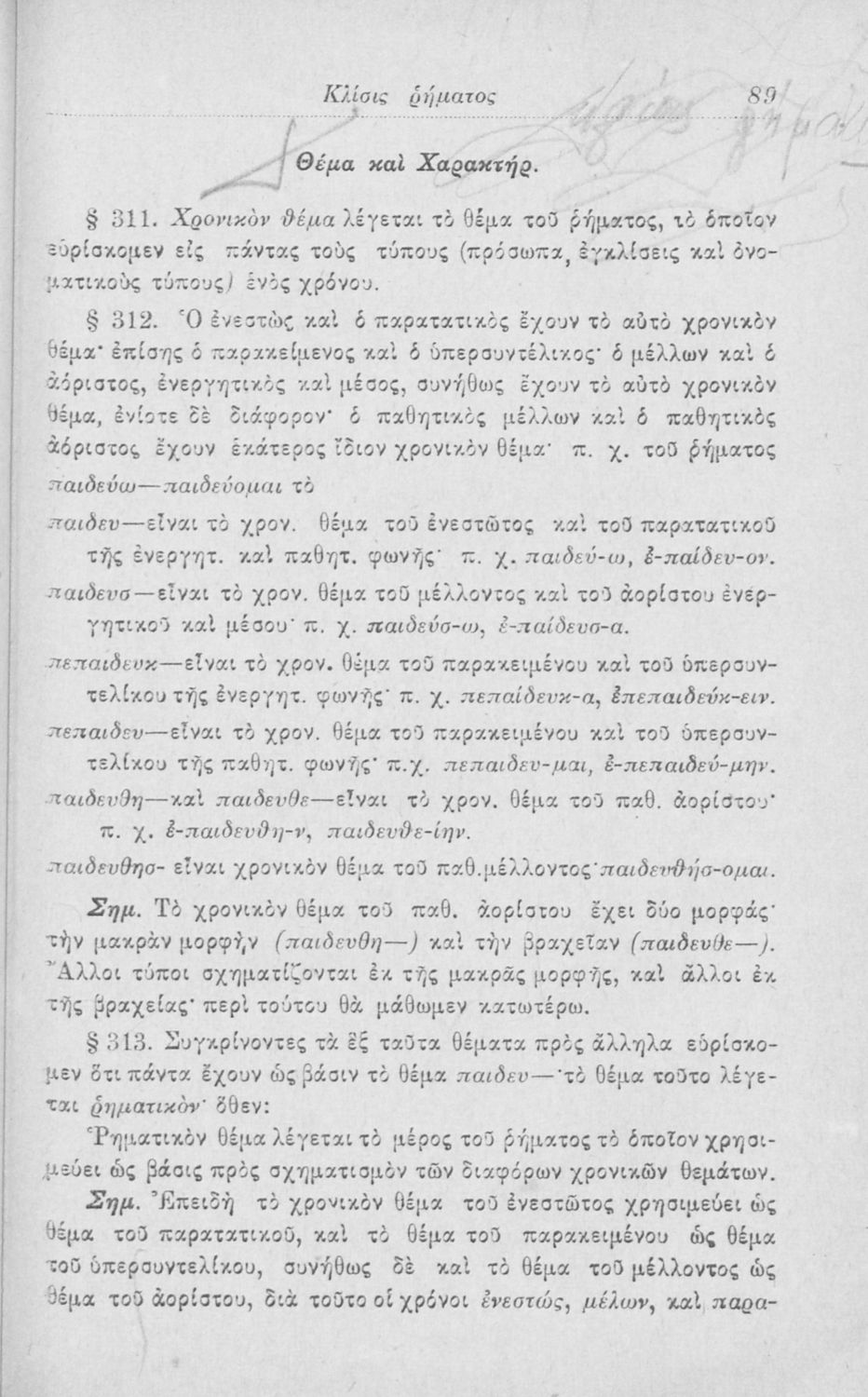 Σχολικό εγχειρίδιο Αρχαίων Ελληνικών για τα Ελληνικά Σχολεία και Παρθεναγωγεία που περιλαμβάνει κανόνες της γραμματικής της αρχαίας ελληνικής και είναι χωρισμένη στο φθογγολογικό και στο τυπολογικό μέρος.
