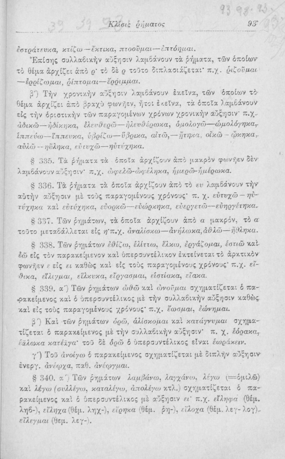 Μαθητικό βοήθημα Αρχαίων Ελληνικών για τα Ελληνικά Σχολεία, Παρθεναγωγεία και Γυμνάσια που περιλαμβάνει γραμματική της αρχαίας ελληνικής και κατάλογο ανωμάλων ρημάτων.