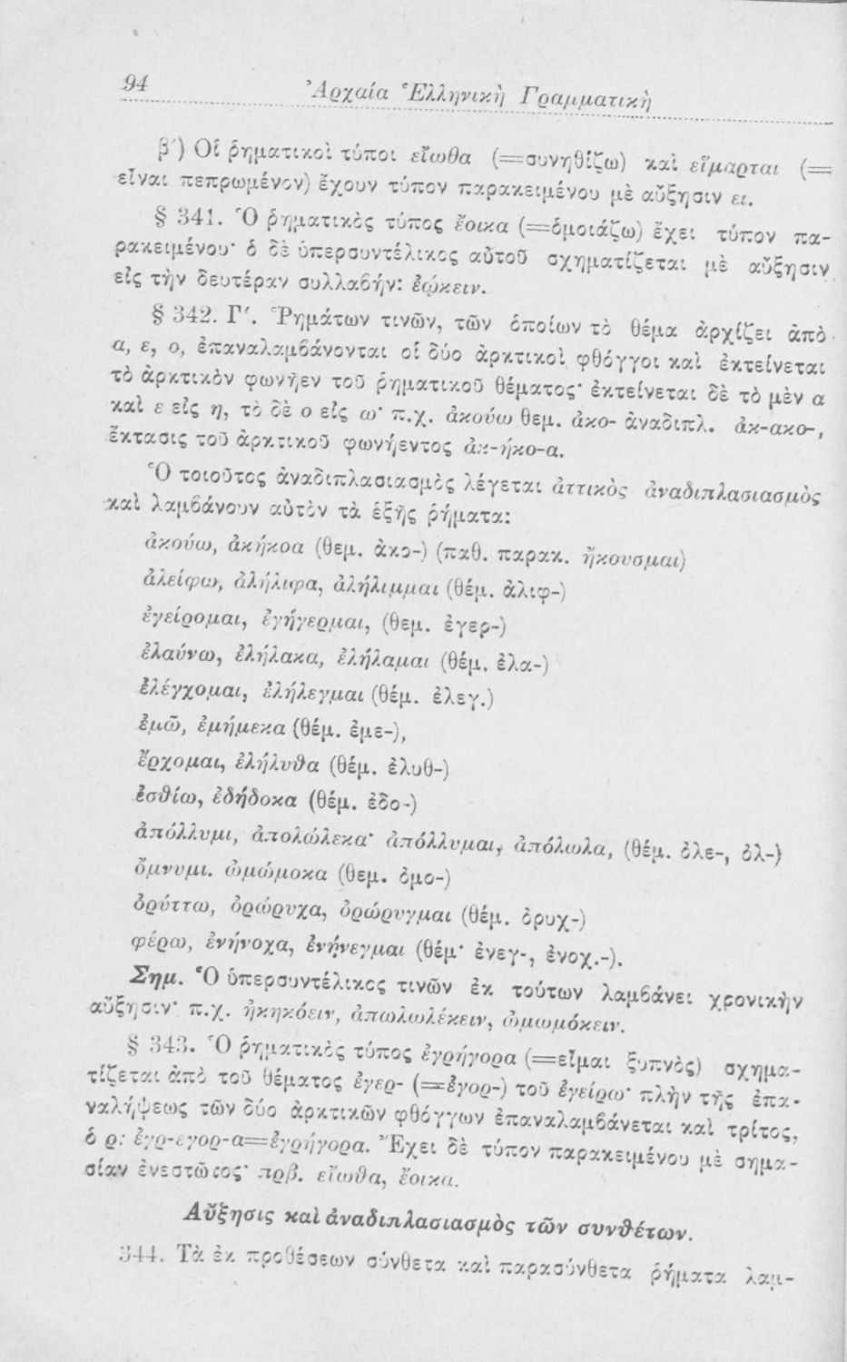 Σχολικό εγχειρίδιο Αρχαίων Ελληνικών για τα Ελληνικά Σχολεία που αποτελεί γραμματική της αρχαίας ελληνικής και είναι χωρισμένο στο φθογγολογικό και το τυπολογικό μέρος. Περιέχει και σύντομα κείμενα που χρησιμοποιούνται για τη διδασκαλία των γραμματικών φαινομένων και ασκήσεις.