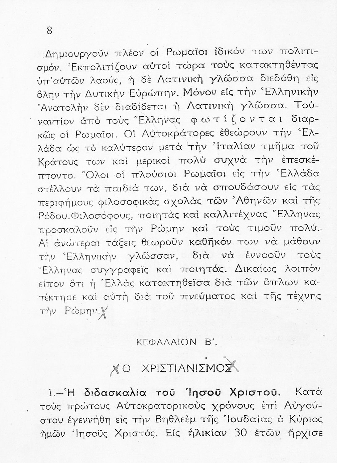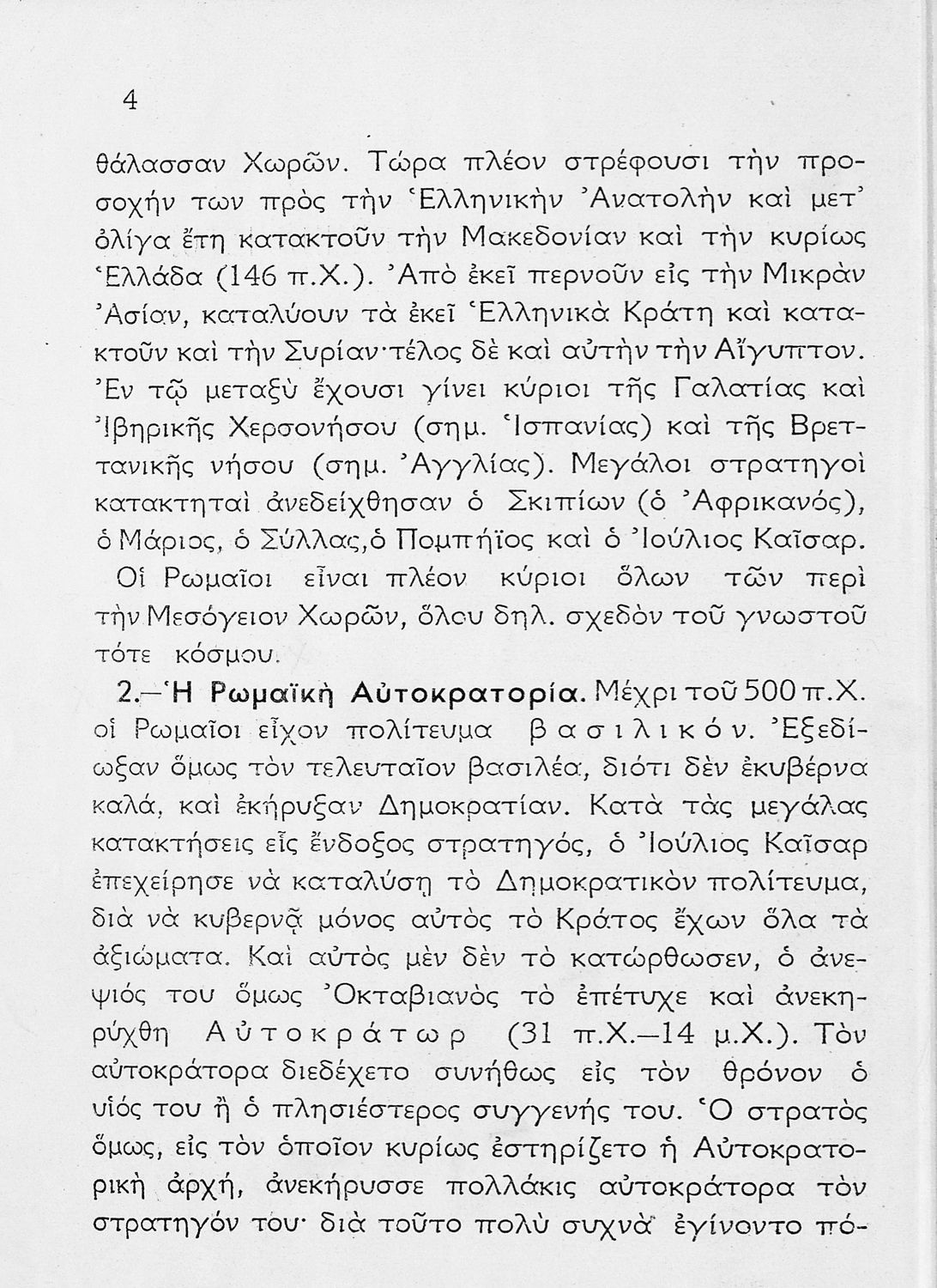 Βαθμίδα εκπαίδευσης: Πρωτοβάθμια Τάξη: Ε' Δημοτικού Μάθημα: Ιστορία Γλώσσα: Απλή καθαρεύουσα Παρουσίαση περιεχομένου: Σχολικό εγχειρίδιο Ιστορίας Ε΄ Δημοτικού που εστιάζει στην Ρωμαϊκή και Βυζαντινή Ιστορία και πραγματεύεται ζητήματα ανάπτυξης των γραμμάτων και των τεχνών στη Δύση και τις θρησκευτικές μεταρρυθμίσεις στην Ευρώπη. |