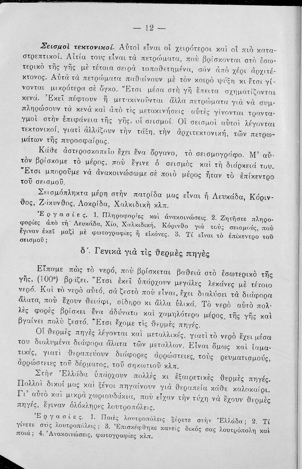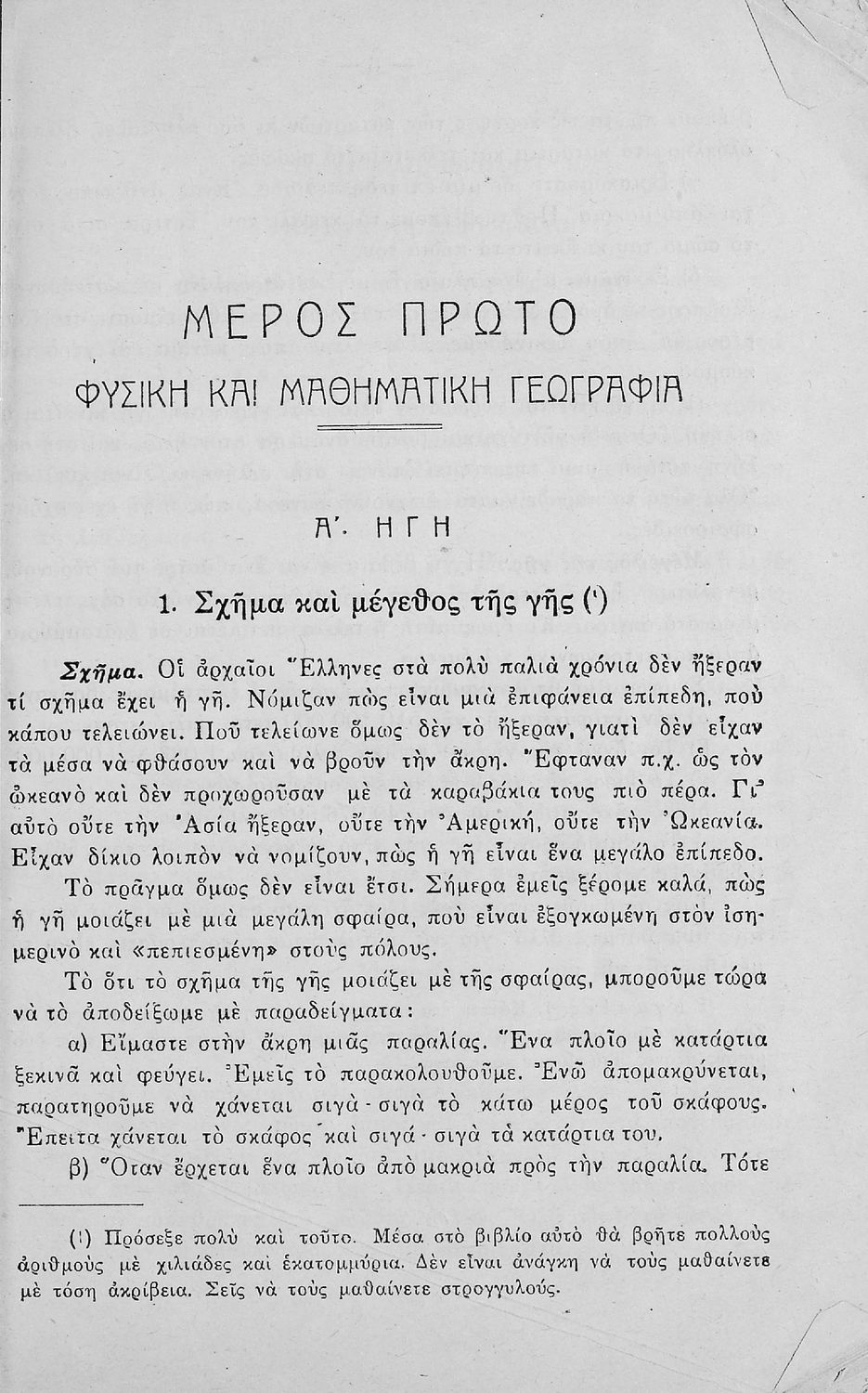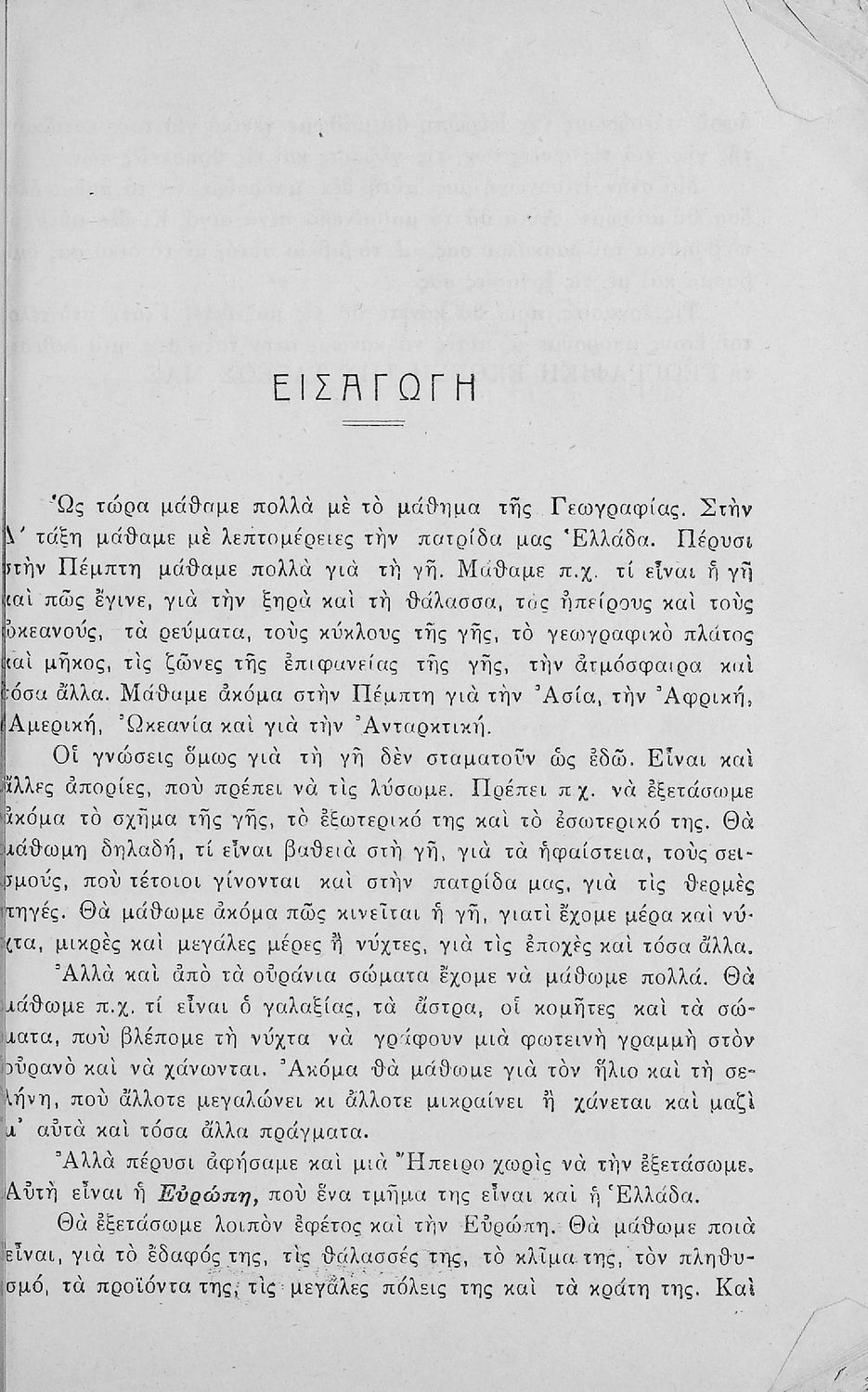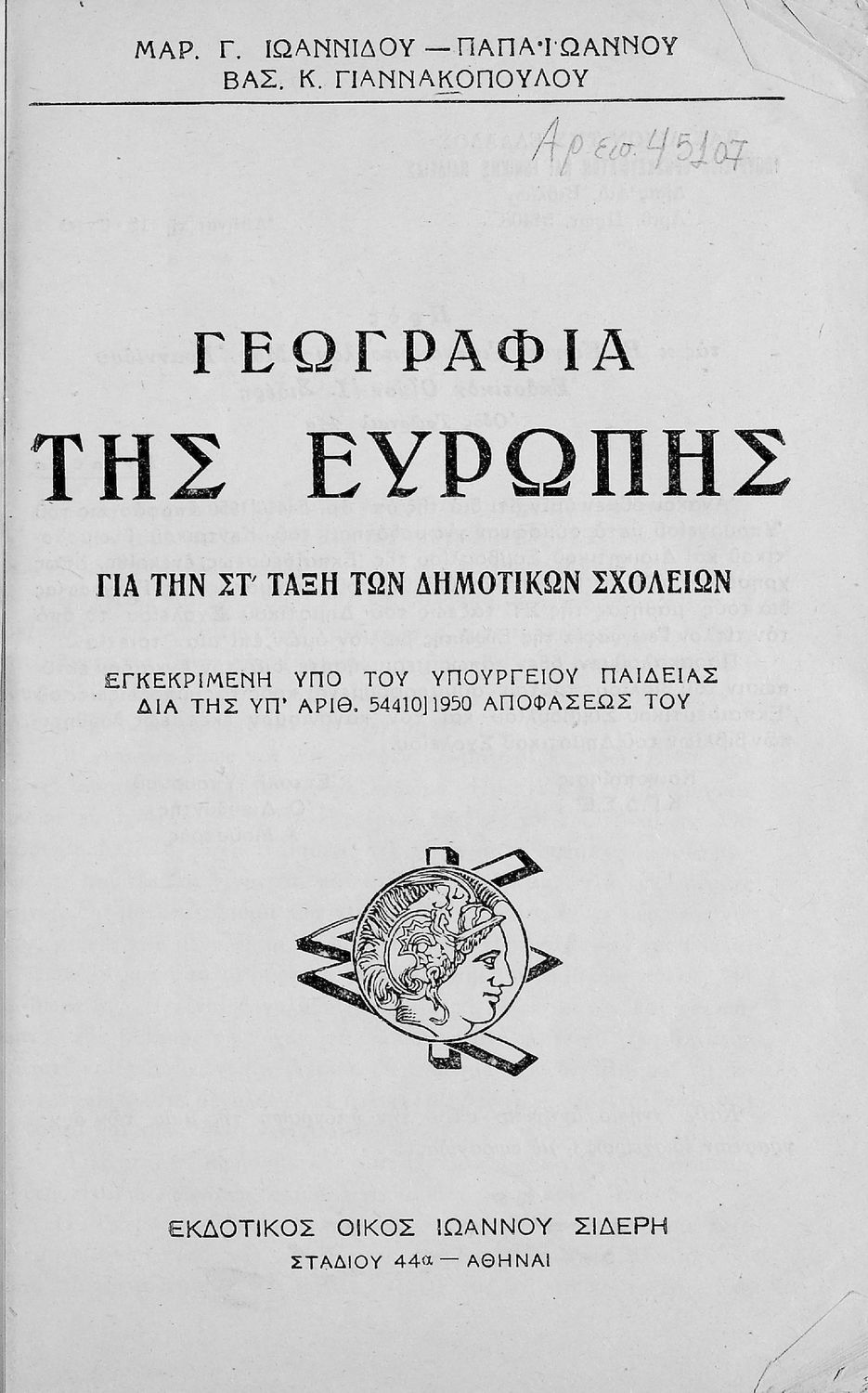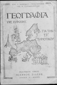 Σχολικό εγχειρίδιο Γεωγραφίας για τις Γ΄, Δ΄, Ε΄, ΣΤ΄ Δημοτικού που περιλαμβάνει εισαγωγή στην πατριδογνωσία και παρουσιάζει την φυσική και πολιτική γεωγραφία της Παλαιάς και Νέας Ελλάδας.