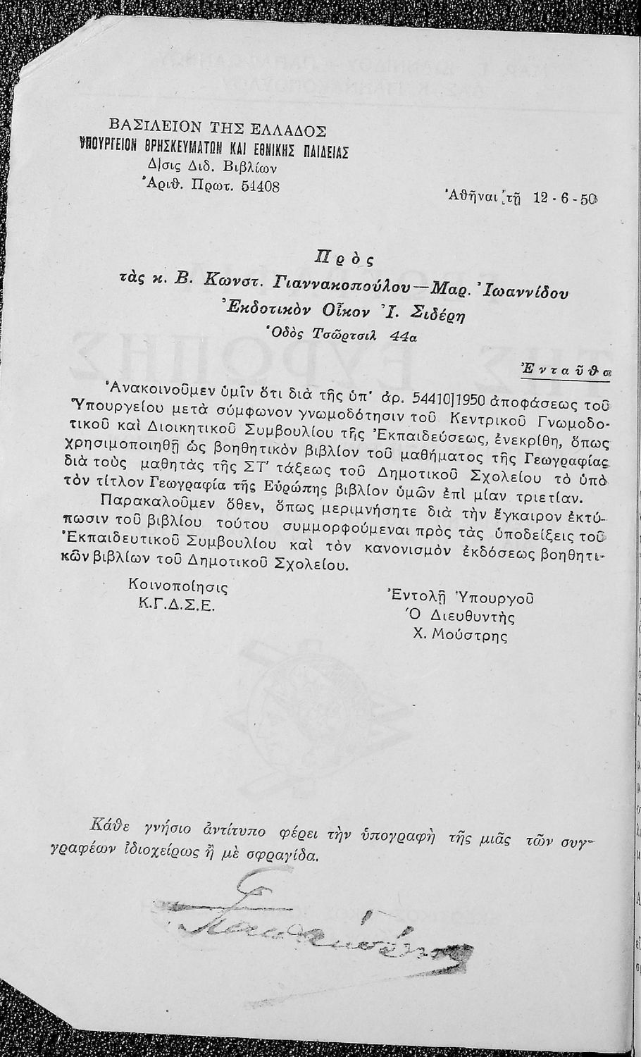 Υπουργική απόφαση / Σύμβαση: 54410/1950