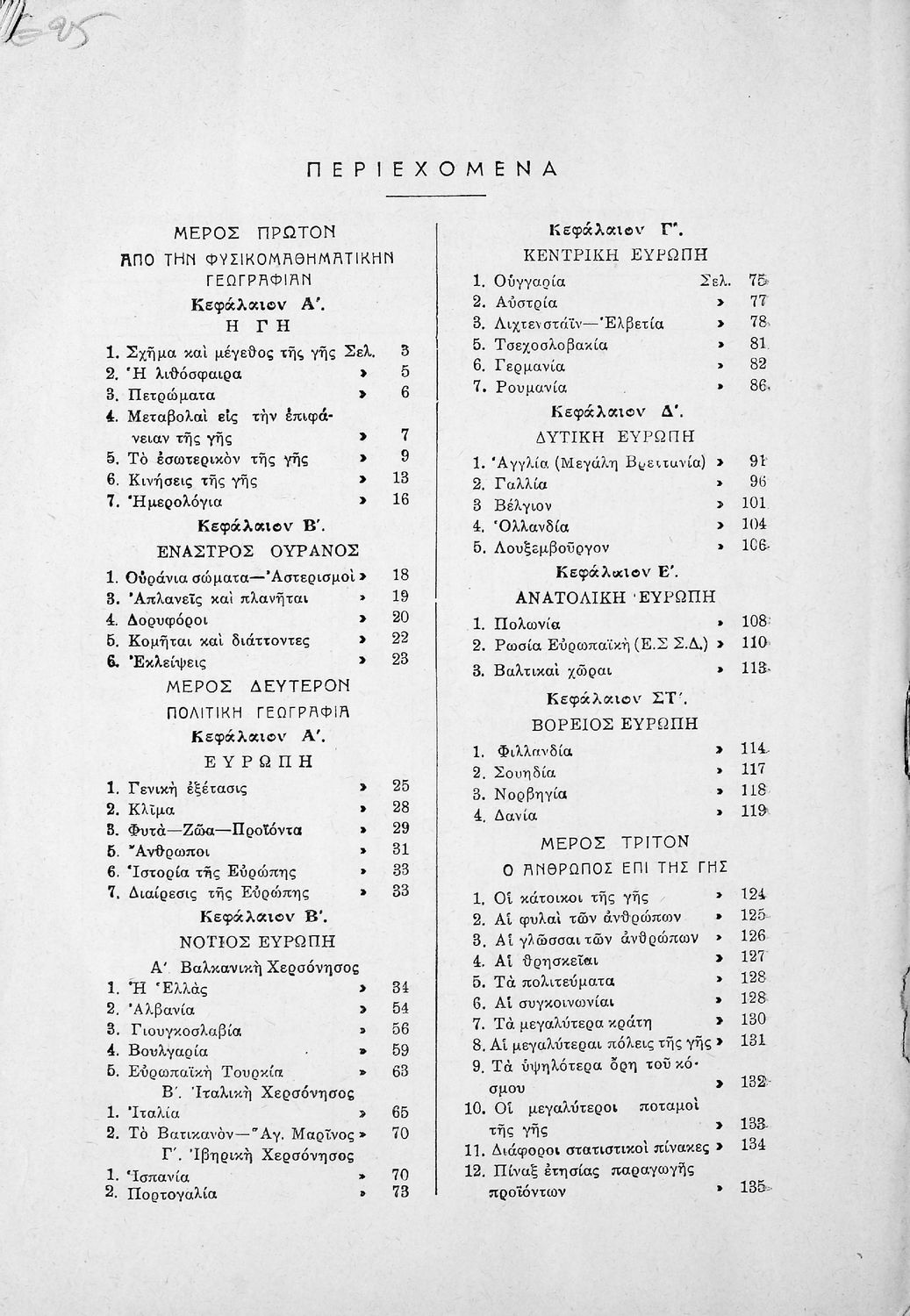 Σχολικό εγχειρίδιο Γεωγραφίας για τις Ε΄ και ΣΤ΄ Δημοτικού που περιλαμβάνει στοιχεία μαθηματικής και φυσικής γεωγραφίας, γεωλογίας και κοσμογραφίας, και εξετάζει την Ελλάδα και ενδεικτικές χώρες από τις πέντε ...