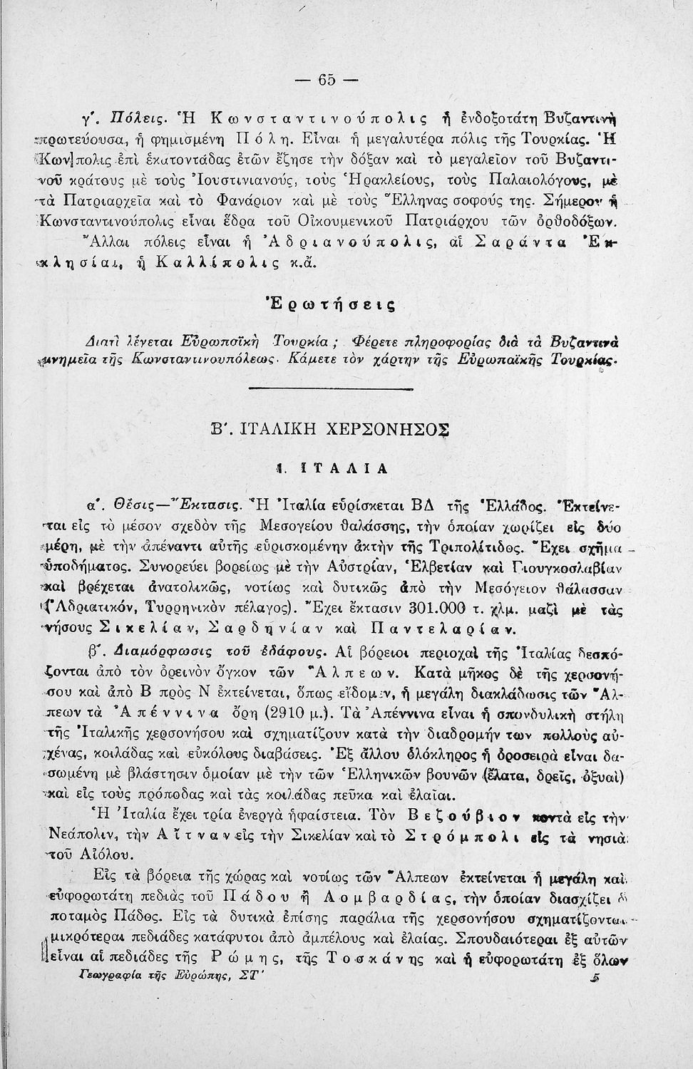 Γεωγραφία της Ευρώπης, προς χρήσιν των μαθητών της ΣΤ΄ τάξεως των Δημοτικών Σχολείων και το β΄ έτος συνδιδασκαλίας των Ε΄ και ΣΤ΄ τάξεων