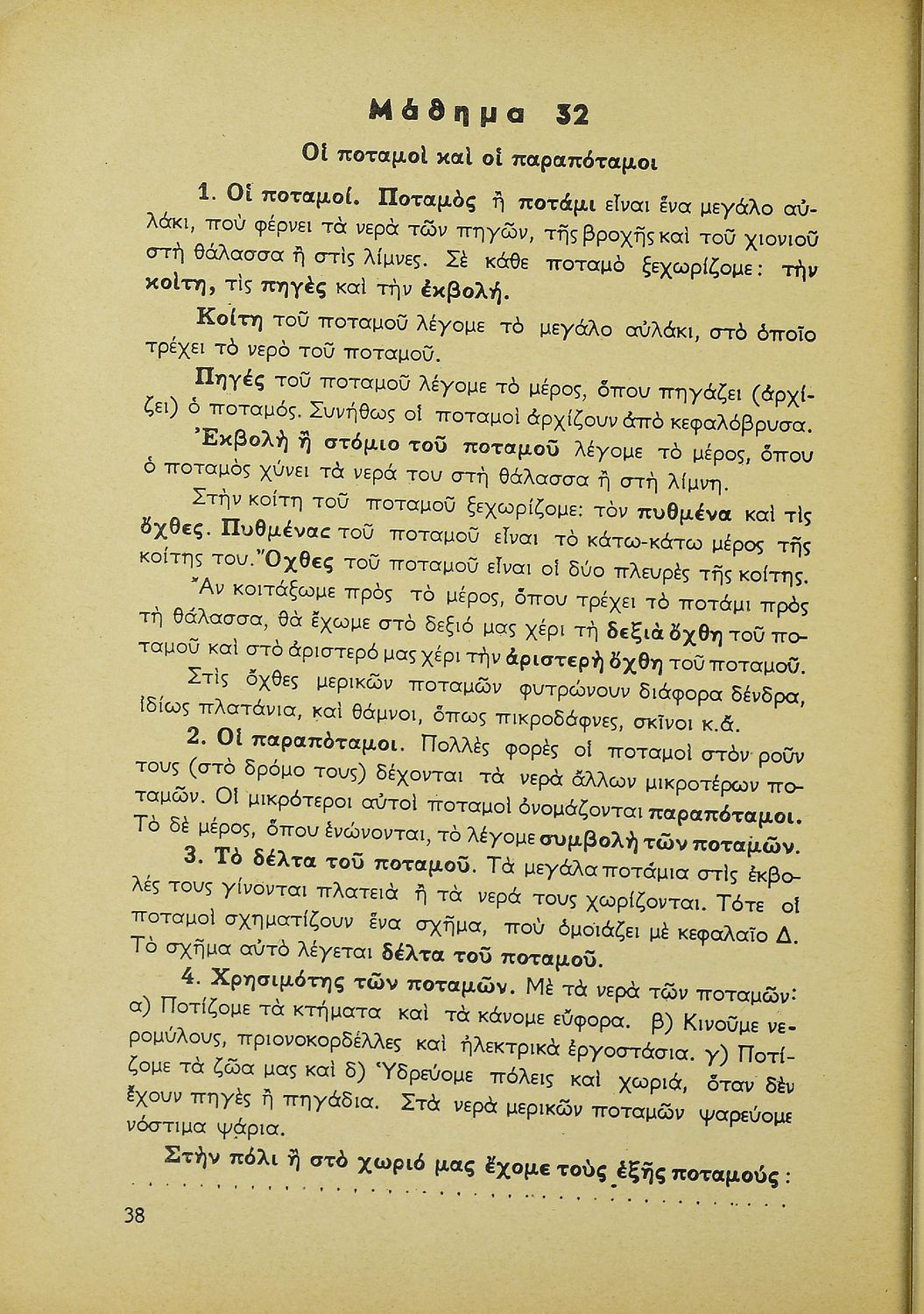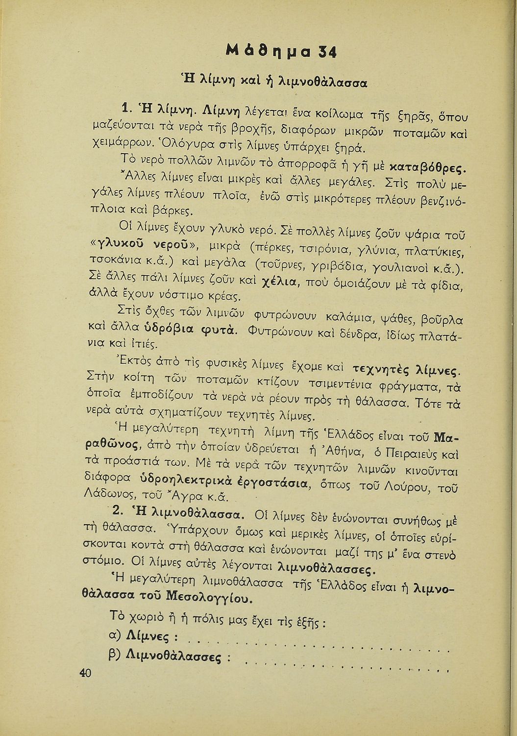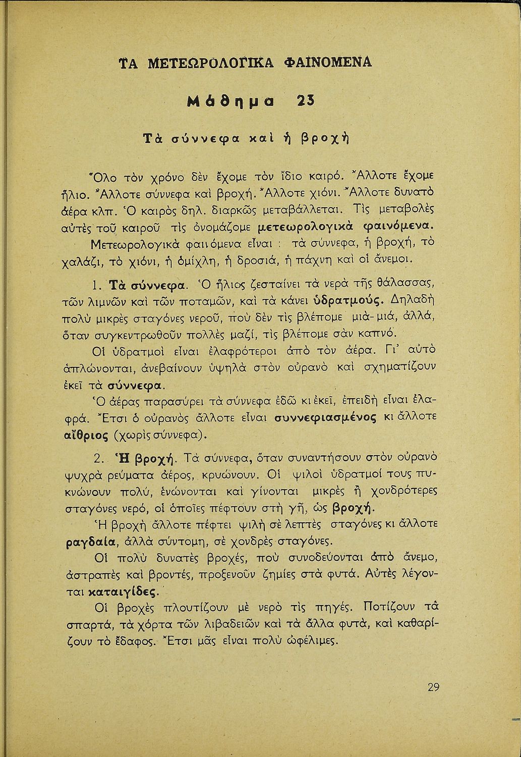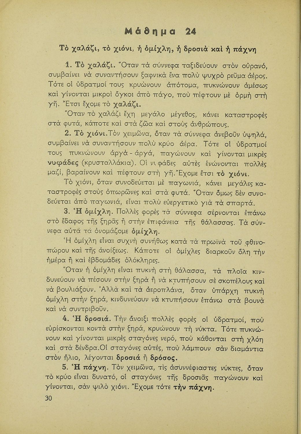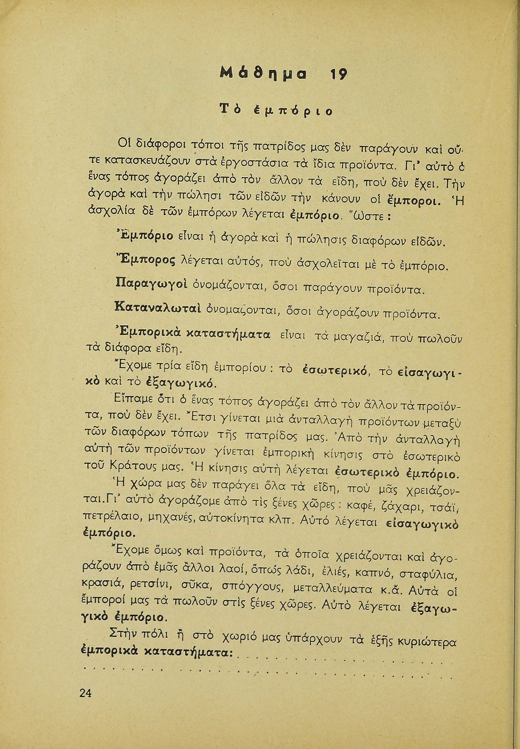 Σχολικό εγχειρίδιο Γεωγραφίας για τις Γ΄, Δ΄, Ε΄, ΣΤ΄ Δημοτικού που περιλαμβάνει εισαγωγή στην πατριδογνωσία και παρουσιάζει την φυσική και πολιτική γεωγραφία της Παλαιάς και Νέας Ελλάδας.