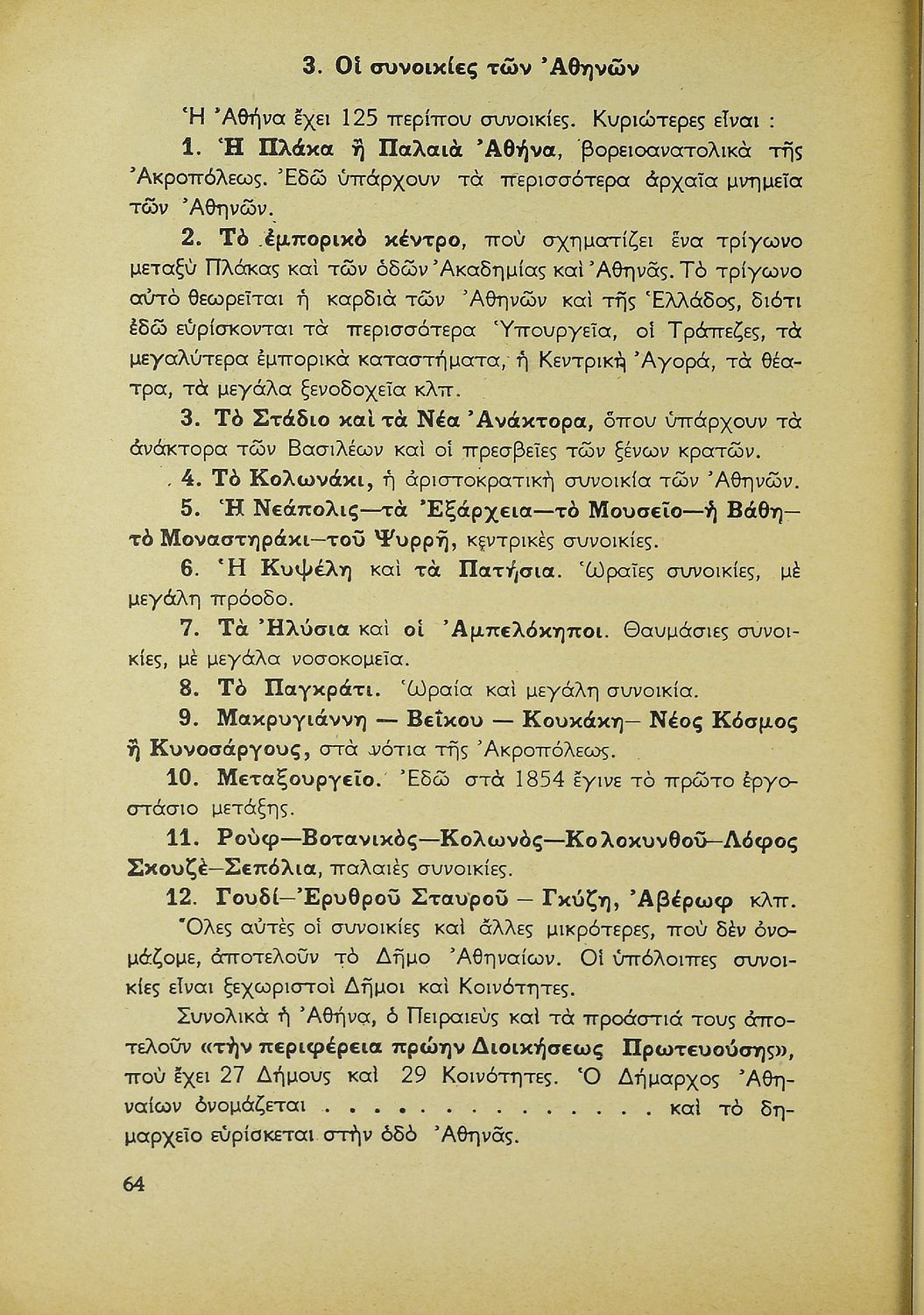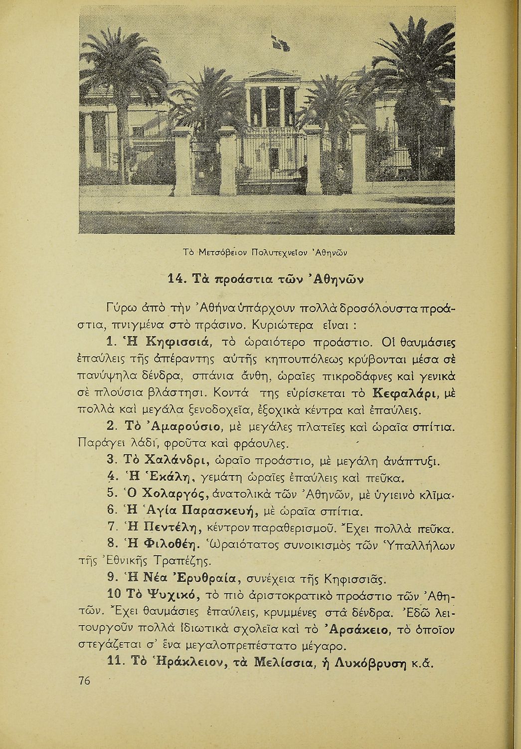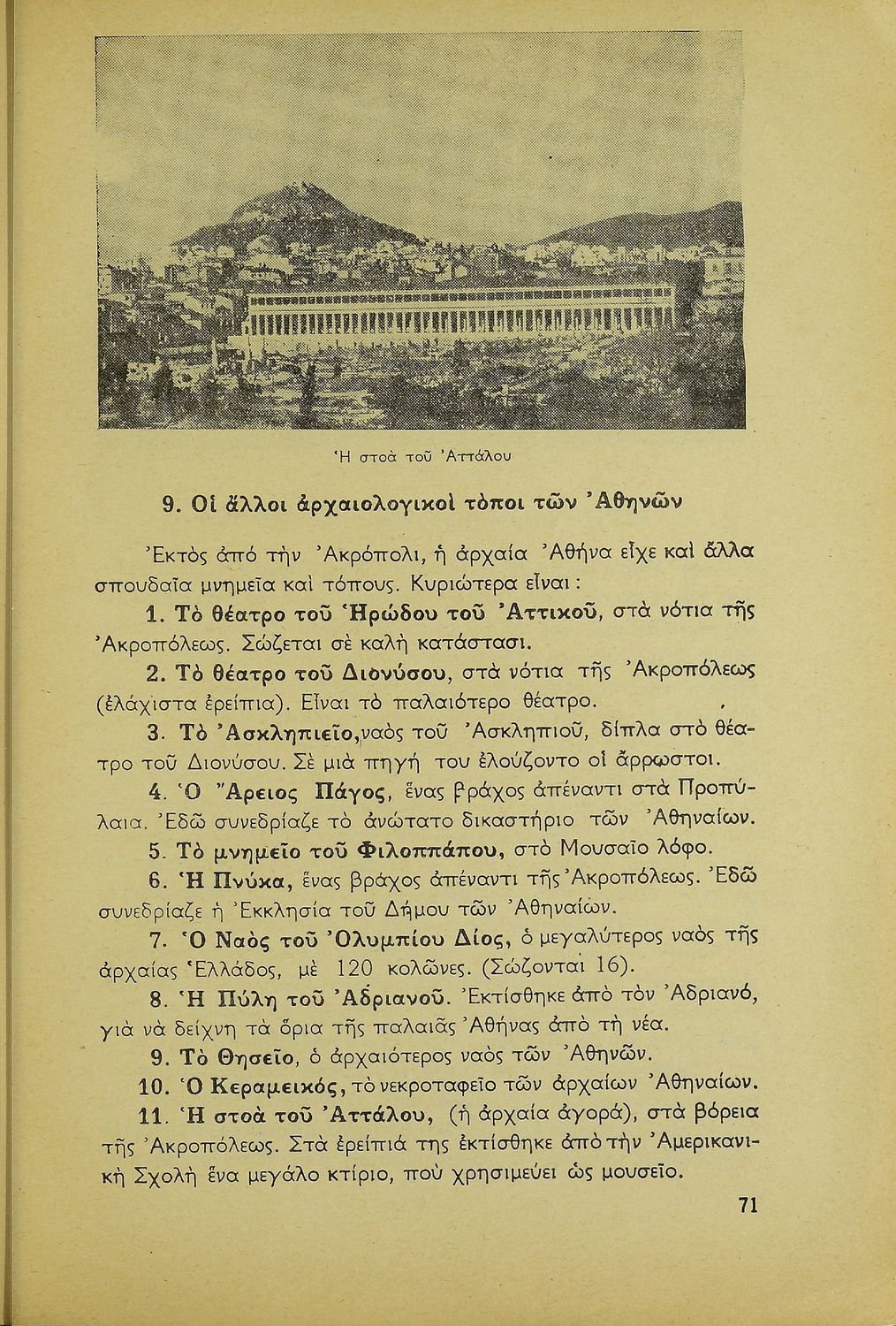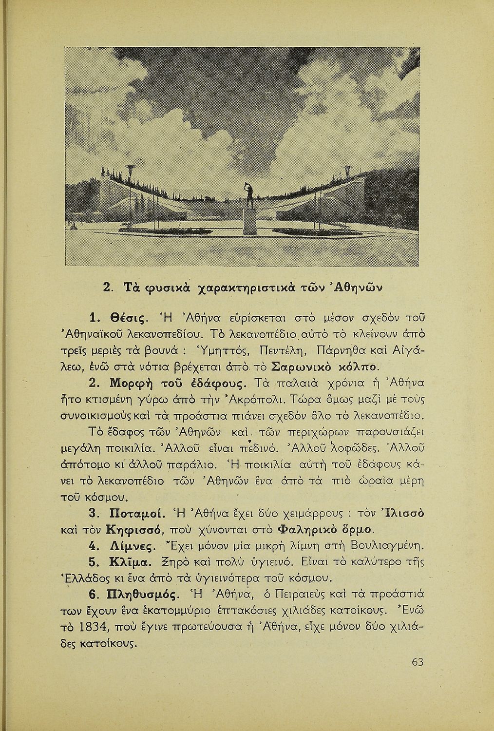 Σχολικό εγχειρίδιο Γεωγραφίας για την Γ' Δημοτικού. Είναι σύμφωνο με το αναλυτικό πρόγραμμα του 1913. Περιλαμβάνει στοιχεία πατριδογνωσίας, γεωγραφικούς ορισμούς και στοιχεία της Αττικής και των επαρχιών της.