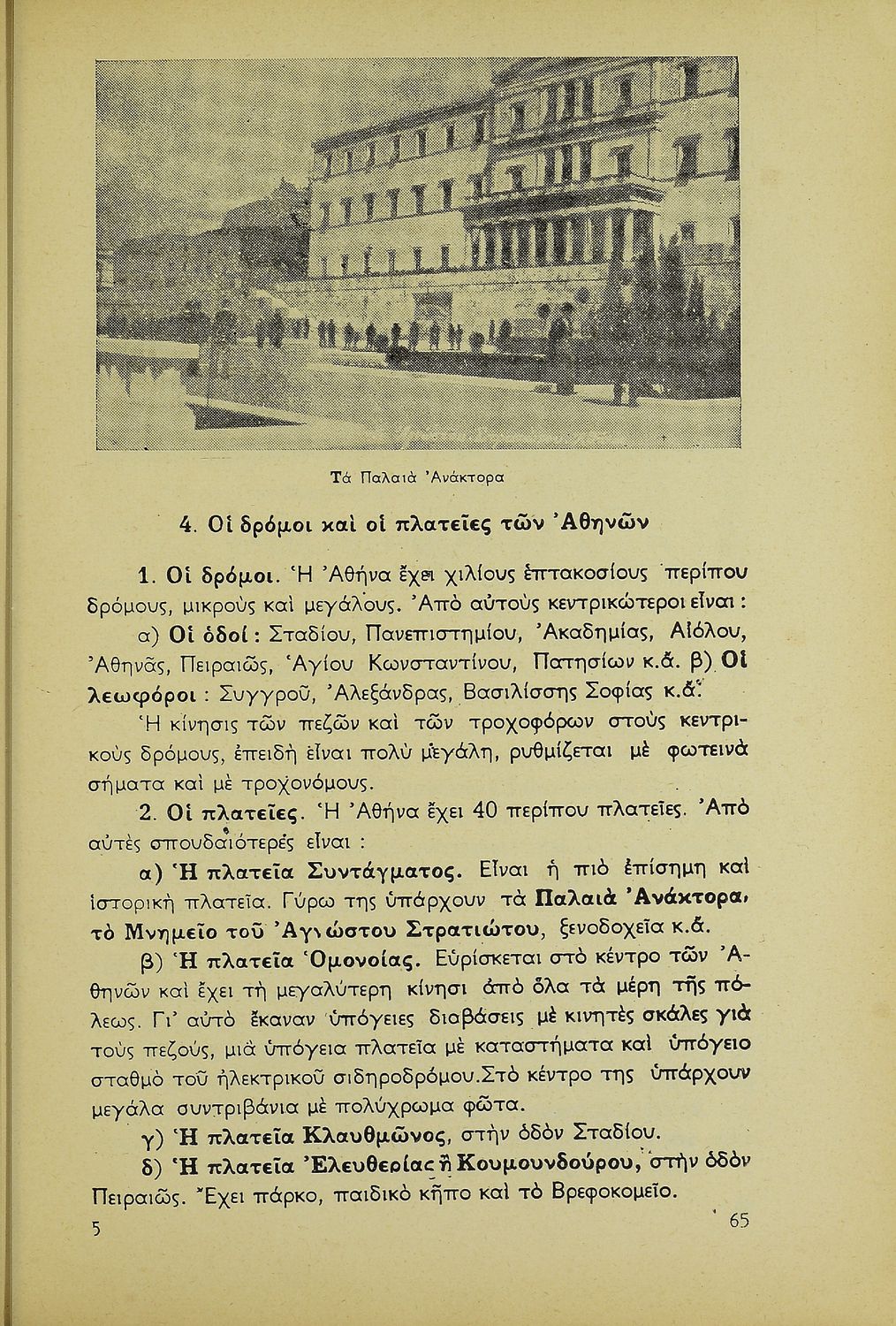 Σχολικό εγχειρίδιο Γεωγραφίας για τις Γ΄, Δ΄, Ε΄, ΣΤ΄ Δημοτικού που περιλαμβάνει εισαγωγή στην πατριδογνωσία και παρουσιάζει την φυσική και πολιτική γεωγραφία της Παλαιάς και Νέας Ελλάδας.