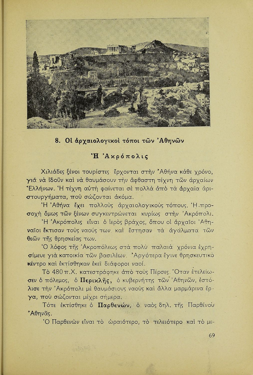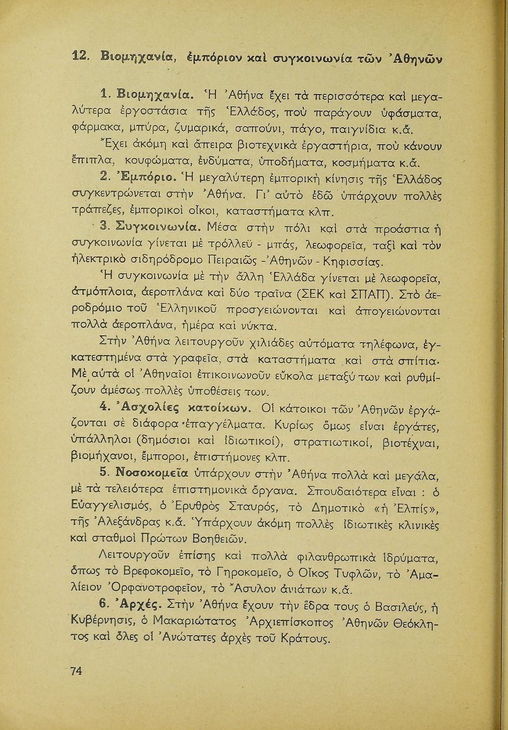 Σχολικό εγχειρίδιο Γεωγραφίας που περιλαμβάνει εισαγωγή στη φυσική γεωγραφία και εξετάζει την Ελλάδα ανά γεωγραφικό διαμέρισμα από γεωφυσική, οικονομική και πολιτική άποψη.