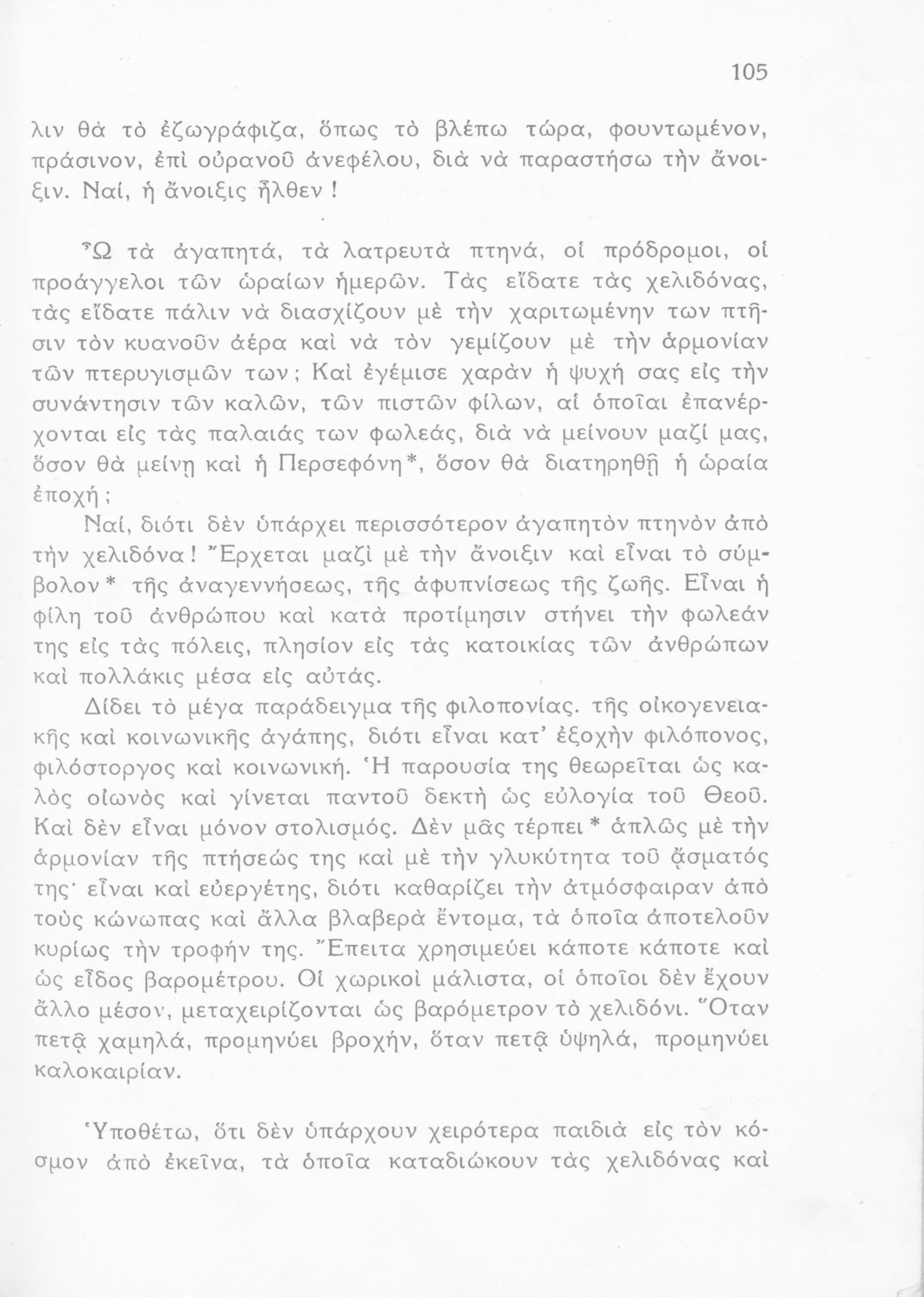 Σχολικό εγχειρίδιο Νέων Ελληνικών Α΄ Γυμνασίου που περιλαμβάνει ποιήματα και πεζά Ελλήνων συγγραφέων με θέματα εμπνευσμένα από τη θρησκευτική ζωή, την αρχαία και νεώτερη ελληνική ιστορία, την οικογενειακή και κοινωνική ζωή και την ελληνική ύπαιθρο. Περιέχει και παράρτημα με βιογραφίες των συγγραφέων και λεξιλόγιο.