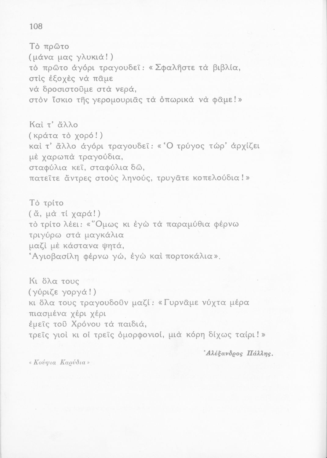Σχετιζόμενοι όροι:  Παπαντωνίου, Πολέμης, Παλαμάς, Βηλαράς