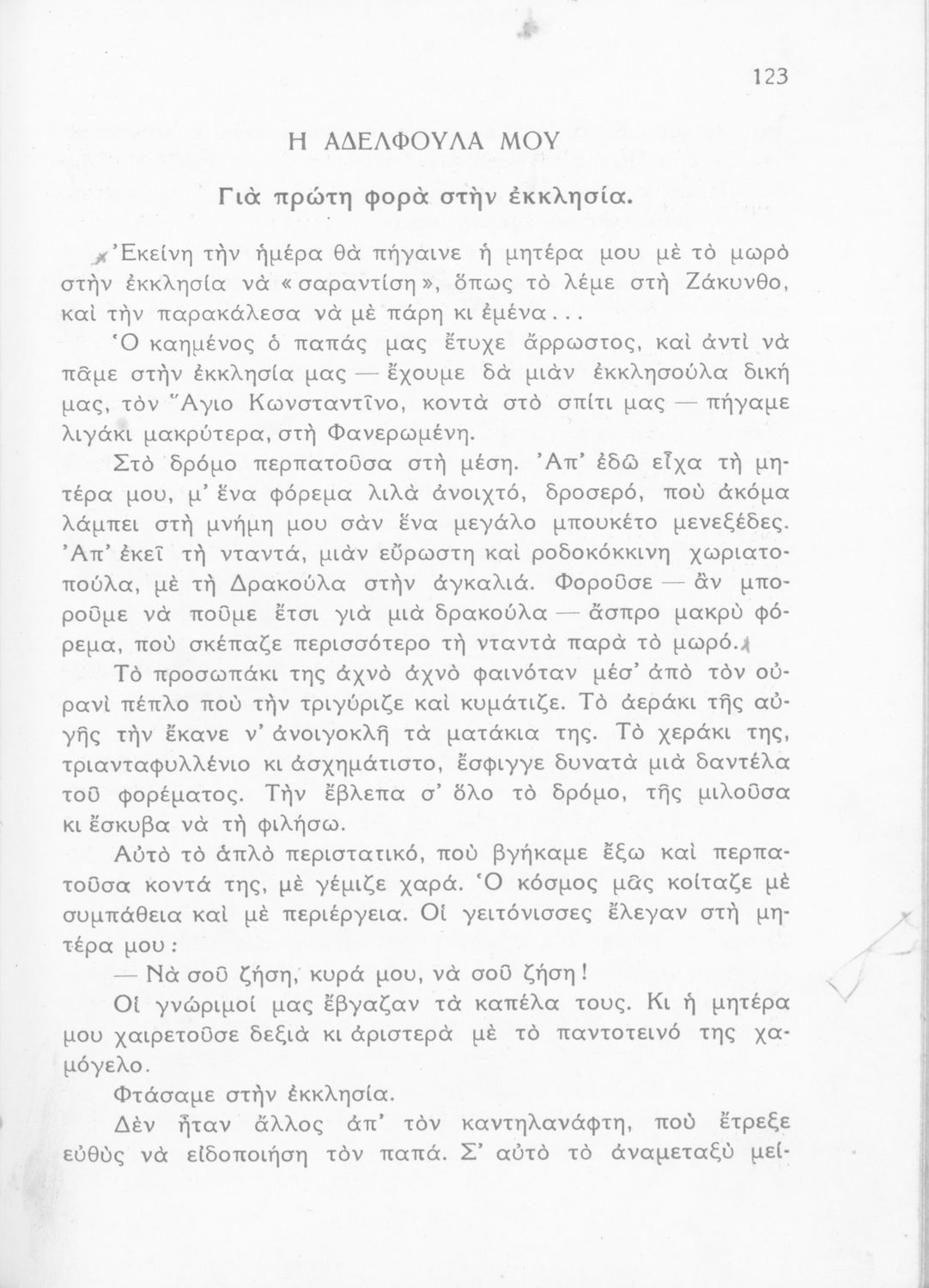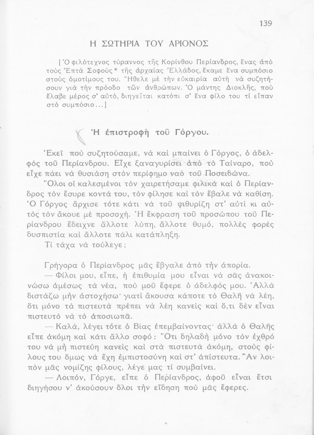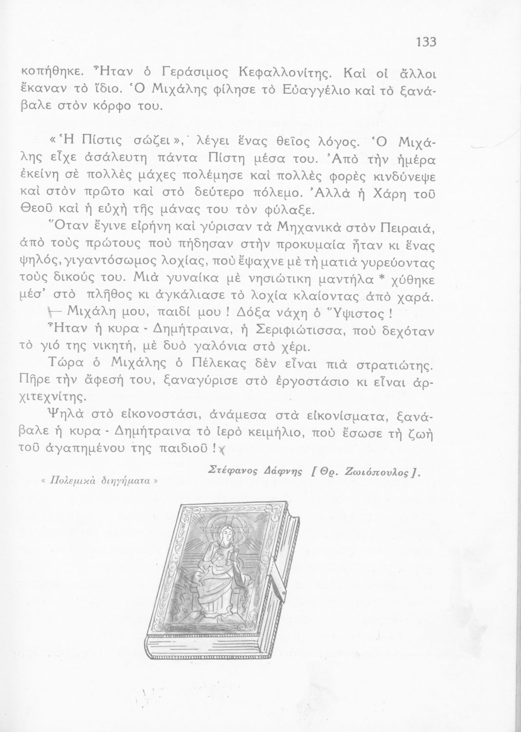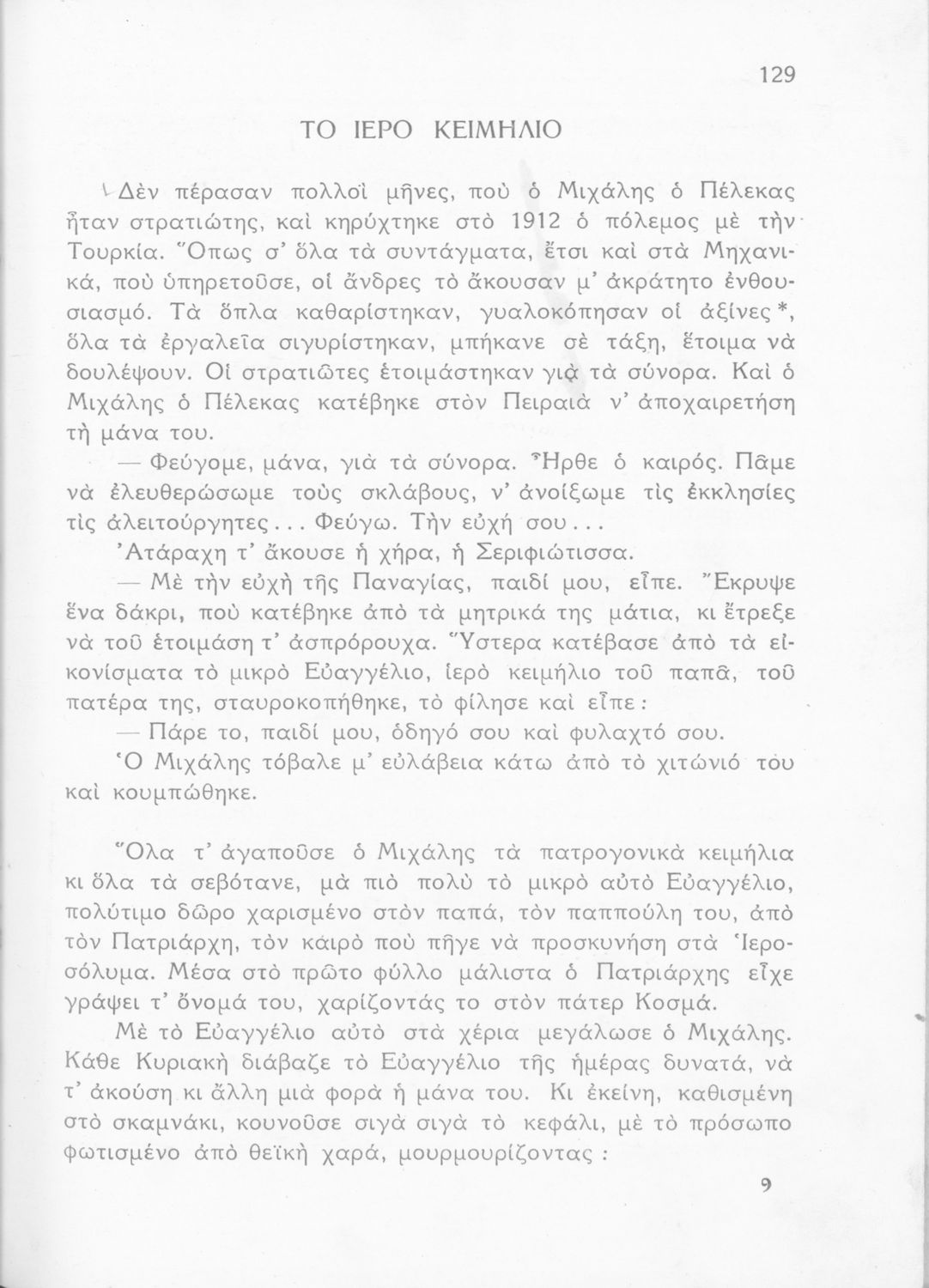 Σχολικό εγχειρίδιο Νέων Ελληνικών Γ΄ Γυμνασίου και Α' Αστικού Σχολείου που περιέχει πεζά και ποιήματα Ελλήνων συγγραφέων εμπνευσμένα από τη θρησκευτική και κοινωνική ζωή, την ελληνική μυθολογία, την αρχαία και