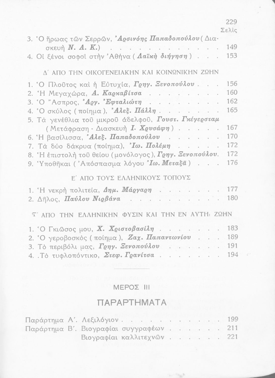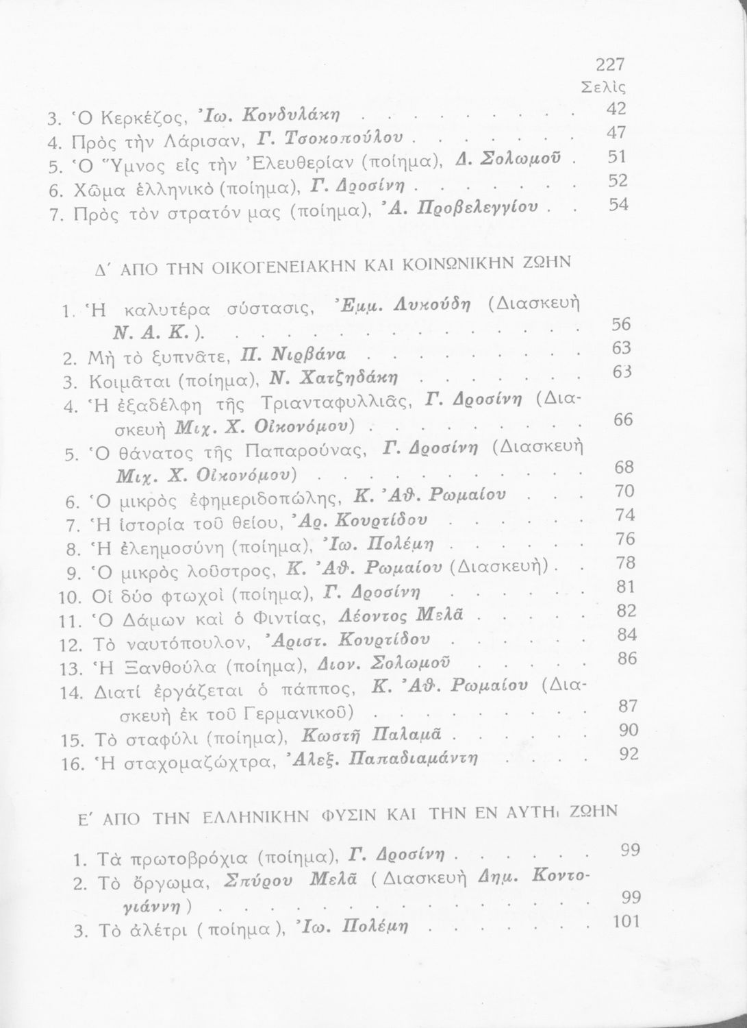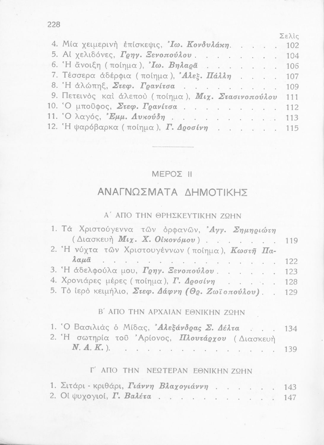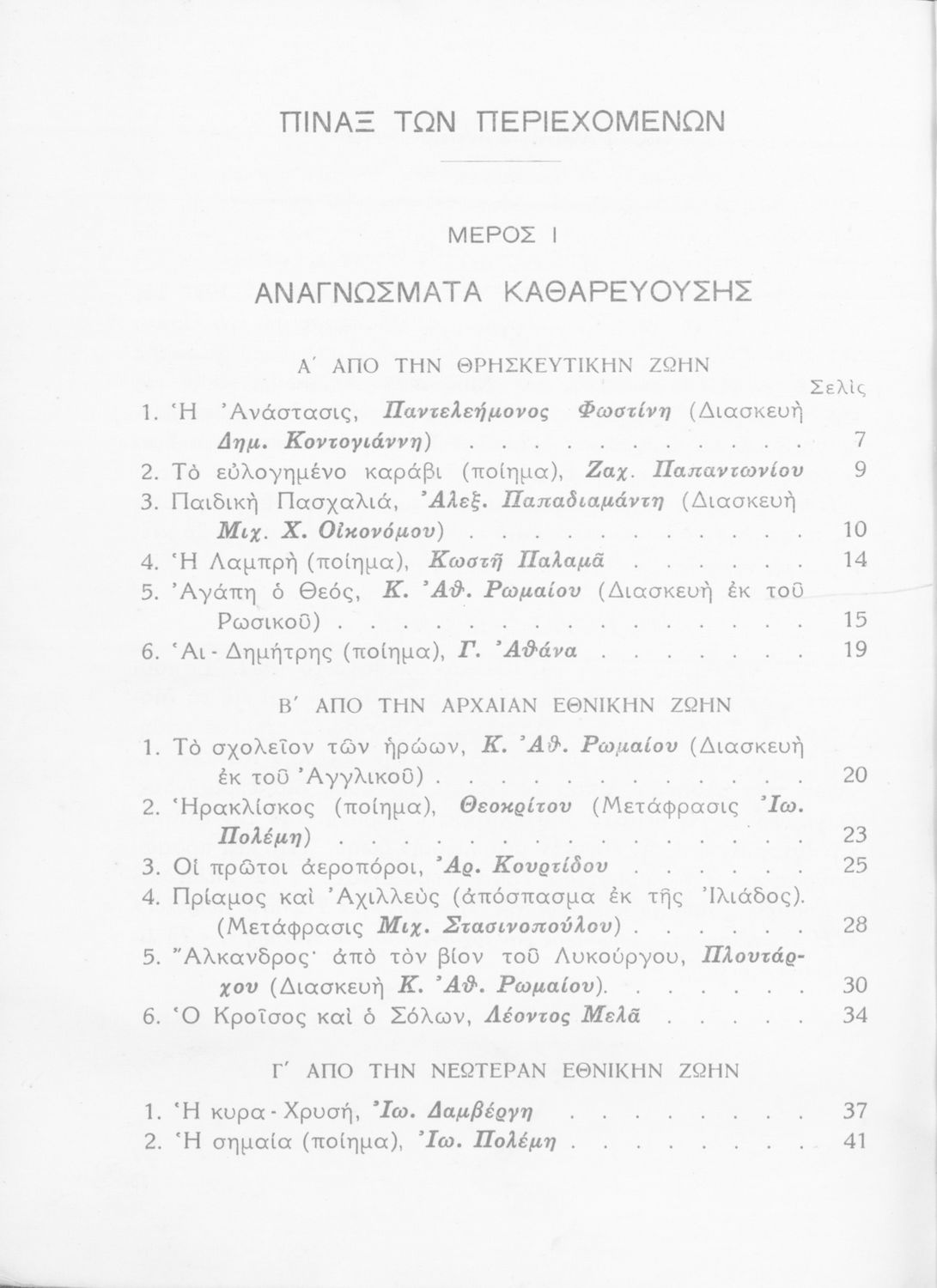 Σχολικό εγχειρίδιο Νέων Ελληνικών Α΄ Γυμνασίου που περιλαμβάνει ποιήματα και πεζά Ελλήνων συγγραφέων με θέματα εμπνευσμένα από τη θρησκευτική ζωή, την αρχαία και νεώτερη ελληνική ιστορία, την οικογενειακή και κοινωνική ζωή και την ελληνική ύπαιθρο. Περιέχει και παράρτημα με βιογραφίες των συγγραφέων και λεξιλόγιο.