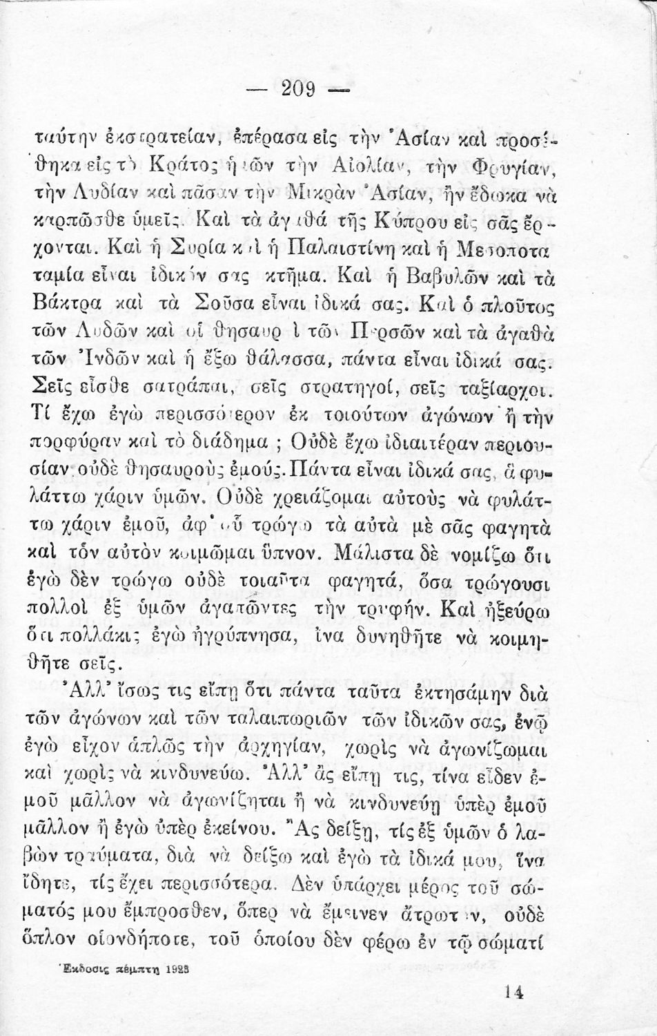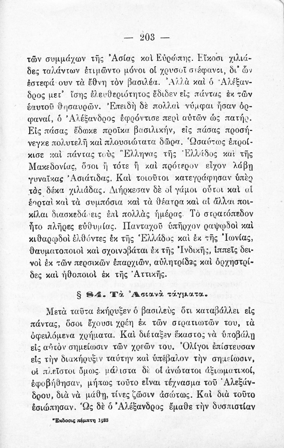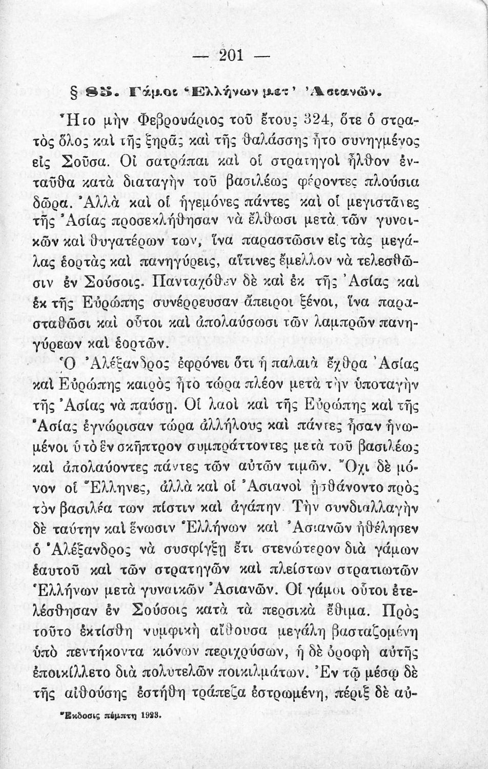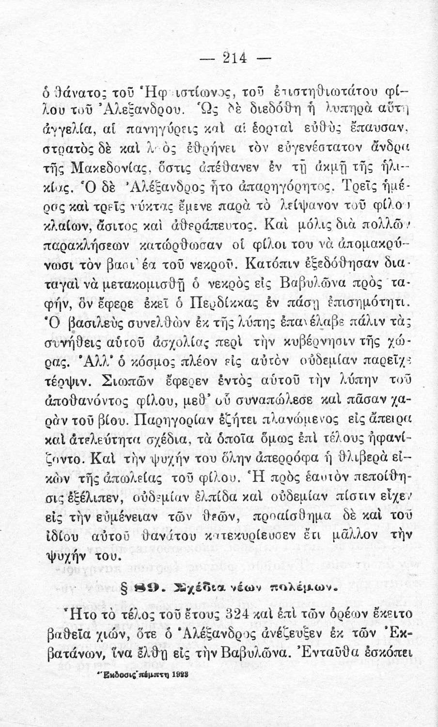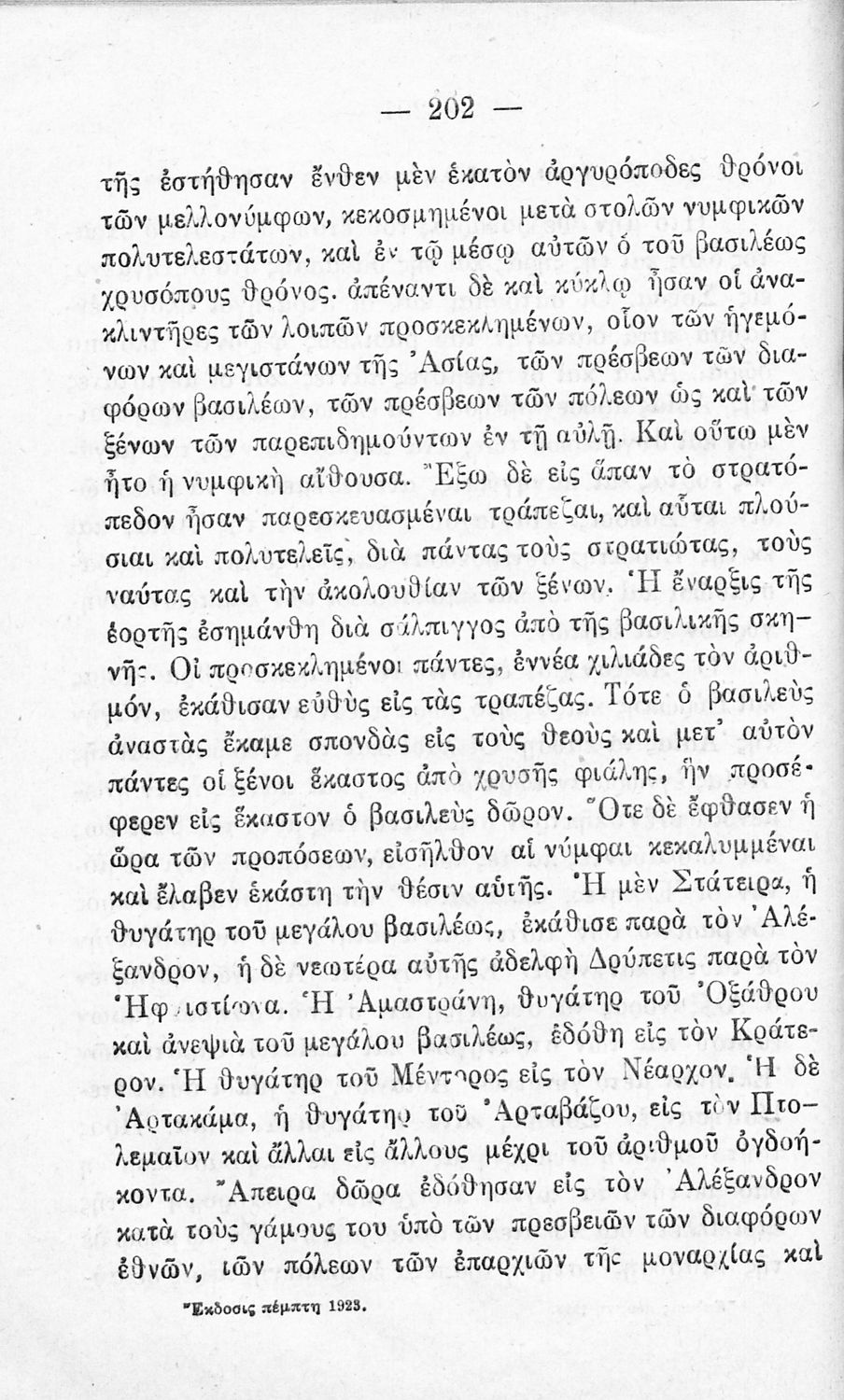 Αναγνωστικό για την Ε΄ Δημοτικού που εξιστορεί την ιστορία του Μεγάλου Αλεξάνδρου με σκοπό να εξυψώσει το φρόνημα των Ελλήνων, που έχει "πληγεί από τη Μικρασιατική καταστροφή", και να τους δώσει "παρηγοριά και
