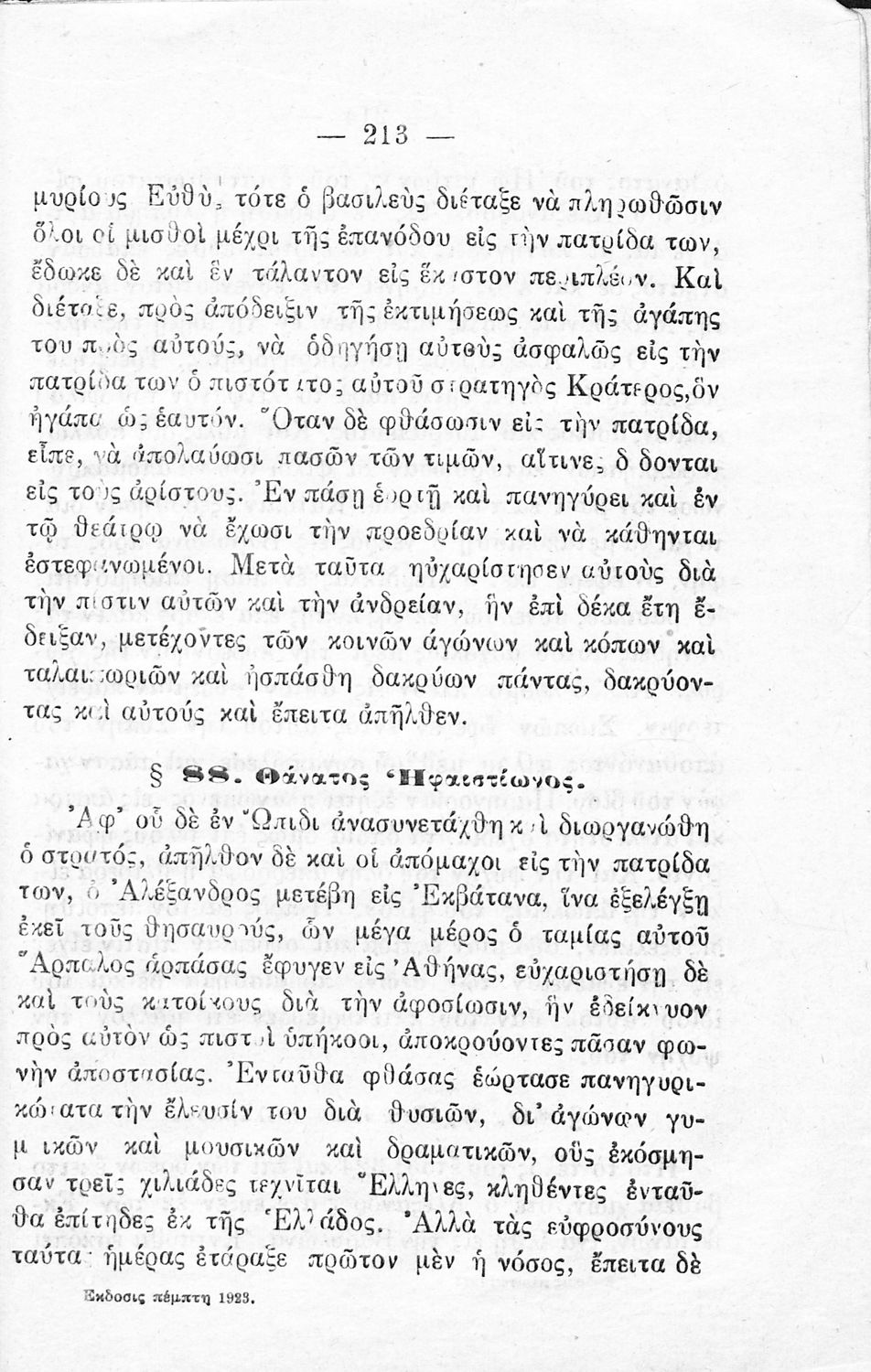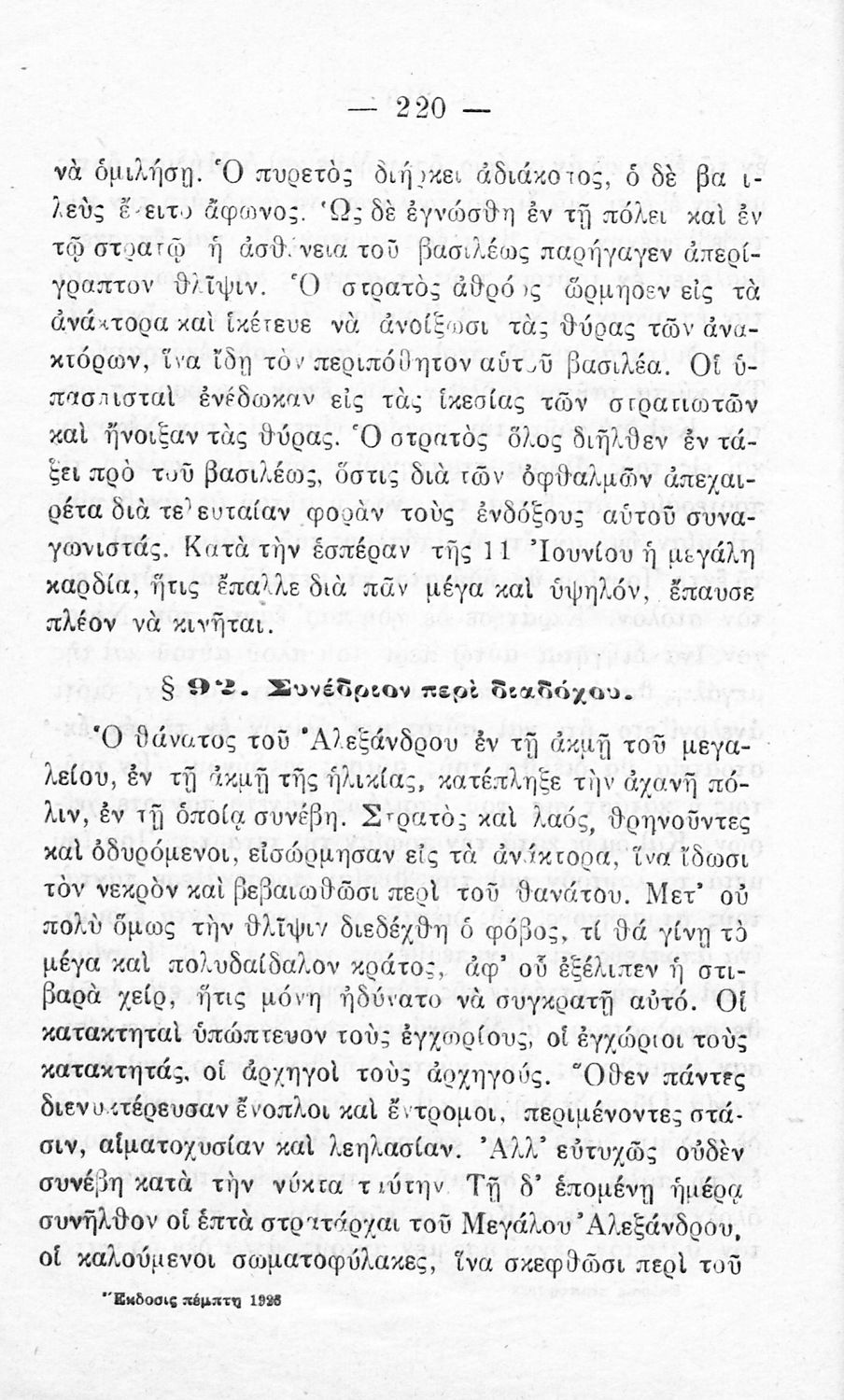 Αναγνωστικό Ε' Δημοτικού που εξιστορεί τη ζωή και το έργο του Μ. Αλεξάνδρου. Προοριζόταν, όπως αναφέρει η έκθεση των κριτών, να εμπνεύσει "φρονήματα υψηλά και γενναία και να υποθάλψη το συναίσθημα της ...