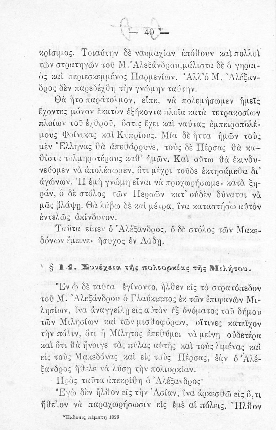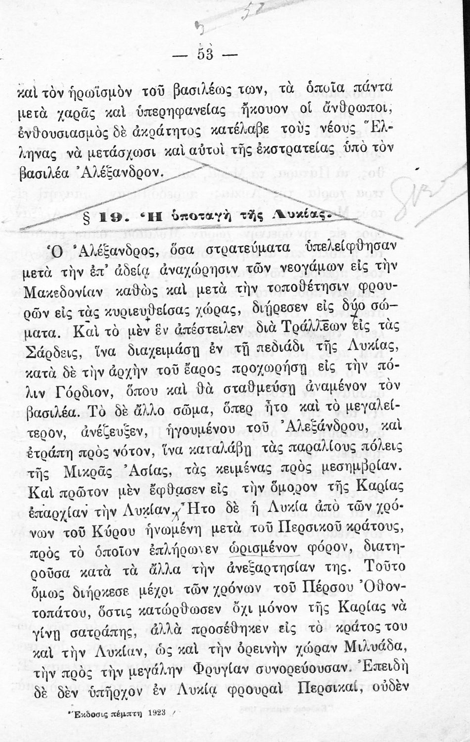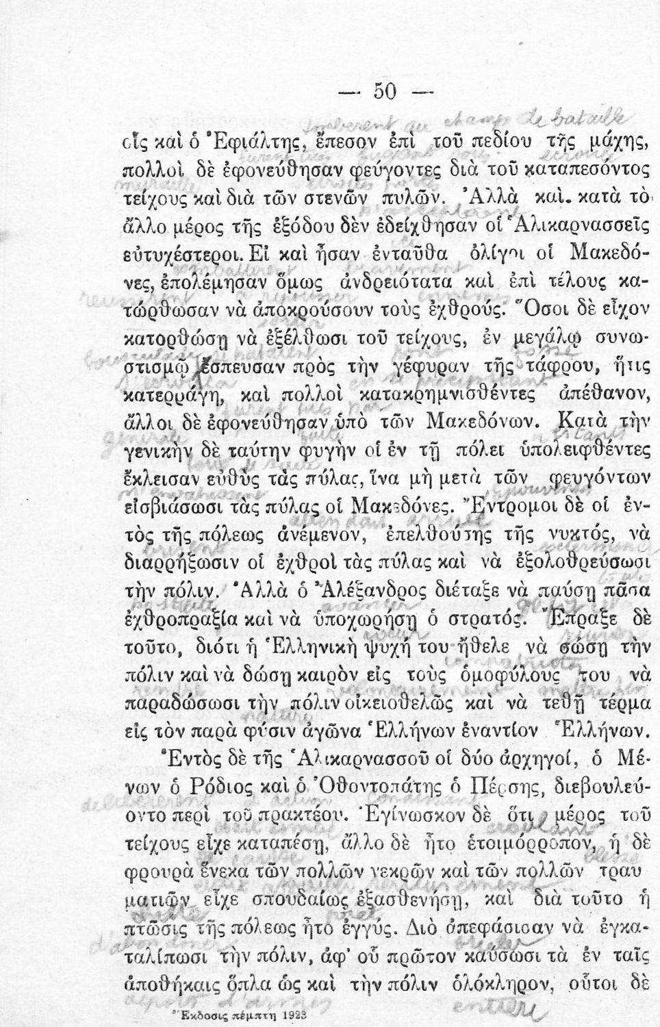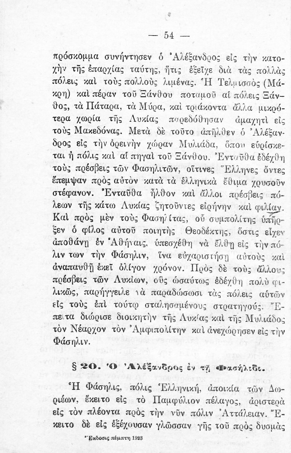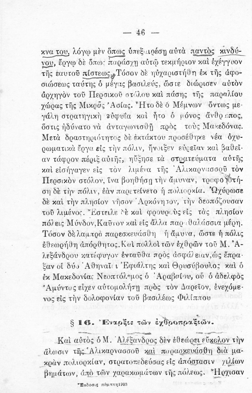 Αναγνωστικό για την Ε΄ Δημοτικού που εξιστορεί την ιστορία του Μεγάλου Αλεξάνδρου με σκοπό να εξυψώσει το φρόνημα των Ελλήνων, που έχει "πληγεί από τη Μικρασιατική καταστροφή", και να τους δώσει "παρηγοριά και