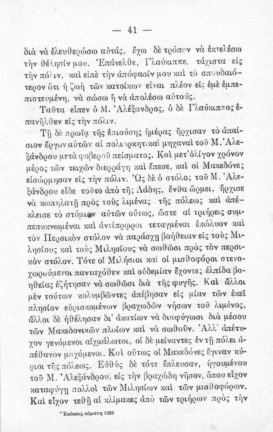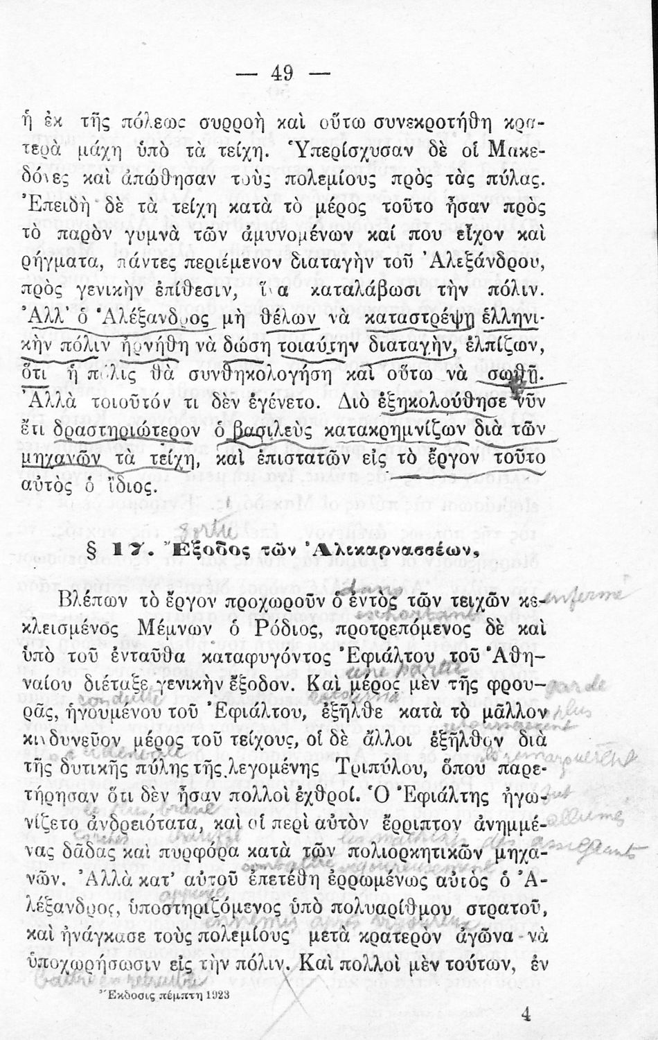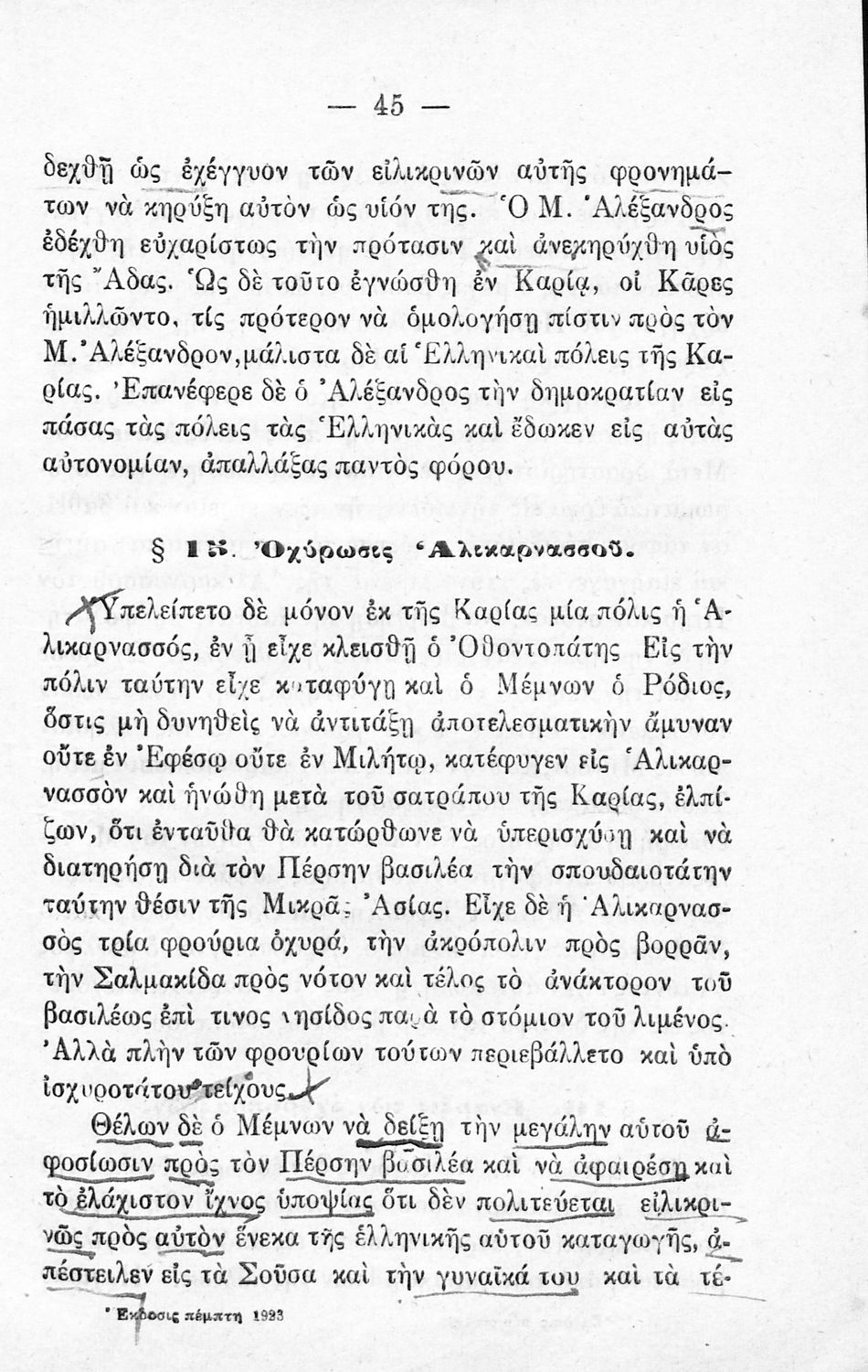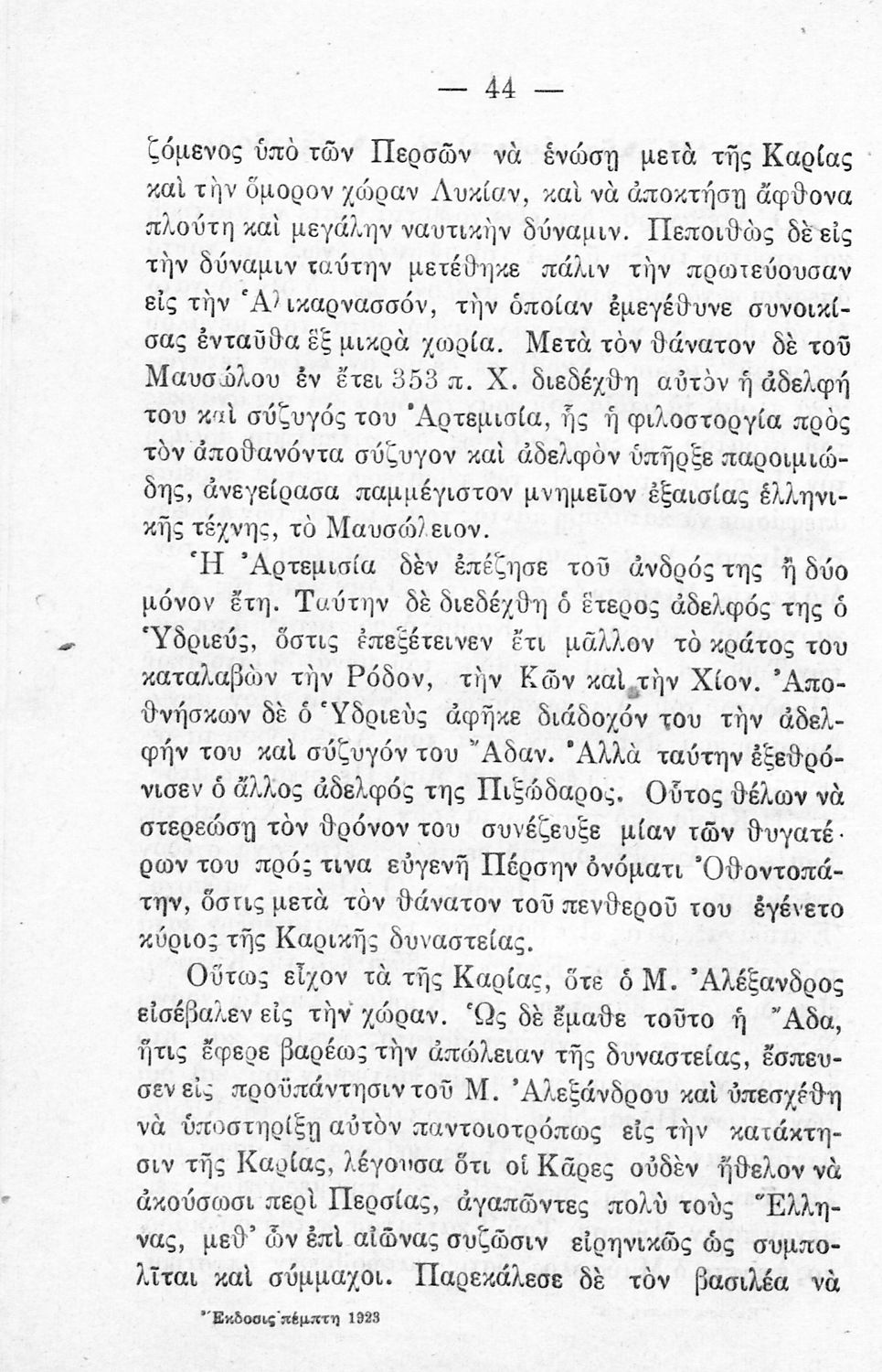 Αναγνωστικό για την Ε΄ Δημοτικού που εξιστορεί την ιστορία του Μεγάλου Αλεξάνδρου με σκοπό να εξυψώσει το φρόνημα των Ελλήνων, που έχει "πληγεί από τη Μικρασιατική καταστροφή", και να τους δώσει "παρηγοριά και