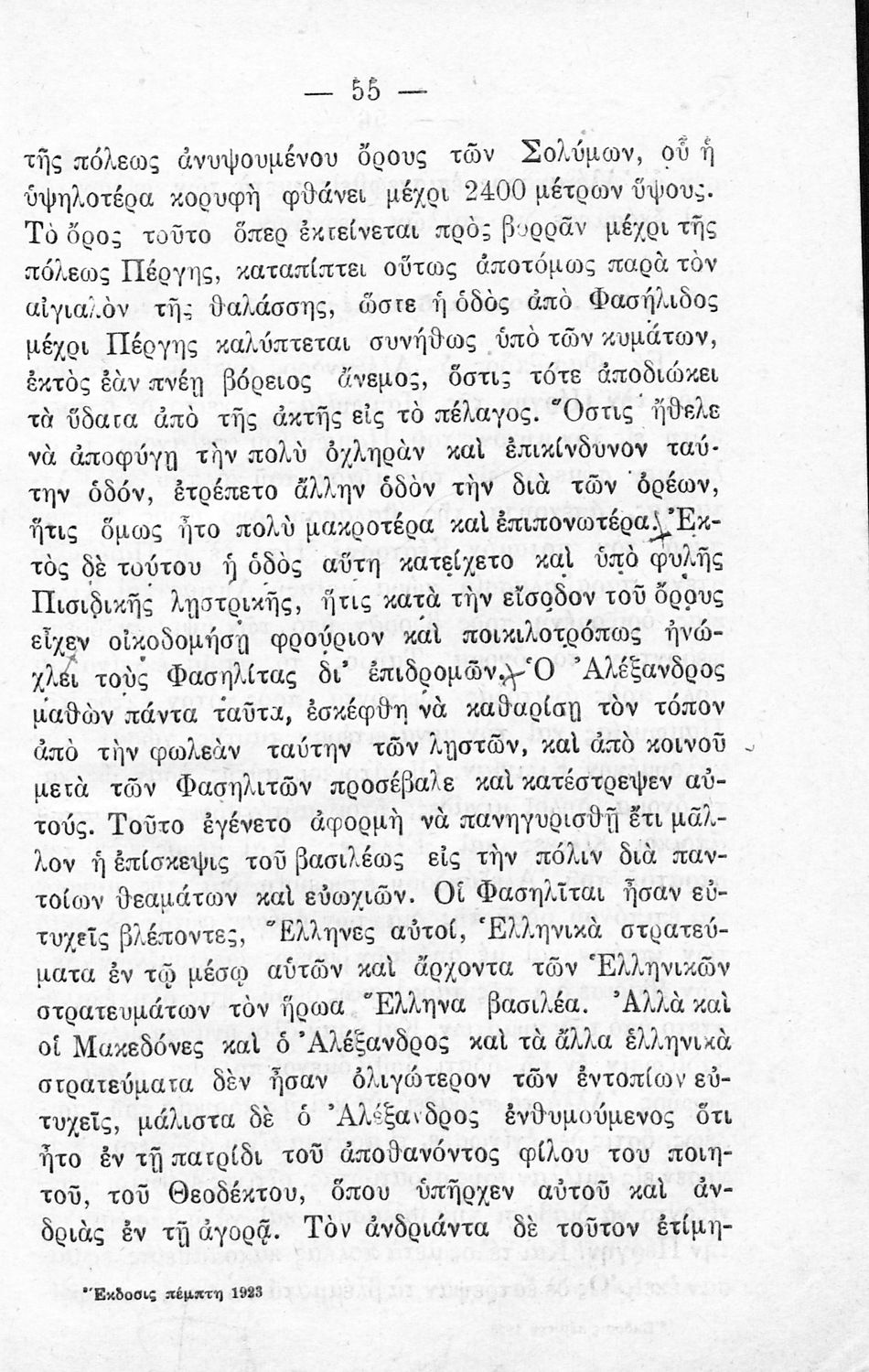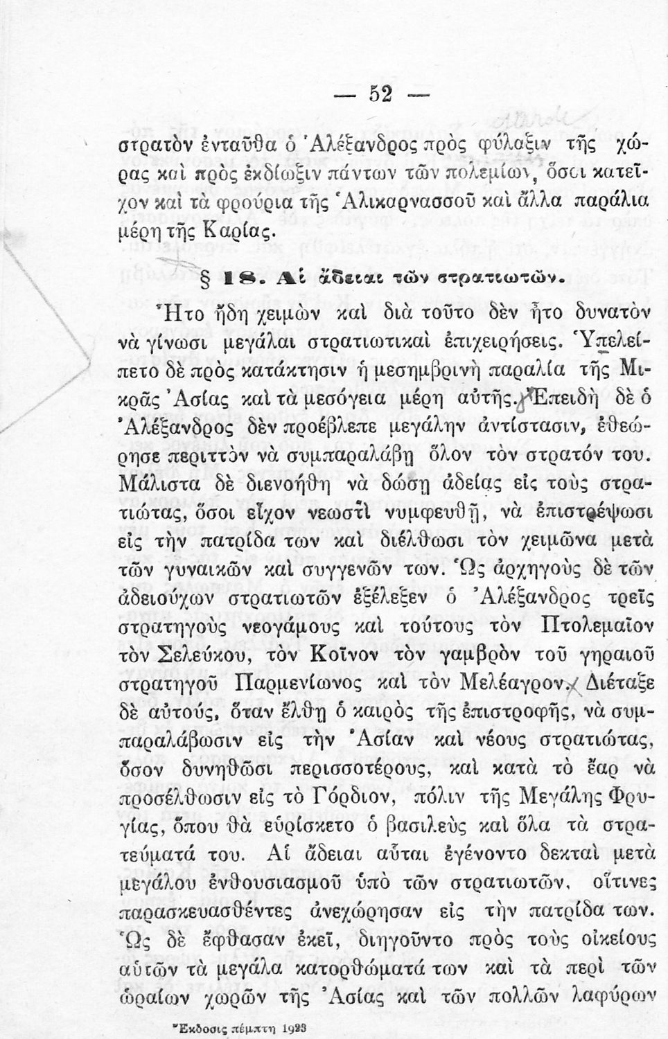 Αναγνωστικό Ε' Δημοτικού που εξιστορεί τη ζωή και το έργο του Μ. Αλεξάνδρου. Προοριζόταν, όπως αναφέρει η έκθεση των κριτών, να εμπνεύσει "φρονήματα υψηλά και γενναία και να υποθάλψη το συναίσθημα της ...