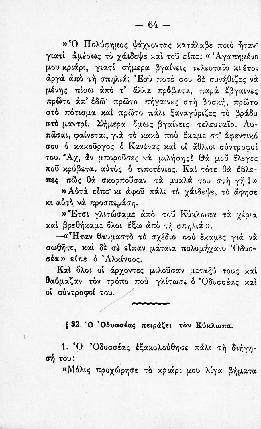 LDR 01462 2200217 4500 035 ## _a01-45112 040 ## _aΙνστιτούτο Εκπαιδευτικής Πολιτικής 041 ## _ael 100 ## _aΔημοσθένης Μ. Ανδρεάδης 110 ## _a45112 245 0# _aΟδύσσεια Διασκευή, Αναγνωστικό Γ΄ Δημοτικού 250 ## _a2η Έκδοση 260 ## _aΑθήνα _bΛ. Π. Δημητράκος _c1925 300 ## _a222 _bΕικόνες (ασπρόμαυρες), Σκίτσα (ασπρόμαυρα) _c20 520 ## _aΣχολικό εγχειρίδιο Γλώσσας για τη Γ' Δημοτικού. Προοριζόταν για αναγνωστικό των μαθητών της Γ' Δημοτικού. Στο κείμενο υπάρχουν αριθμοί σε παρενθέσεις που παραπέμπουν σε ποιήματα και δημοτικά τραγούδια που υπάρχουν στο τέλος του βιβλίου και έπρεπε να διαβαστούν από το δάσκαλο. Ο συγγραφέας ήταν επιθεωρητής Δημοτικών Σχολείων. 521 ## _aΓ' Δημοτικού 522 ## _aΕλλάδα 546 ## _aΔημοτική 563 ## _aΣκληρό Εξώφυλλο 650 #4 _aΈπος _aΜνηστήρες _aΟδυσσέας _aΤηλέμαχος 700 ## _aΠ. Ρούμπος, Αλφρ. Ρέντζ, Φ. Πρέλλερ