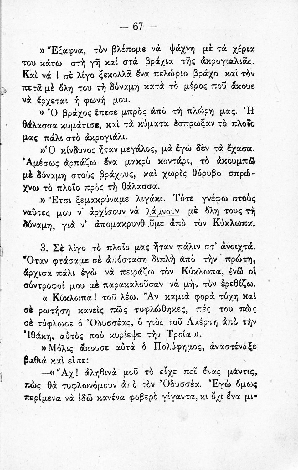 Σχολικό εγχειρίδιο Γλώσσας για τη Γ' Δημοτικού. Προοριζόταν για αναγνωστικό των μαθητών της Γ' Δημοτικού. Στο κείμενο υπάρχουν αριθμοί σε παρενθέσεις που παραπέμπουν σε ποιήματα και δημοτικά τραγούδια που υπάρχουν στο τέλος του βιβλίου και έπρεπε να διαβαστούν από το δάσκαλο. Ο συγγραφέας ήταν επιθεωρητής Δημοτικών Σχολείων.
