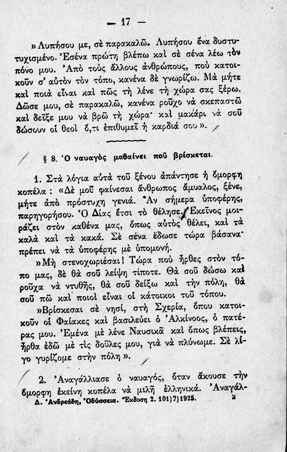 Οδύσσεια Διασκευή, Αναγνωστικό Γ΄ Δημοτικού
