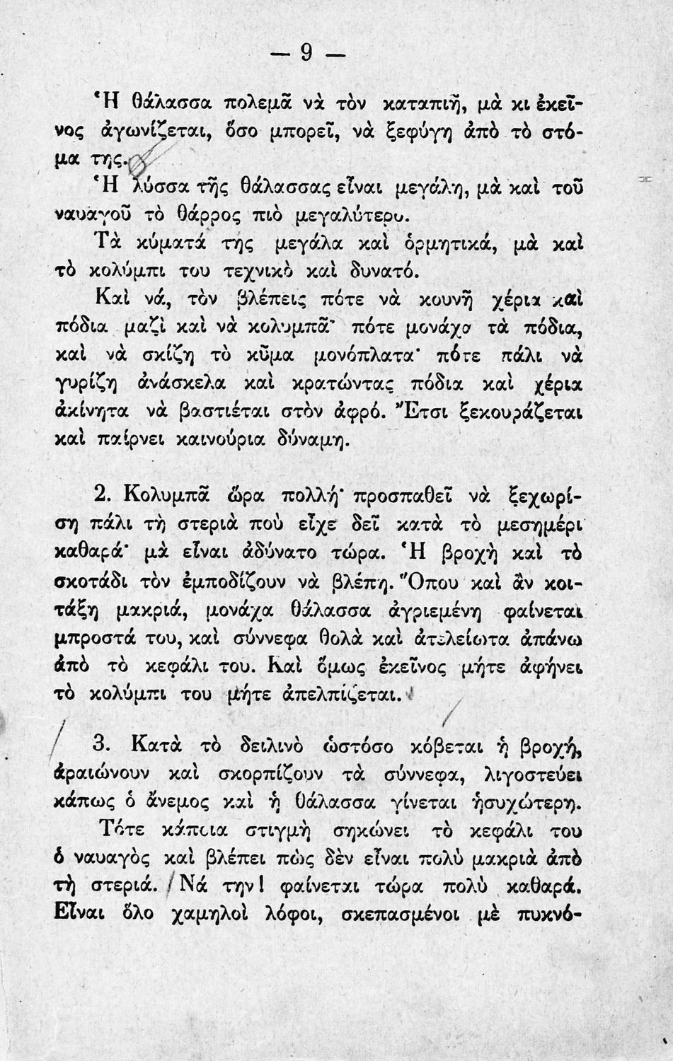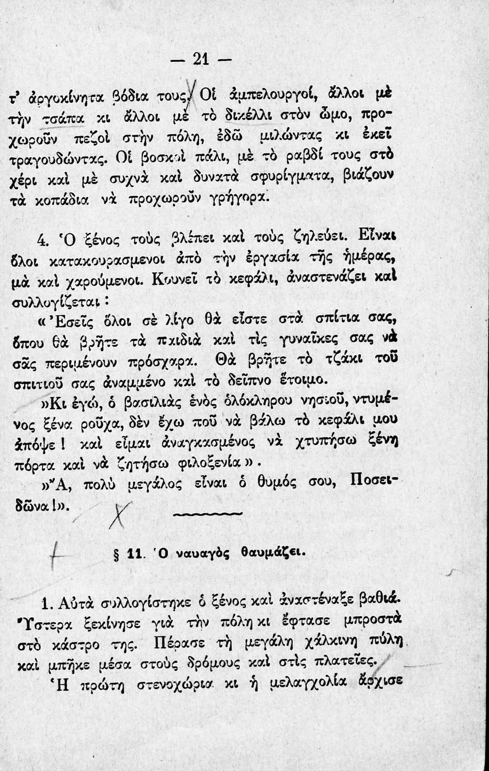 Παρουσίαση περιεχομένου: Σχολικό εγχειρίδιο Γλώσσας για τη Γ' Δημοτικού. Προοριζόταν για αναγνωστικό των μαθητών της Γ' Δημοτικού. Στο κείμενο υπάρχουν αριθμοί σε παρενθέσεις που παραπέμπουν σε ποιήματα και δημοτικά τραγούδια που υπάρχουν στο τέλος του βιβλίου και έπρεπε να διαβαστούν από το δάσκαλο. Ο συγγραφέας ήταν επιθεωρητής Δημοτικών Σχολείων.