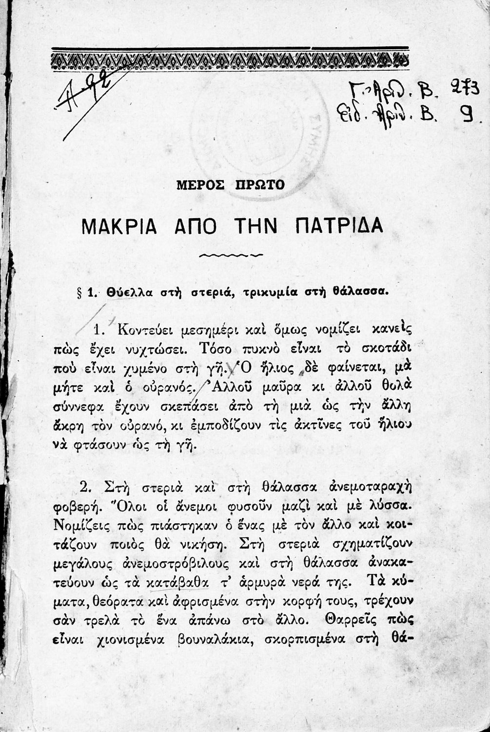 Σχολικό εγχειρίδιο Γλώσσας για τη Γ' Δημοτικού. Προοριζόταν για αναγνωστικό των μαθητών της Γ' Δημοτικού. Στο κείμενο υπάρχουν αριθμοί σε παρενθέσεις που παραπέμπουν σε ποιήματα και δημοτικά τραγούδια που υπάρχουν στο τέλος του βιβλίου και έπρεπε να διαβαστούν από το δάσκαλο. Ο συγγραφέας ήταν επιθεωρητής Δημοτικών Σχολείων.