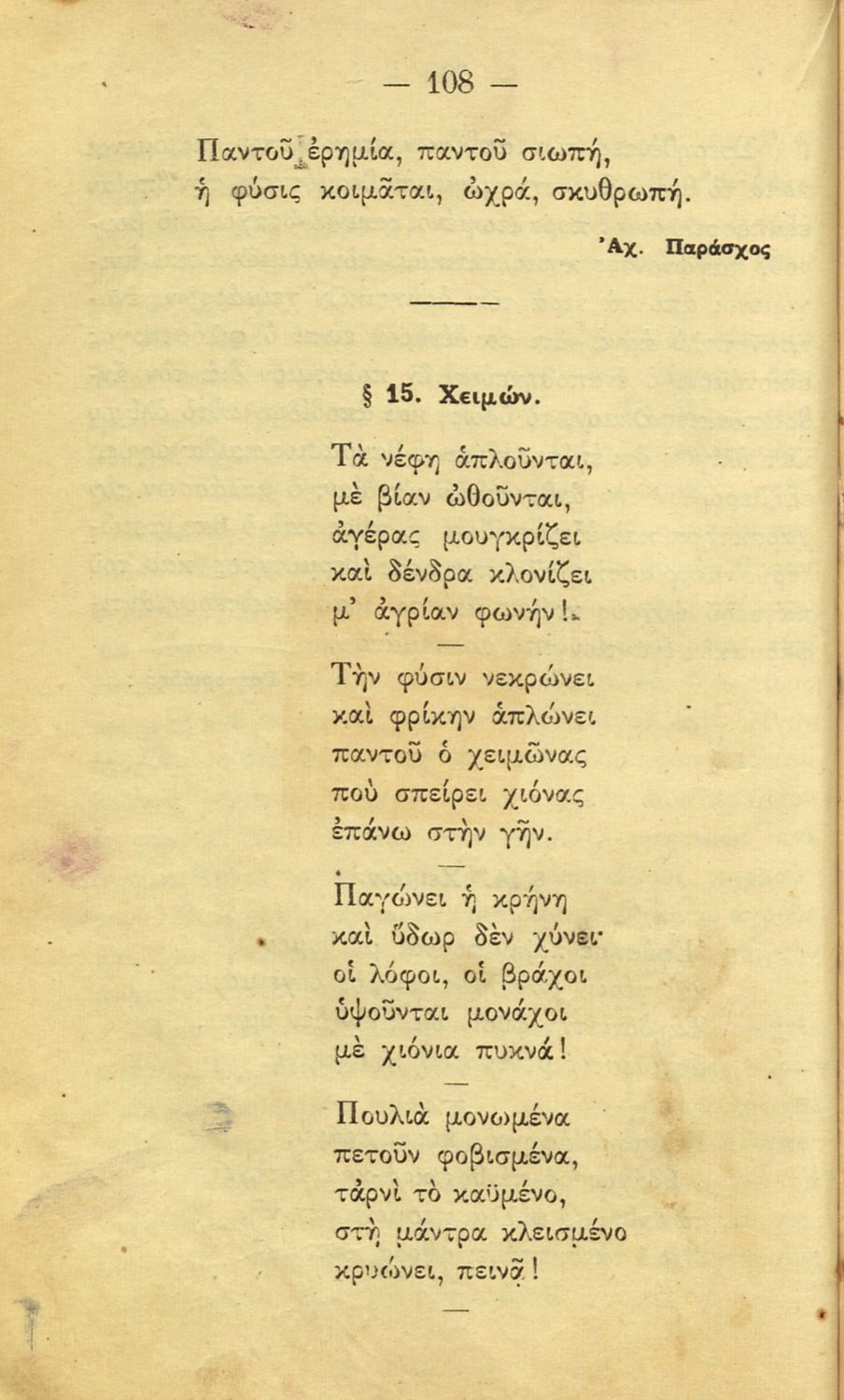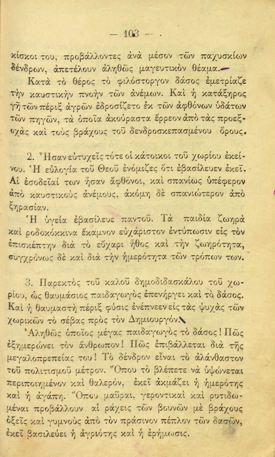 Αναγνωστικό Ε΄ Δημοτικού που περιέχει πεζά και ποιήματα εμπνευσμένα από τη θρησκευτική, εθνική, κοινωνική και ατομική ζωή, την ελληνική φύση, ιστορία και μυθολογία και την υγιεινή.