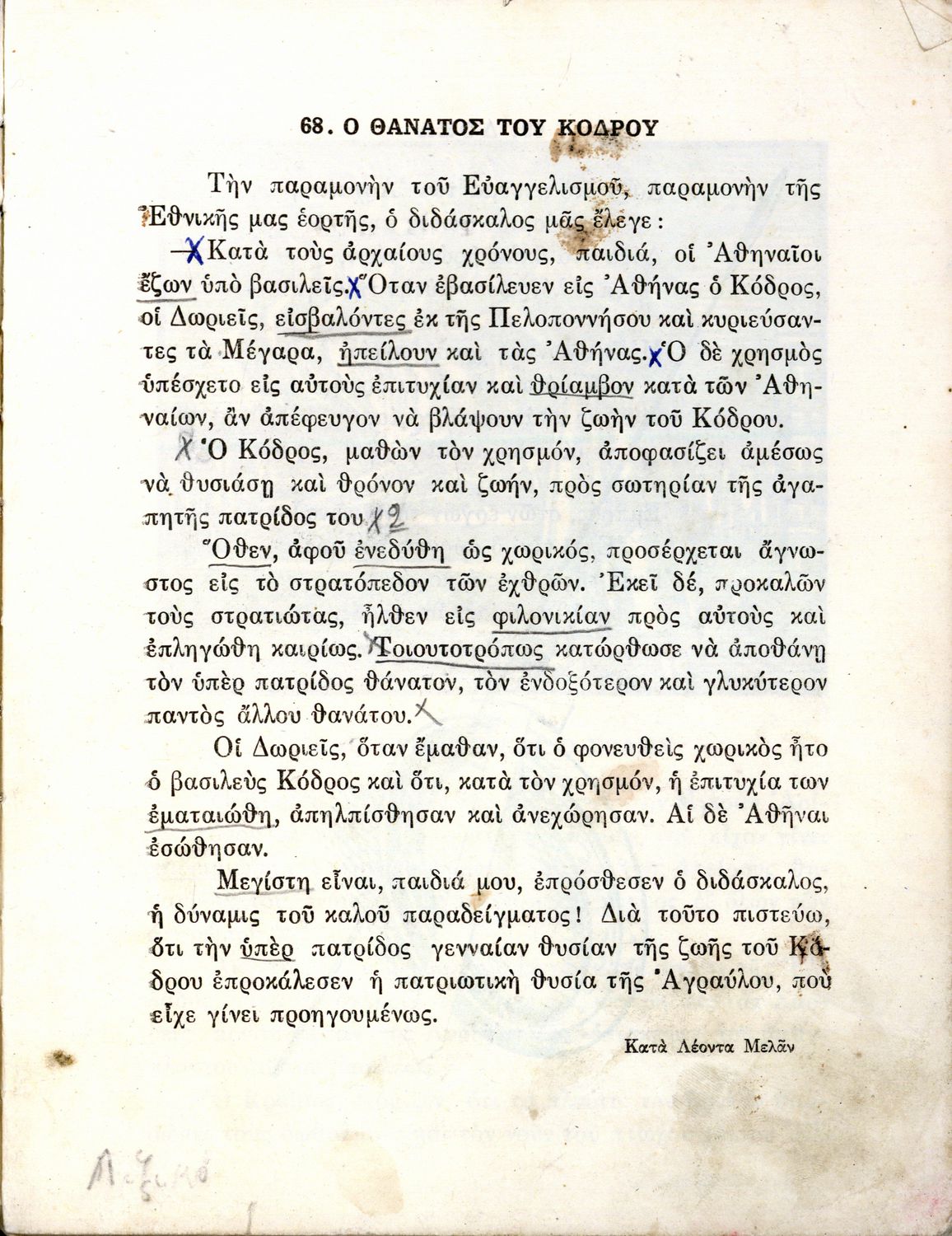 Βαθμίδα εκπαίδευσης: Πρωτοβάθμια Τάξη: Δ' Δημοτικού Μάθημα: Νέα Ελληνικά Γλώσσα: Δημοτική, Καθαρεύουσα Παρουσίαση περιεχομένου: Αναγνωστικό Δ' Δημοτικού που είναι χωρισμένο σύμφωνα με τις εποχές του χρόνου και περιλαμβάνει ποιήματα και πεζά εμπνευσμένα από τη ζωή στην ύπαιθρο, την εθνική, οικογενειακή και κοινωνική ζωή, τη θρησκευτική παράδοση, τις ασχολίες των ανθρώπων, και την ελληνική φύση, ιστορία και μυθολογία. |