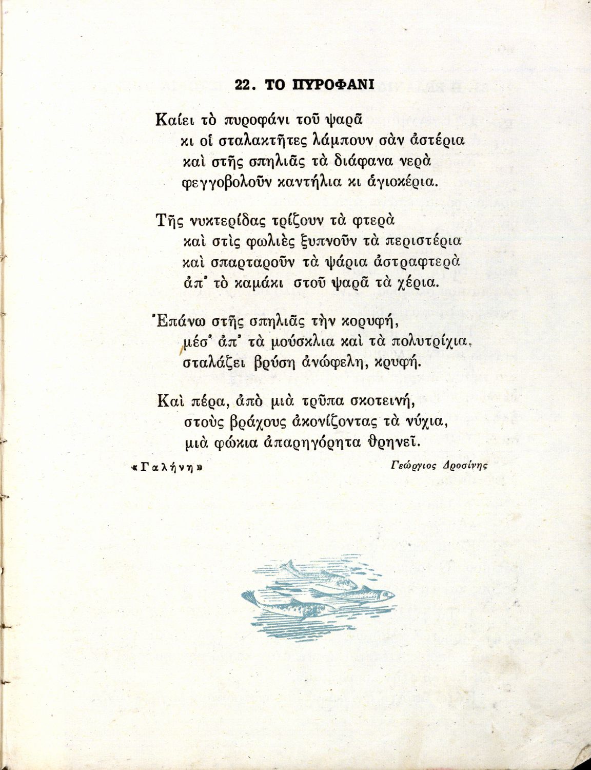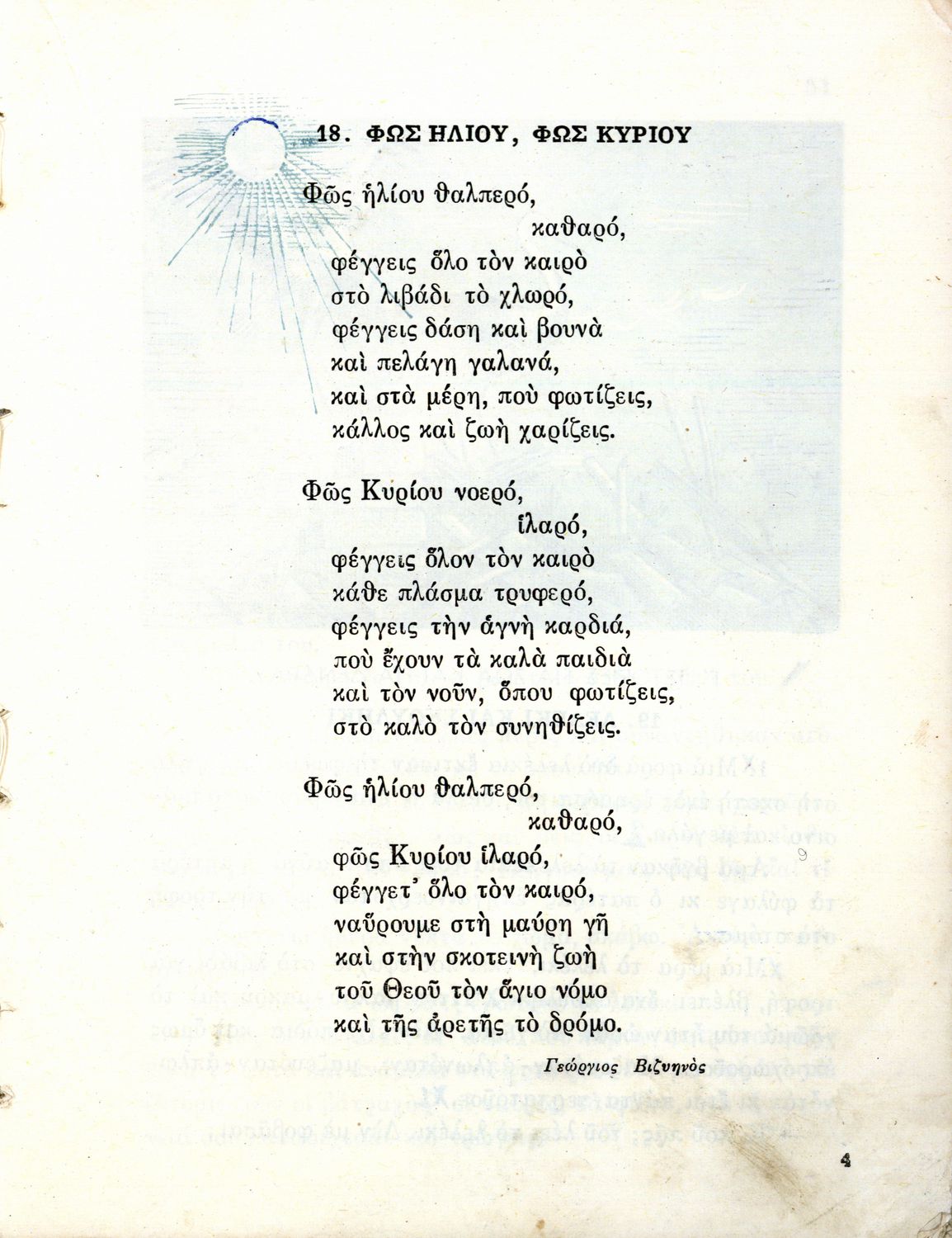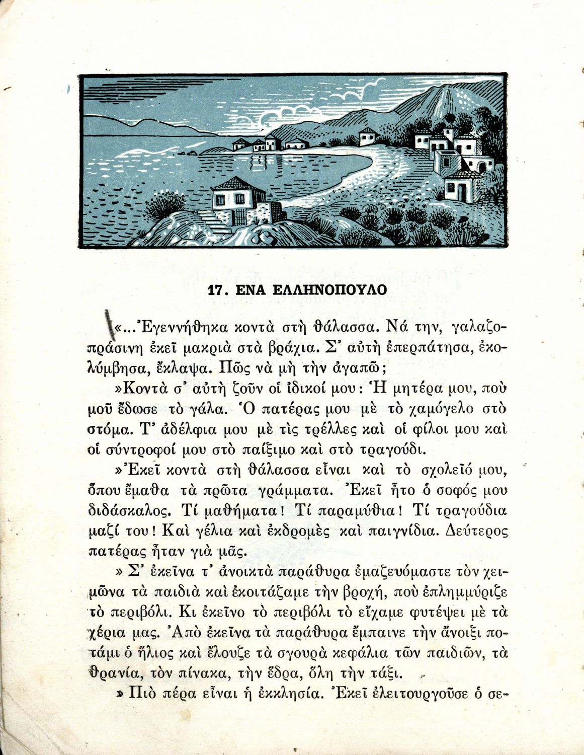 Αναγνωστικό Δ' Δημοτικού που είναι χωρισμένο σύμφωνα με τις εποχές του χρόνου και περιλαμβάνει ποιήματα και πεζά εμπνευσμένα από τη ζωή στην ύπαιθρο, την εθνική, οικογενειακή και κοινωνική ζωή, τη θρησκευτική παράδοση, τις ασχολίες των ανθρώπων, και την ελληνική φύση, ιστορία και μυθολογία.