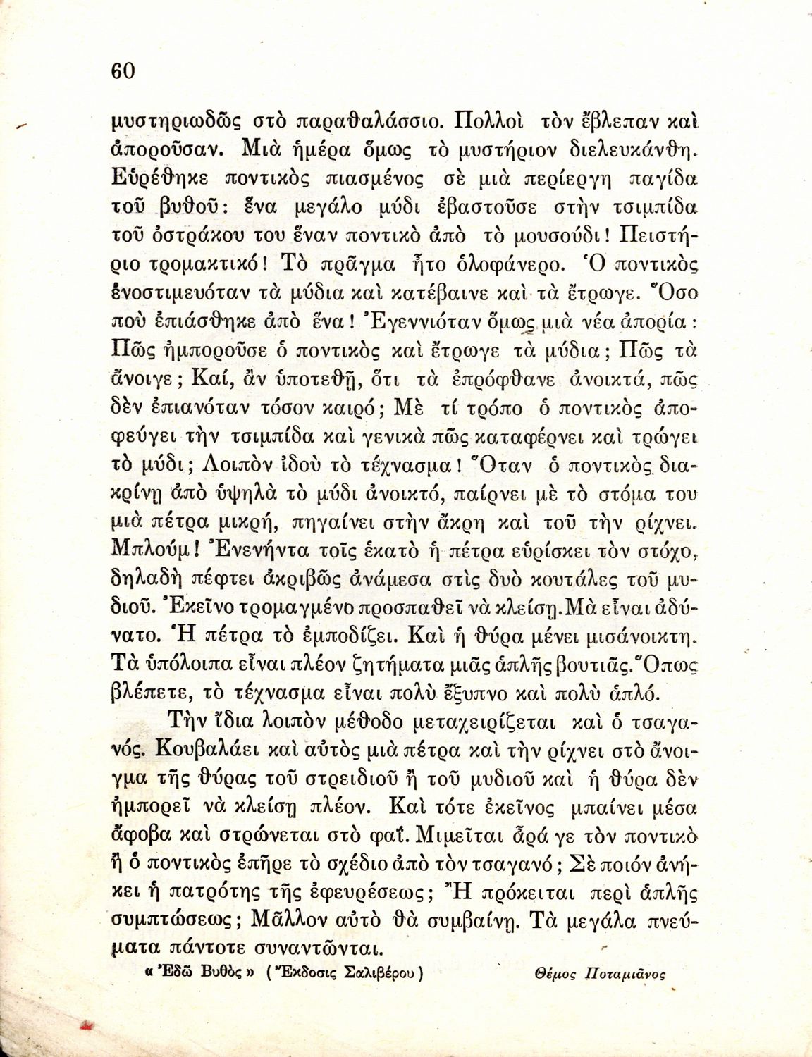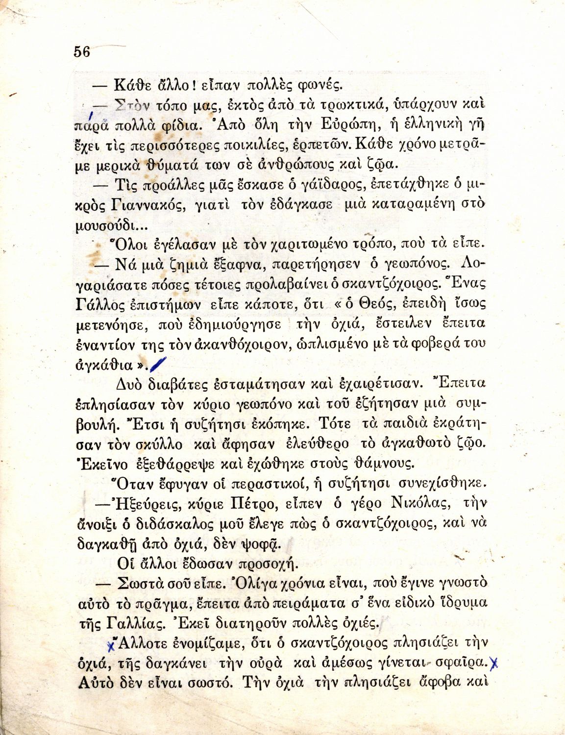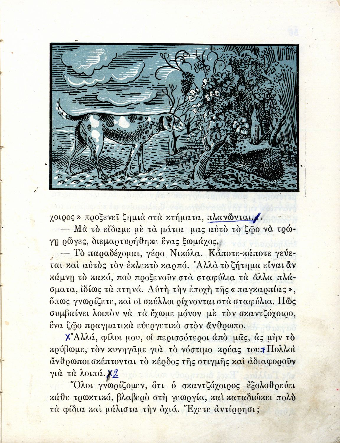 Αναγνωστικό Δ' Δημοτικού που είναι χωρισμένο σύμφωνα με τις εποχές του χρόνου και περιλαμβάνει ποιήματα και πεζά εμπνευσμένα από τη ζωή στην ύπαιθρο, την εθνική, οικογενειακή και κοινωνική ζωή, τη θρησκευτική παράδοση, τις ασχολίες των ανθρώπων, και την ελληνική φύση, ιστορία και μυθολογία.