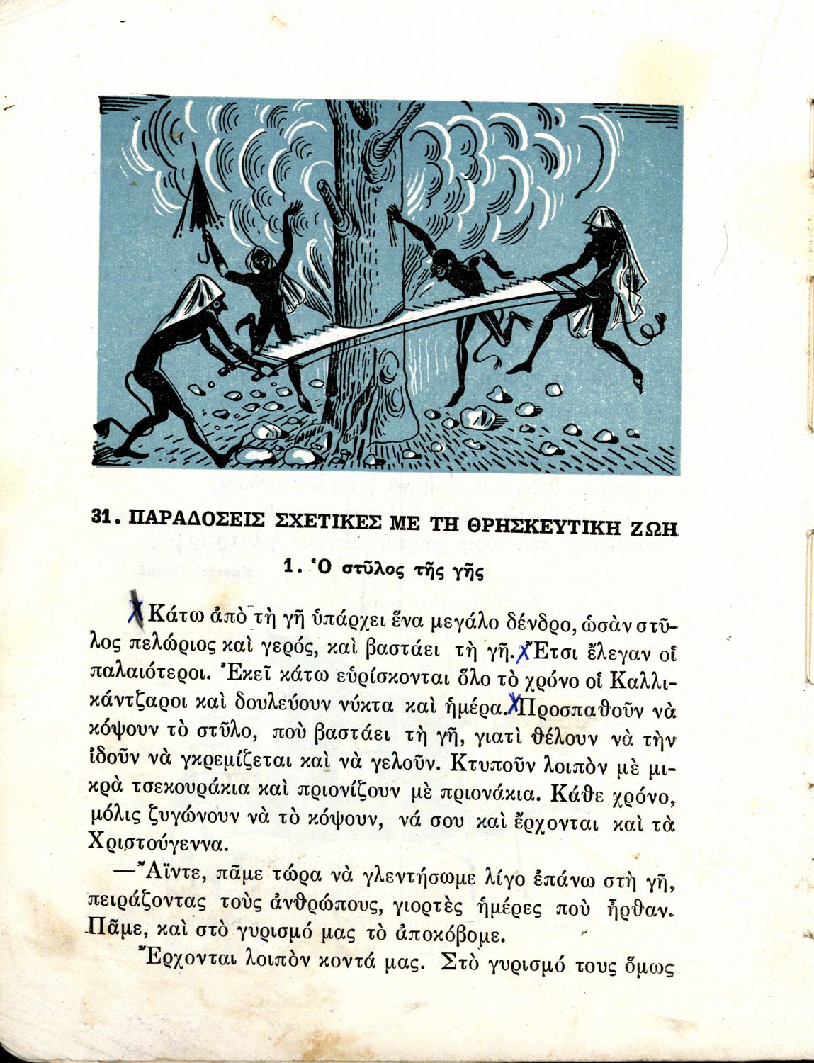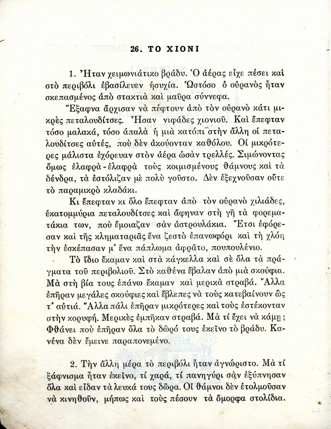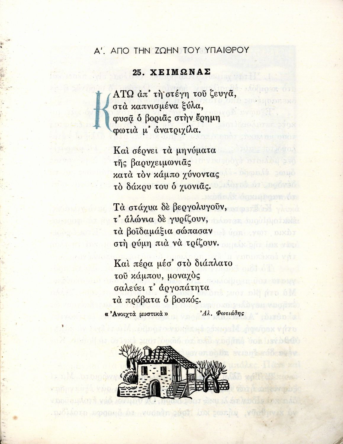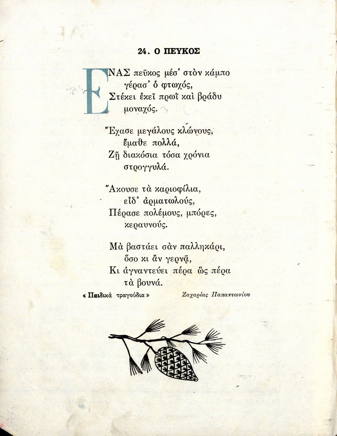 Αναγνωστικό Δ' Δημοτικού που είναι χωρισμένο σύμφωνα με τις εποχές του χρόνου και περιλαμβάνει ποιήματα και πεζά εμπνευσμένα από τη ζωή στην ύπαιθρο, την εθνική, οικογενειακή και κοινωνική ζωή, τη θρησκευτική παράδοση, τις ασχολίες των ανθρώπων, και την ελληνική φύση, ιστορία και μυθολογία.