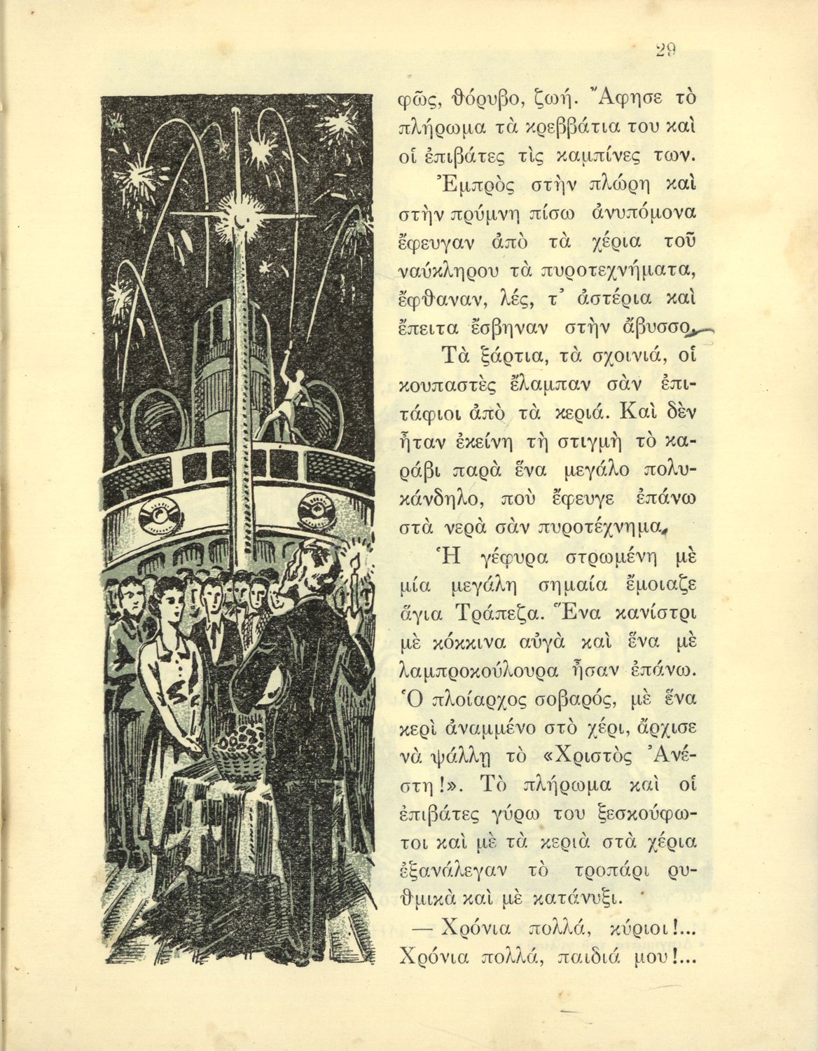 Αναγνωστικό Ε΄ Δημοτικού που περιέχει κείμενα εμπνευσμένα από την εθνική, κοινωνική και οικογενειακή ζωή και την ελληνική φύση, μυθολογία και ιστορία. Φέρει το σύμβολο της δικτατορίας.