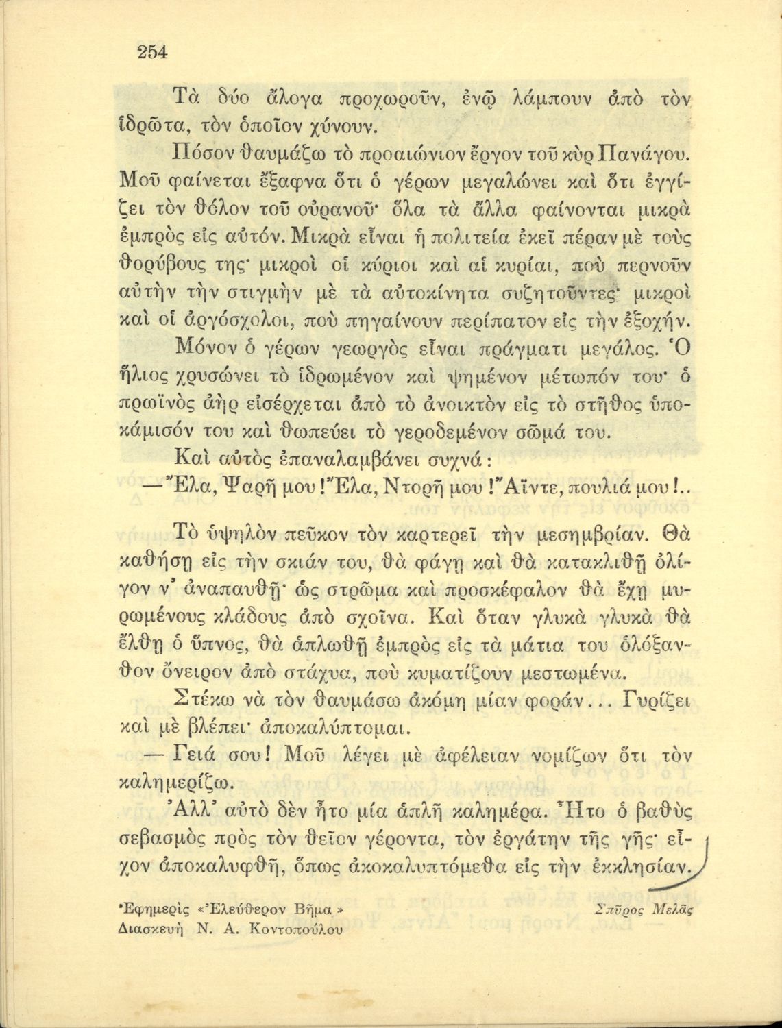 Αναγνωστικό Ε΄ Δημοτικού που περιέχει κείμενα εμπνευσμένα από την εθνική, κοινωνική και οικογενειακή ζωή και την ελληνική φύση, μυθολογία και ιστορία.