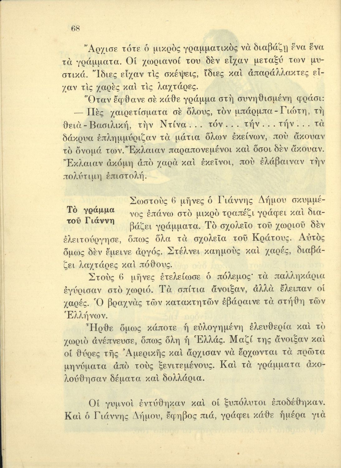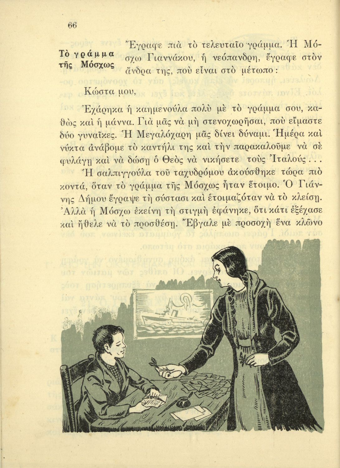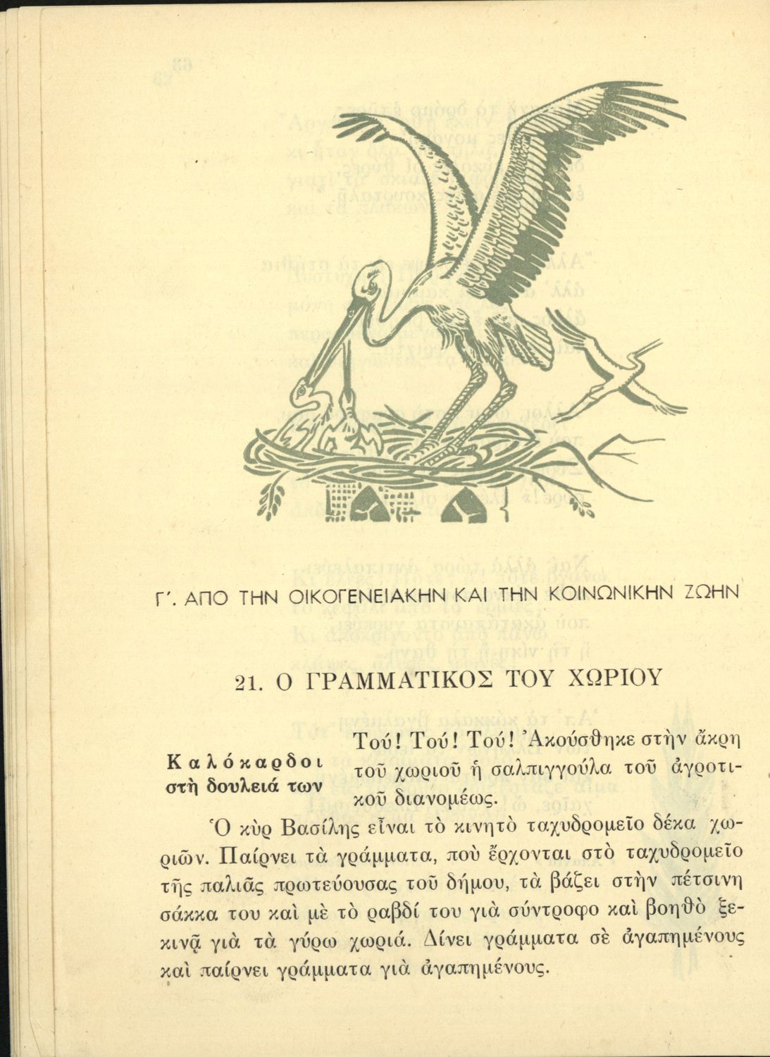 Αναγνωστικό Ε΄ Δημοτικού που περιέχει κείμενα εμπνευσμένα από την εθνική, κοινωνική και οικογενειακή ζωή και την ελληνική φύση, μυθολογία και ιστορία. Φέρει το σύμβολο της δικτατορίας.