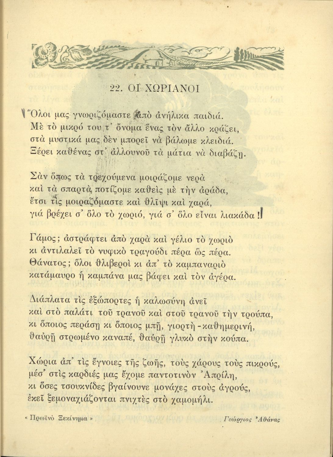 Αναγνωστικό για τους μαθητές της Ε΄ Δημοτικού που περιλαμβάνει ποιήματα και πεζά με θέματα από την οικογενειακή, κοινωνική, πολιτιστική και ιδιωτική ζωή των Ελλήνων, τη φύση, την ιστορία και την θρησκεία τους.