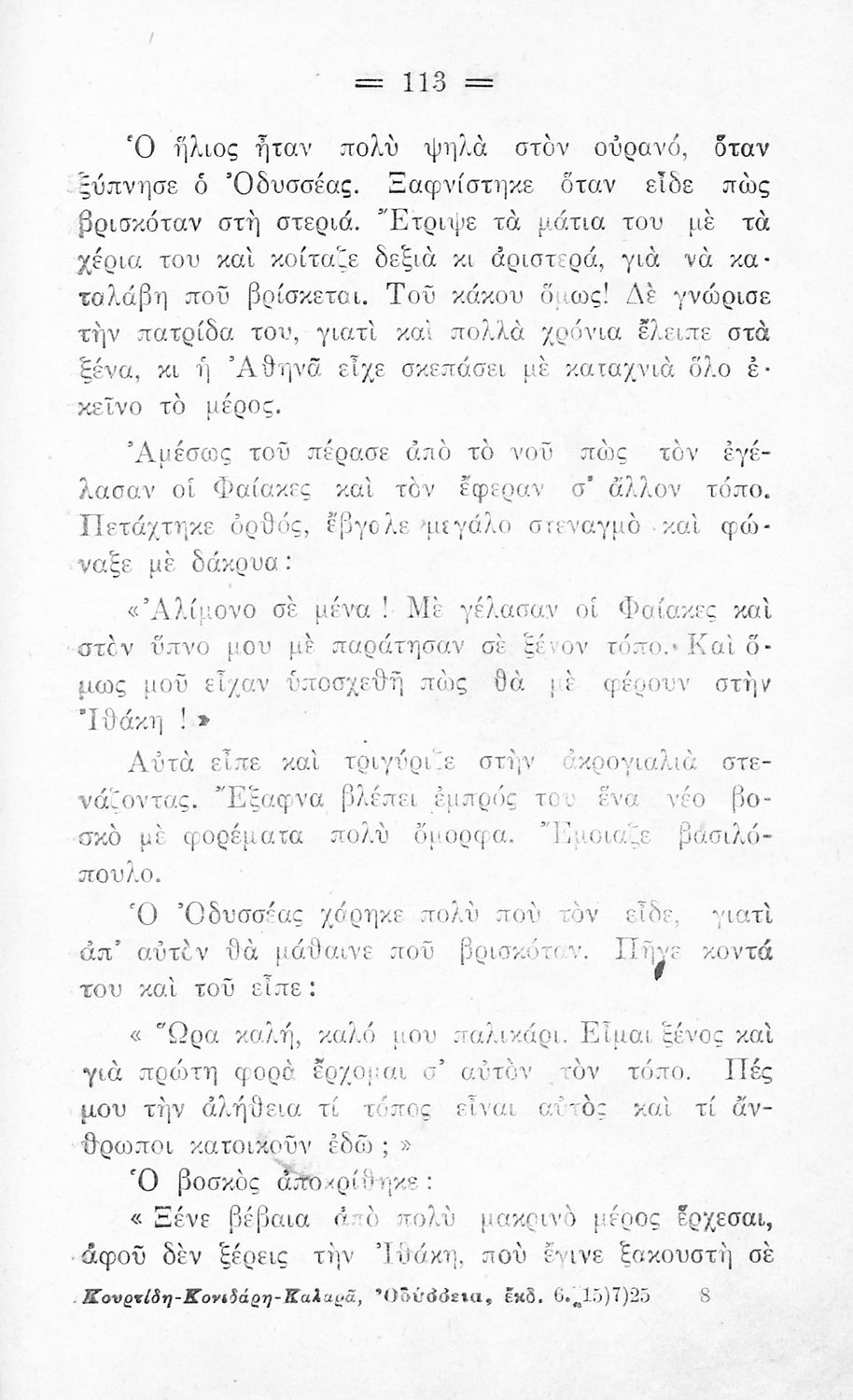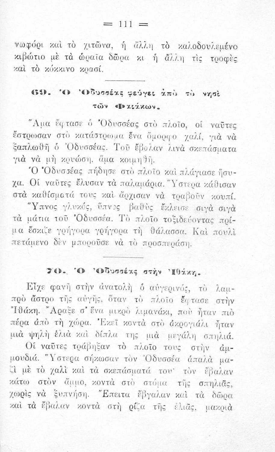 Αναγνωστικό Γ΄ Δημοτικού που εξιστορεί τις περιπέτειες του Οδυσσέα από τον Τρωικό Πόλεμο ως την επιστροφή του στην Ιθάκη.